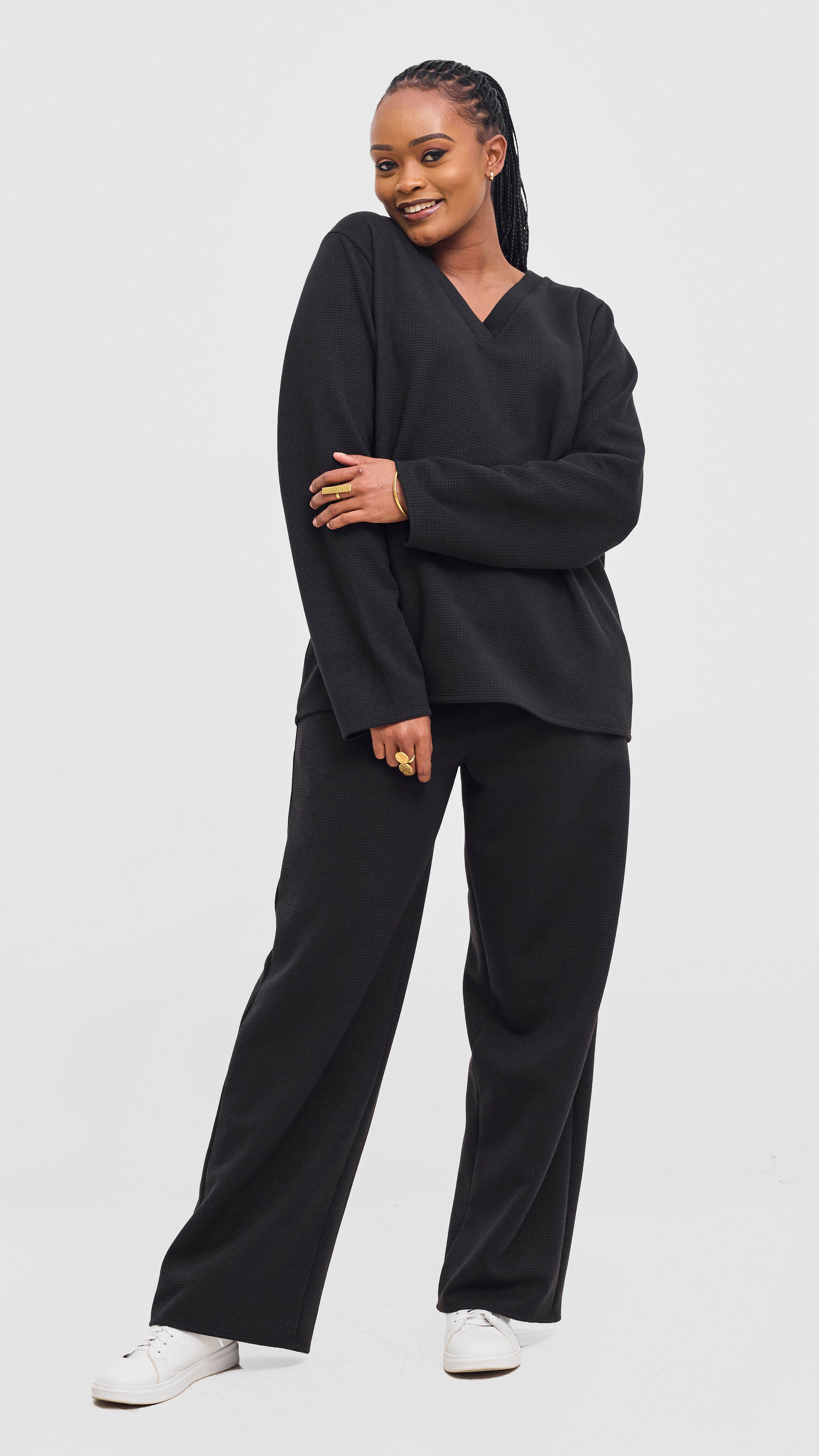 Shiv & Shikie X Safari V-Neck Long Sleeve T-shirt - Black