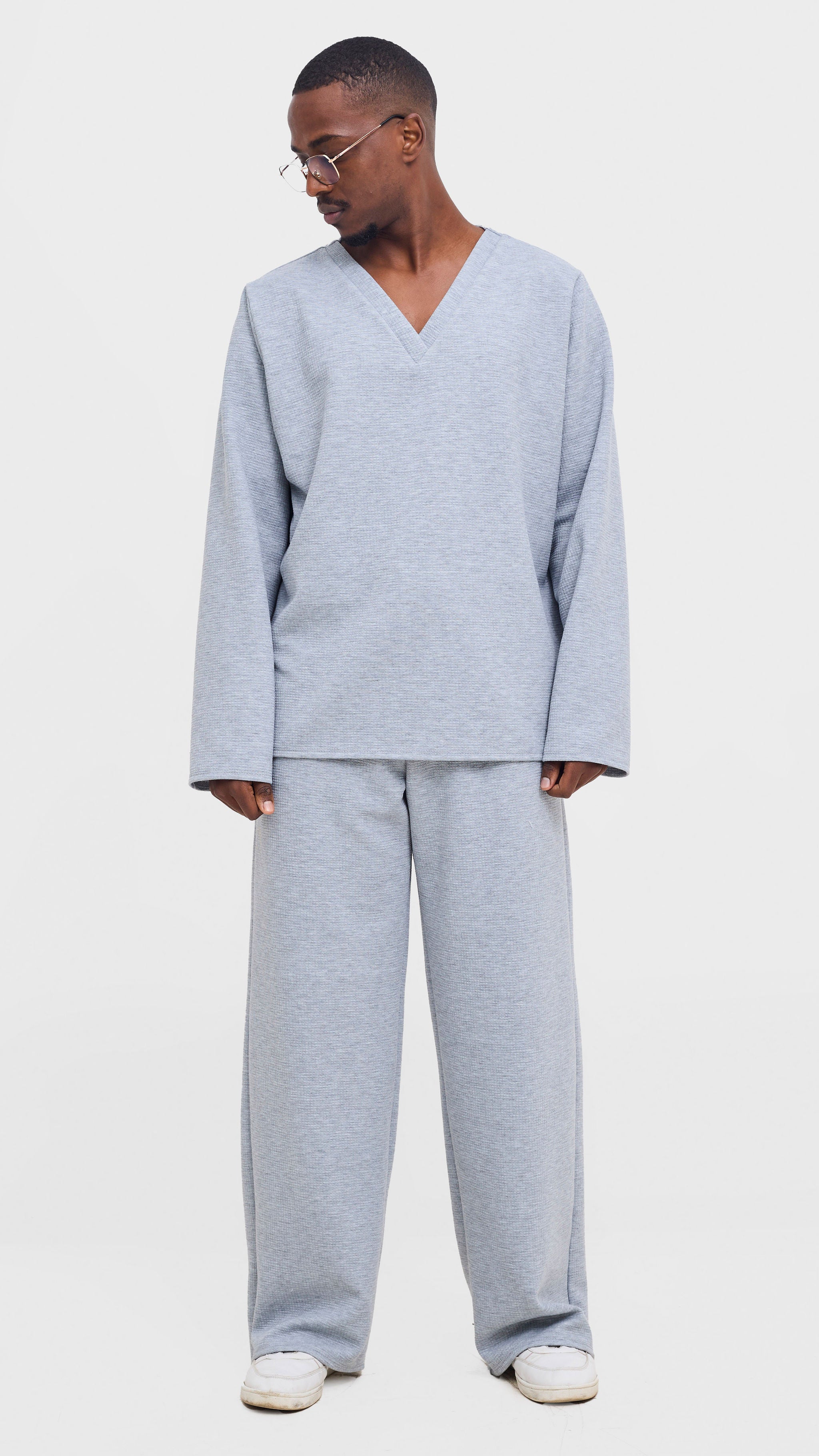Shiv & Shikie X Safari V-Neck Long Sleeve T-shirt - Light Grey