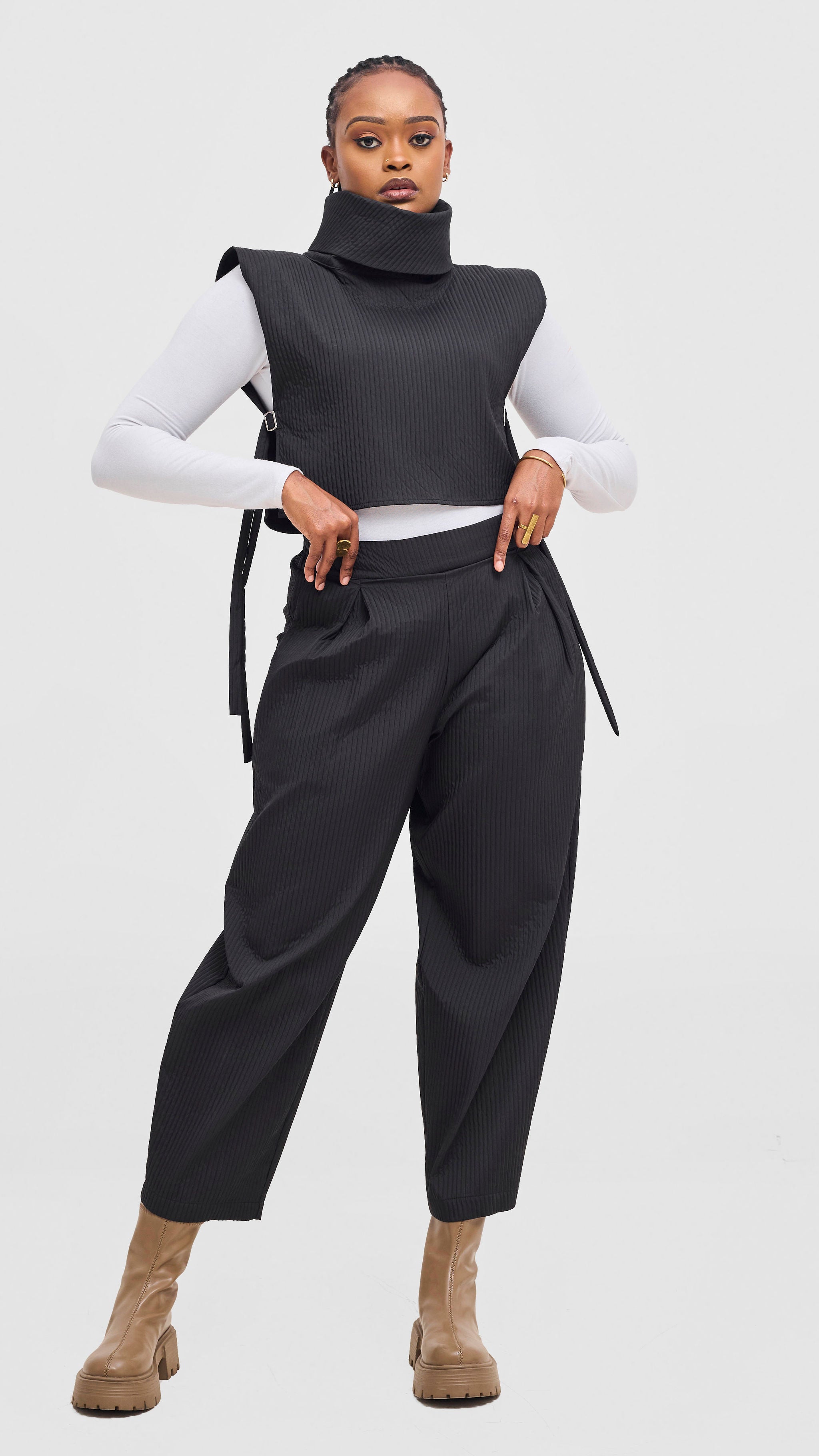 Anika Cropped Ruched Long Sleeve Blouse - Black