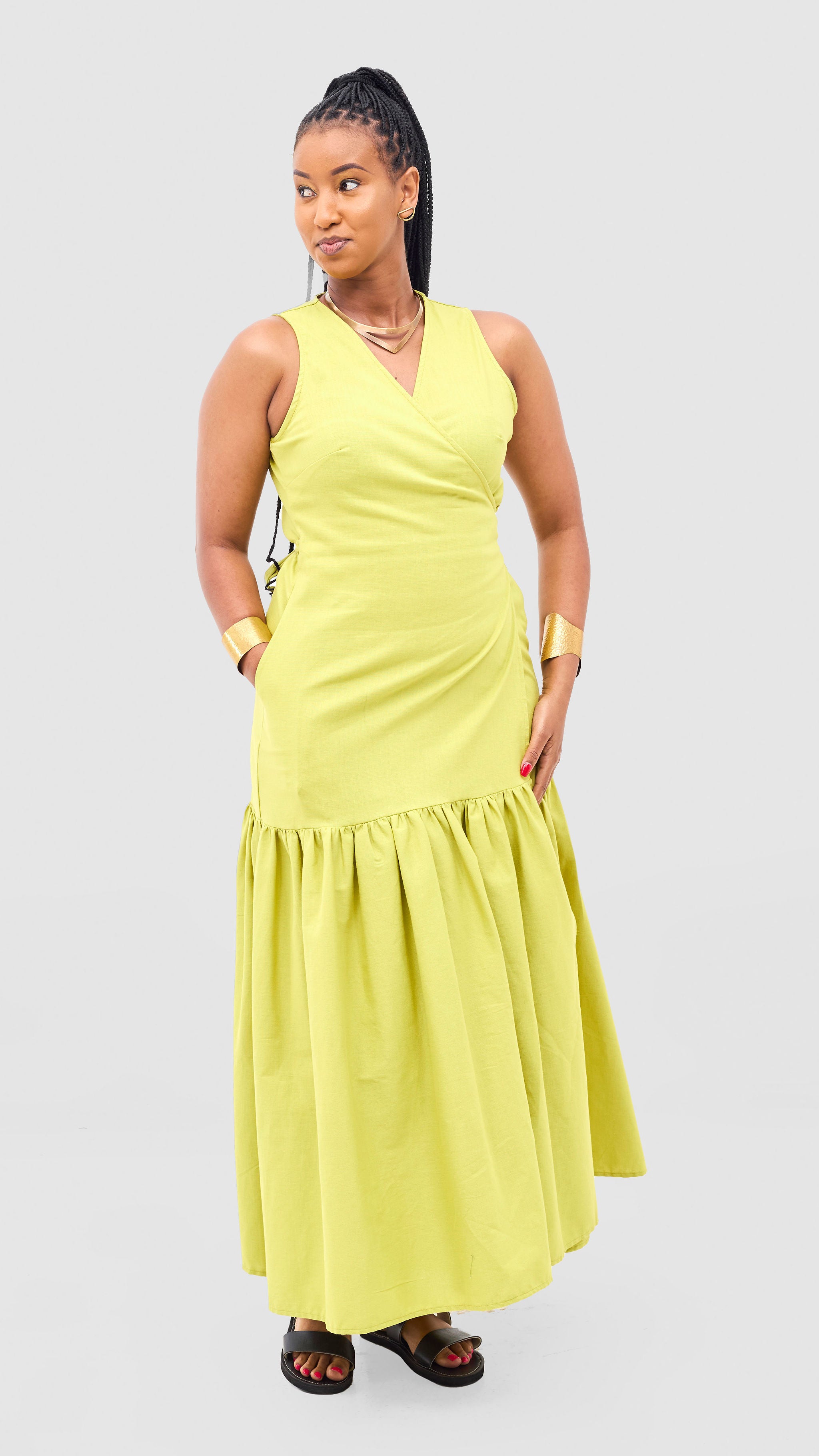 Safari Naledi Gathered Panel Wrap Dress - Lime