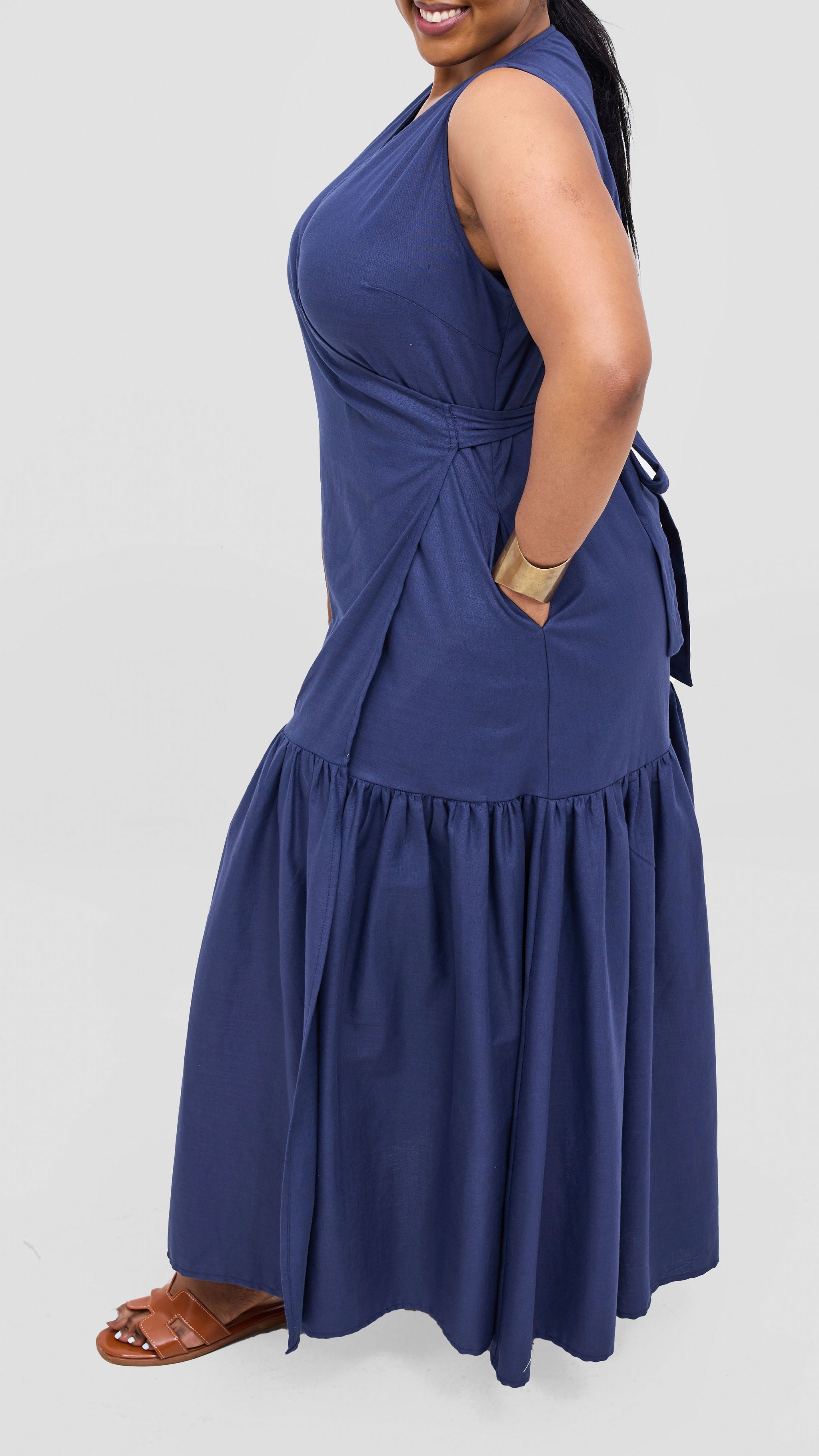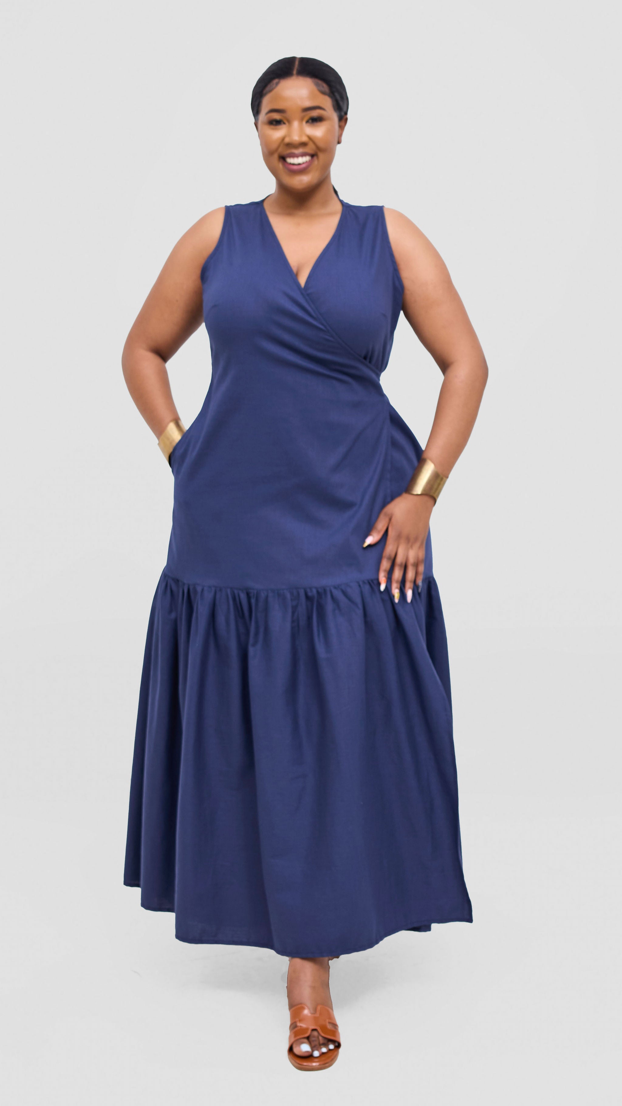 Safari Naledi Gathered Panel Wrap Dress - Navy