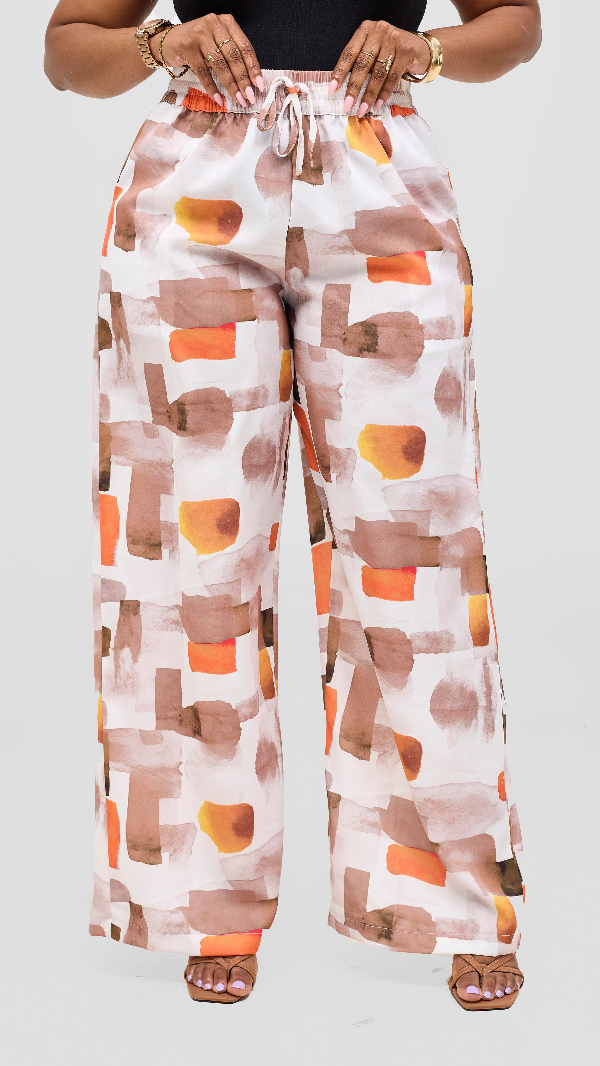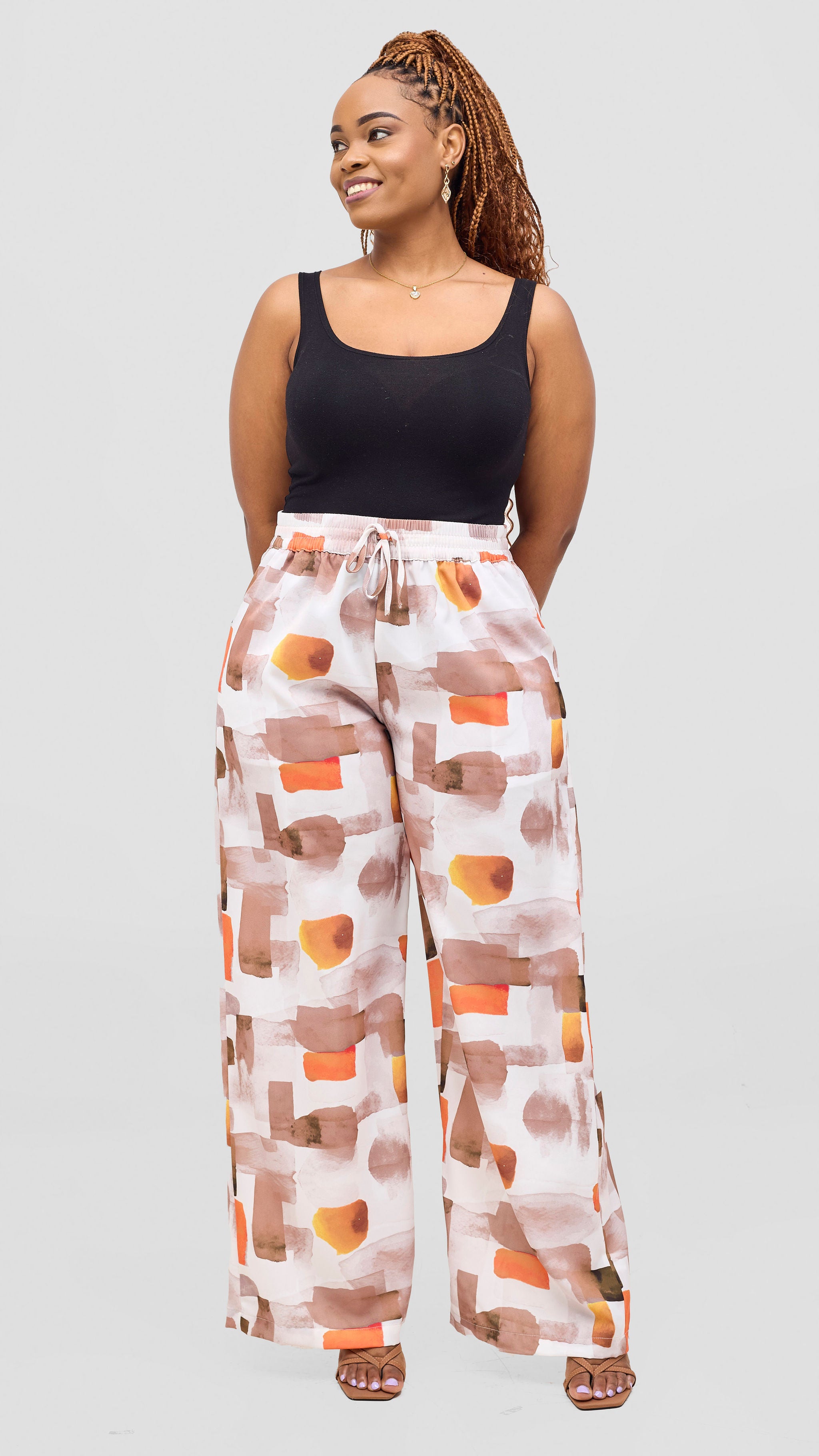 Vivo Ayah Drawstring Pants - Taupe / Orange Zani Print