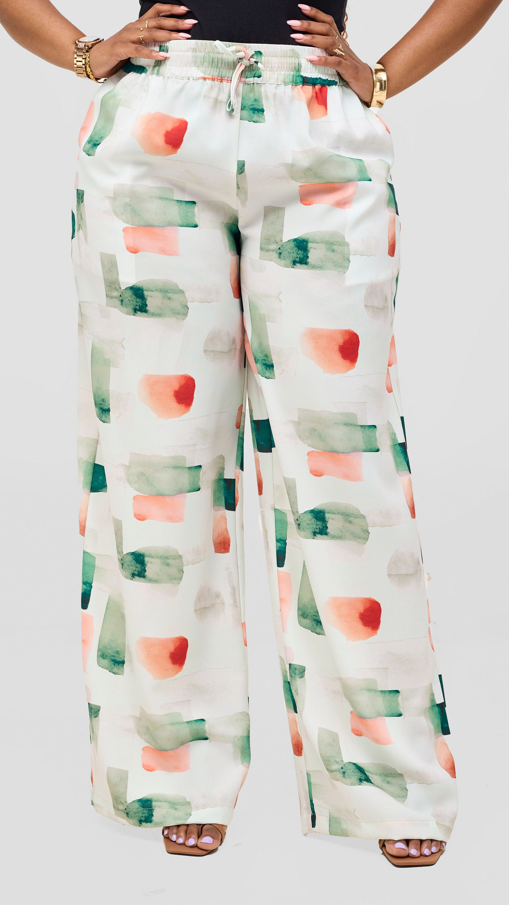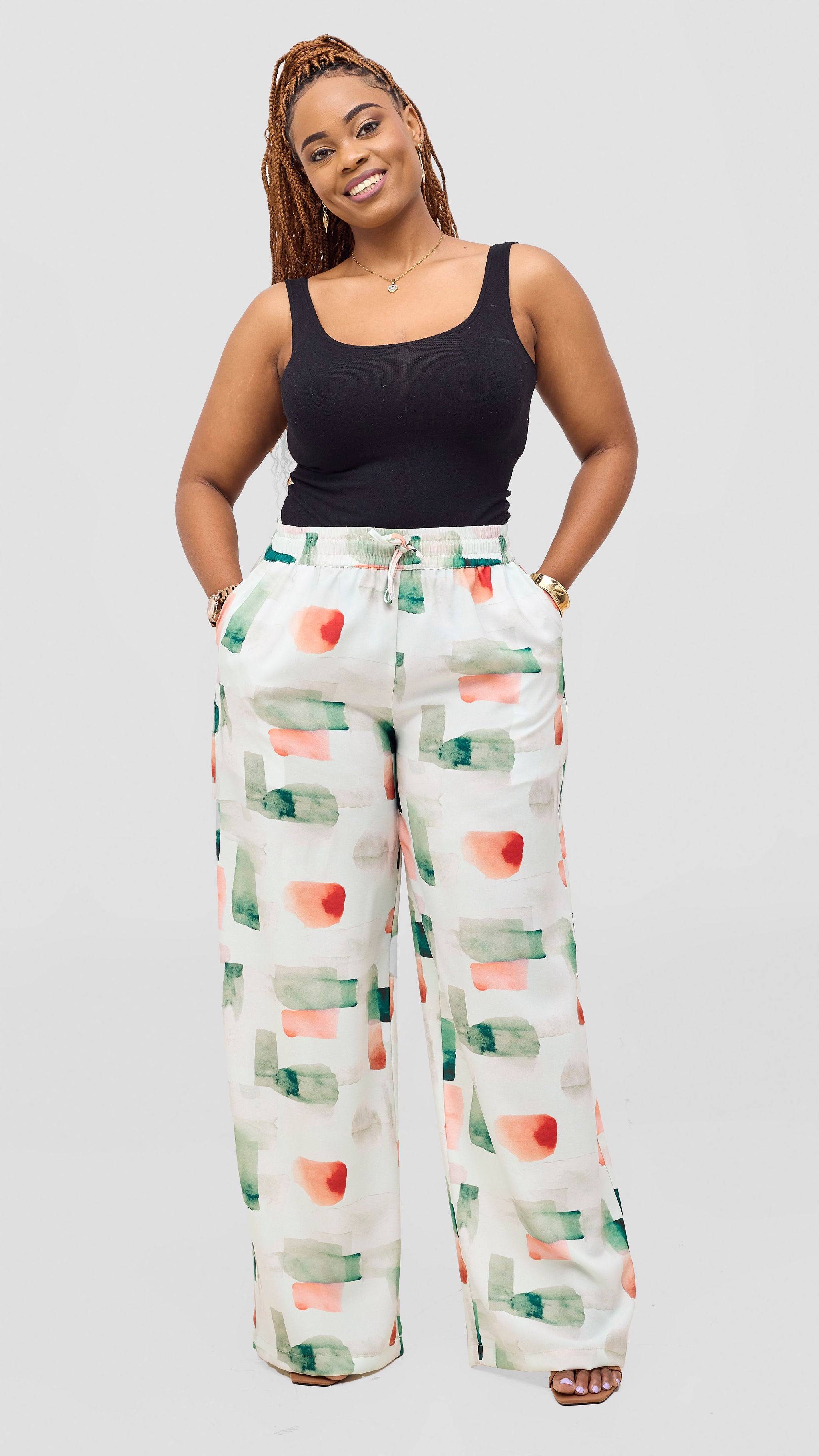 Vivo Ayah Drawstring Pants -Green / Peach Zani Print