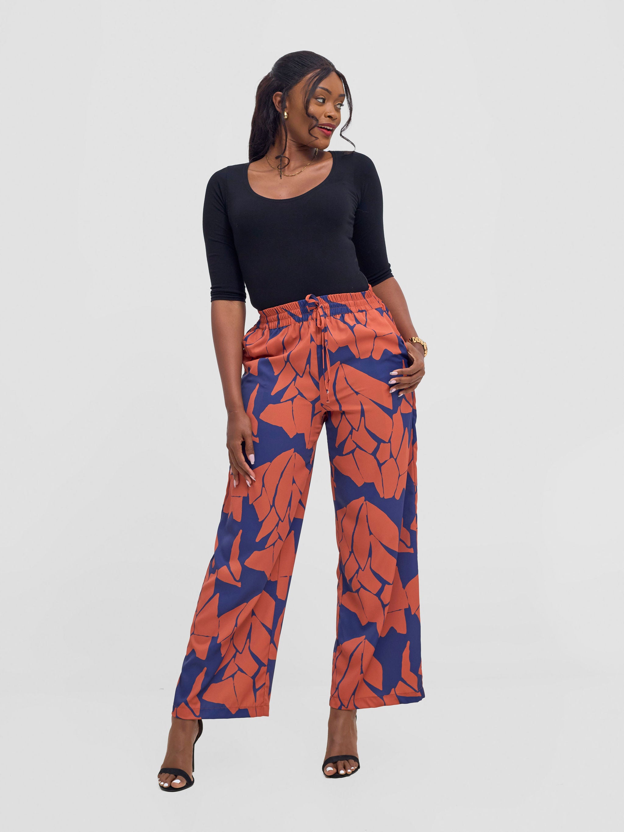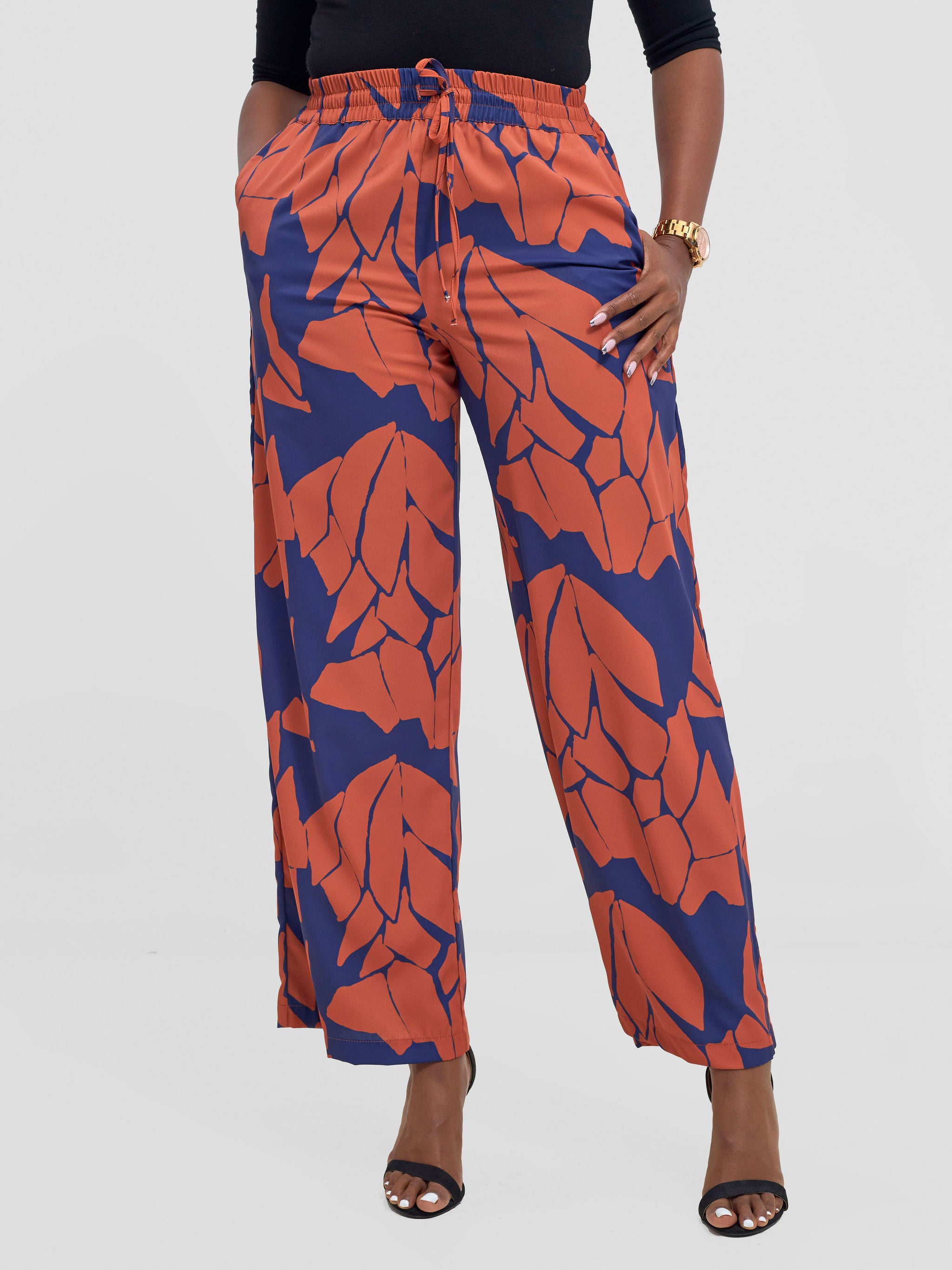 Vivo Ayah Drawstring Pants - Rust / Navy Yaa Print
