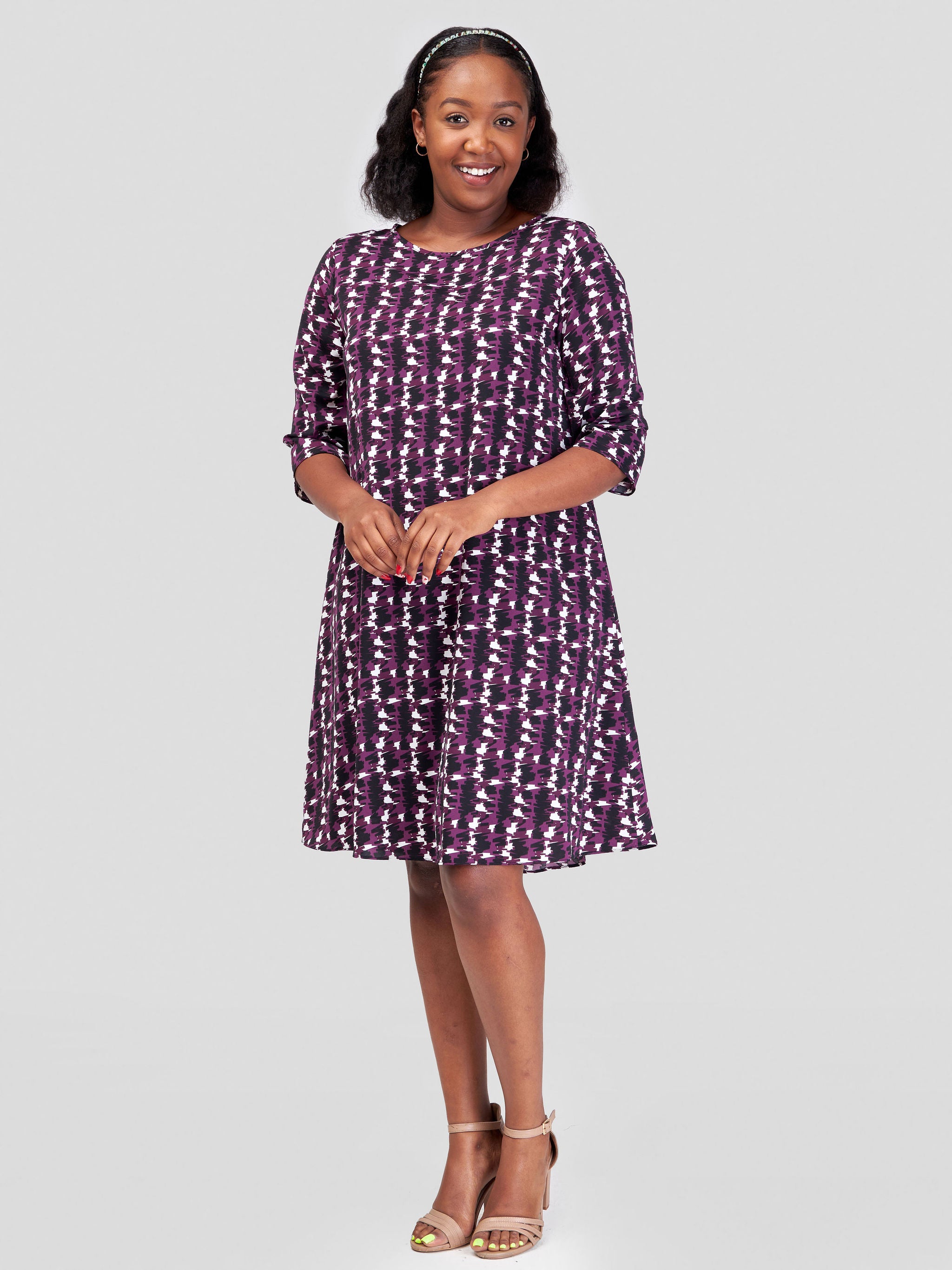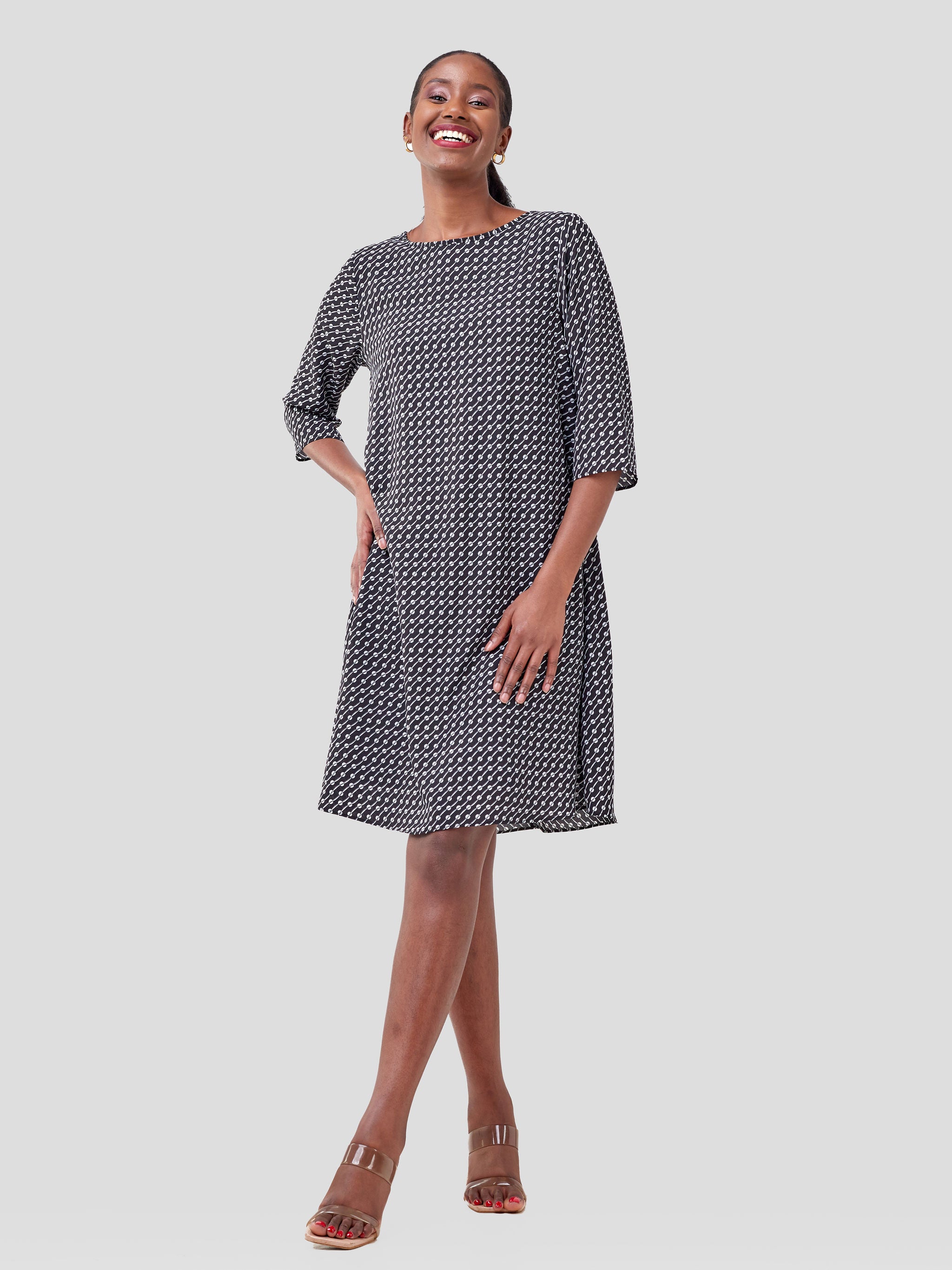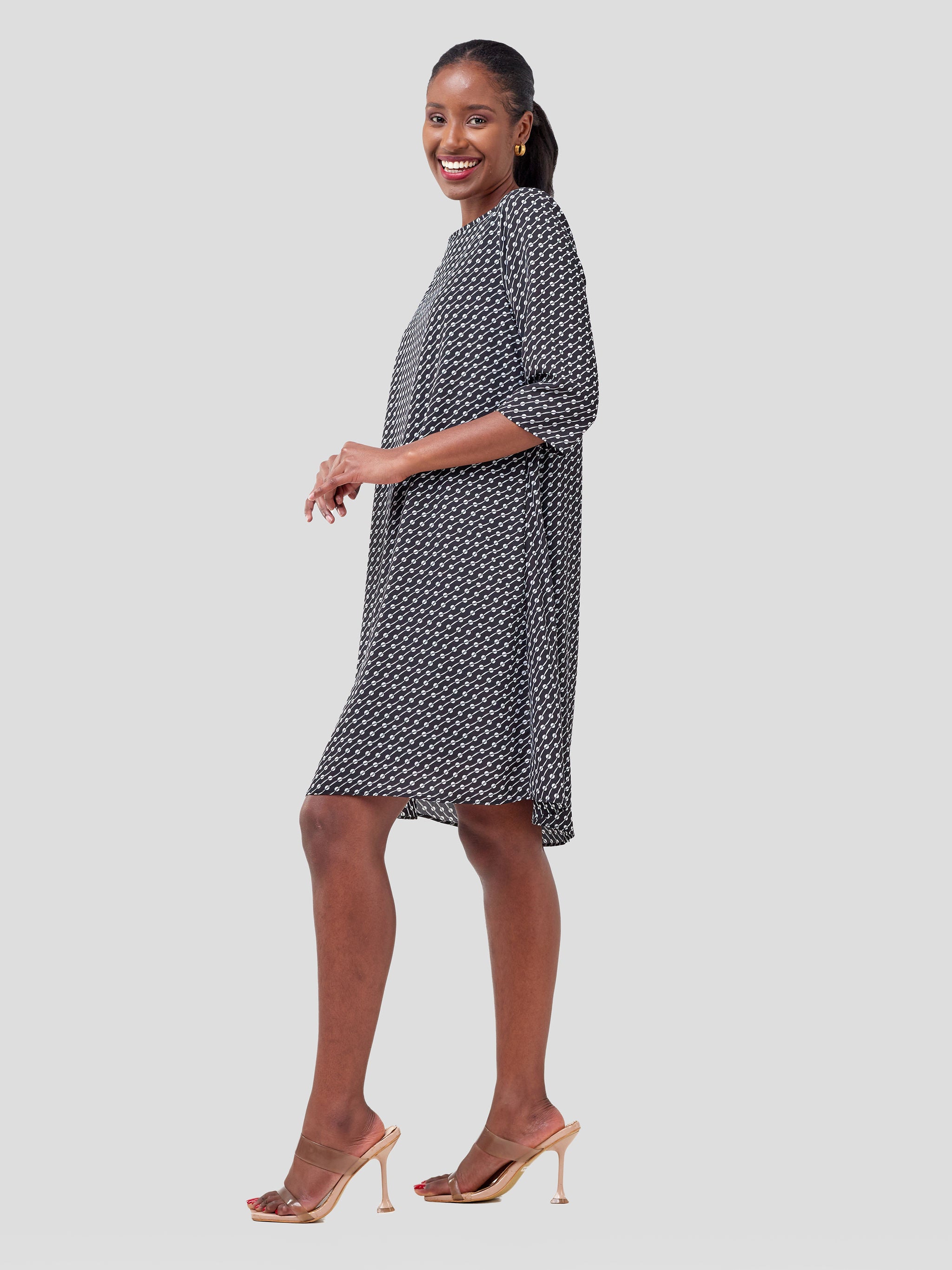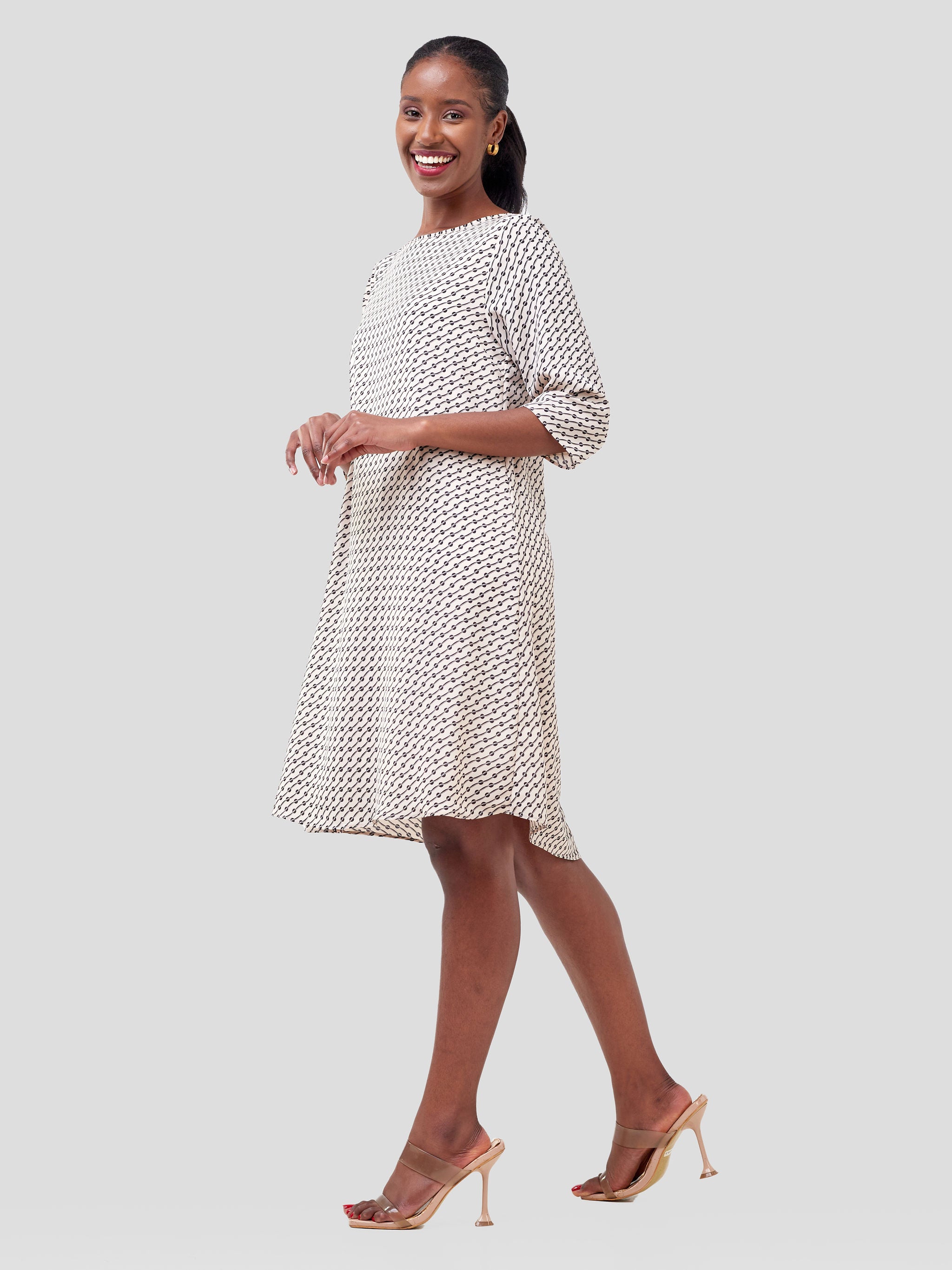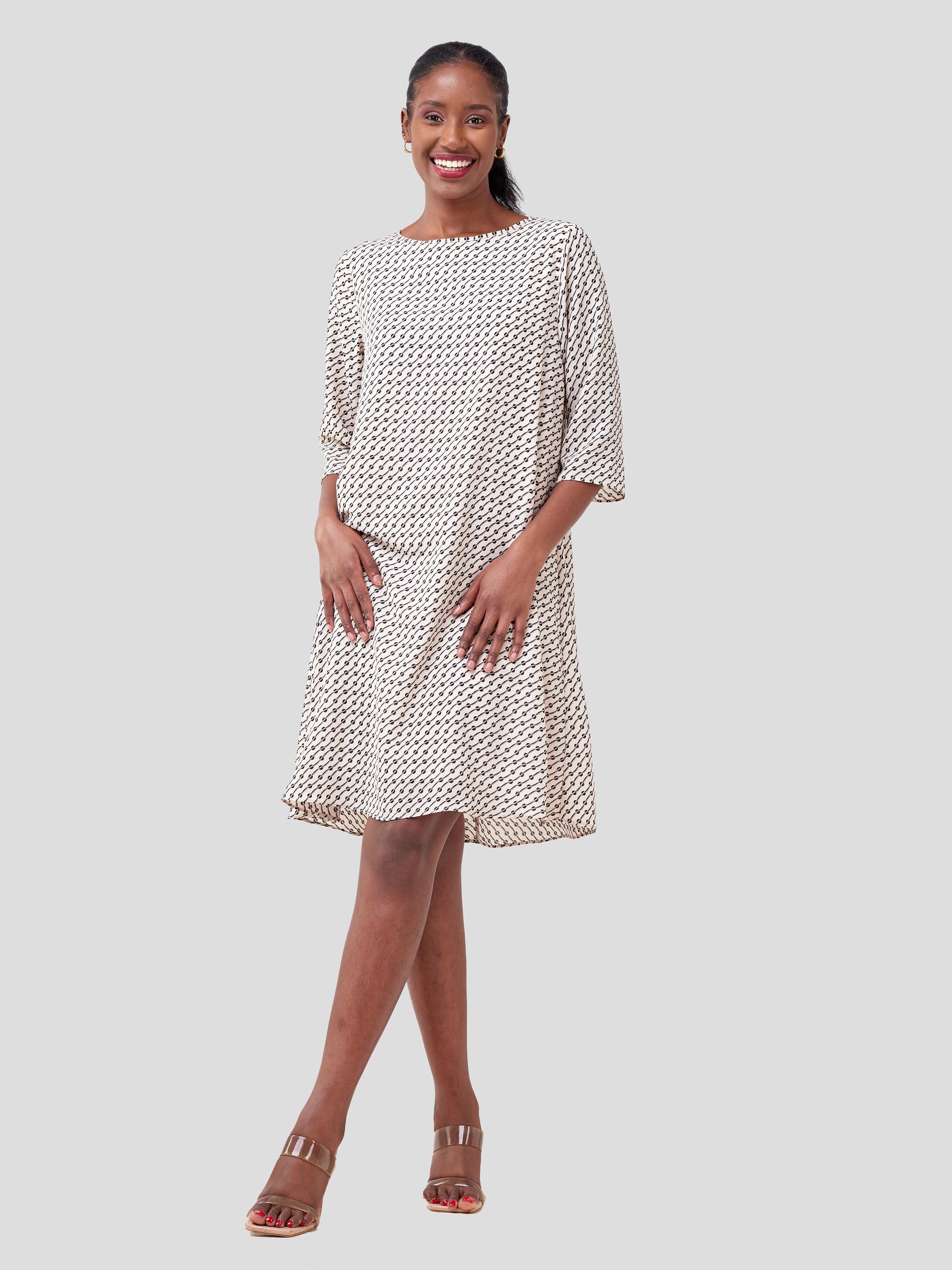 Vivo Ayo Tent Dress - Cream / Blue Print