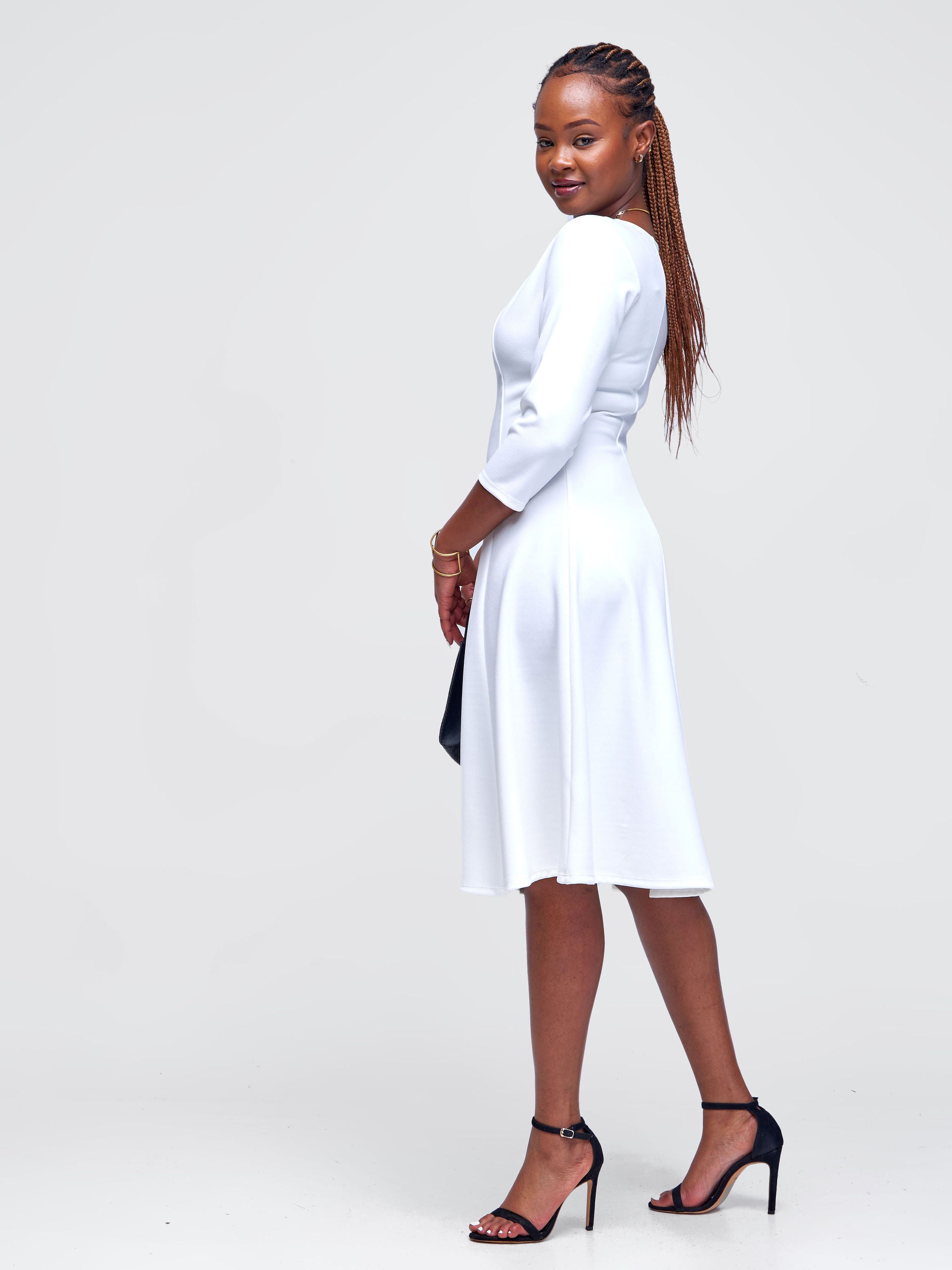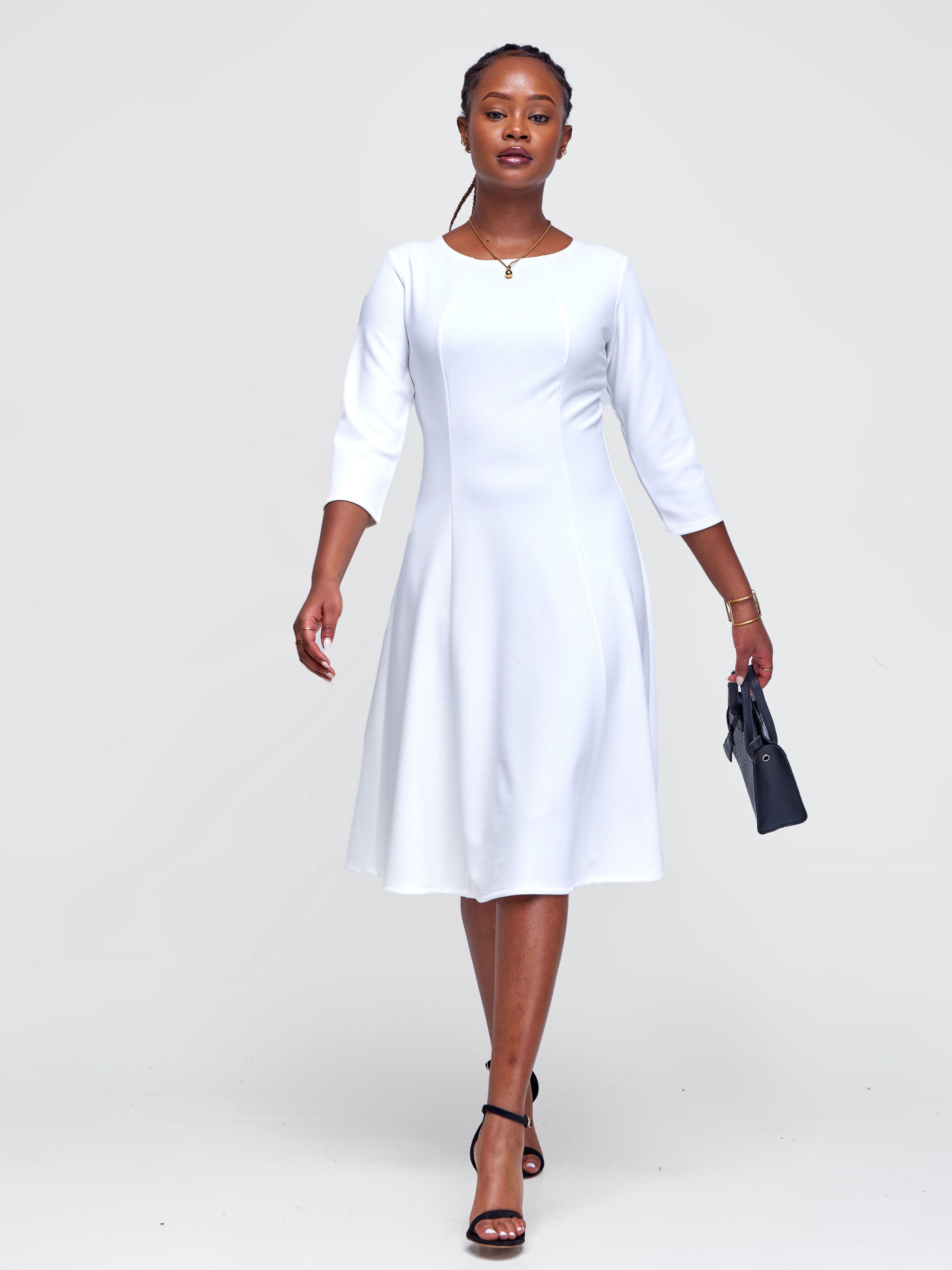 Vivo Basic 3/4 Sleeve Escape A-Line Dress - White