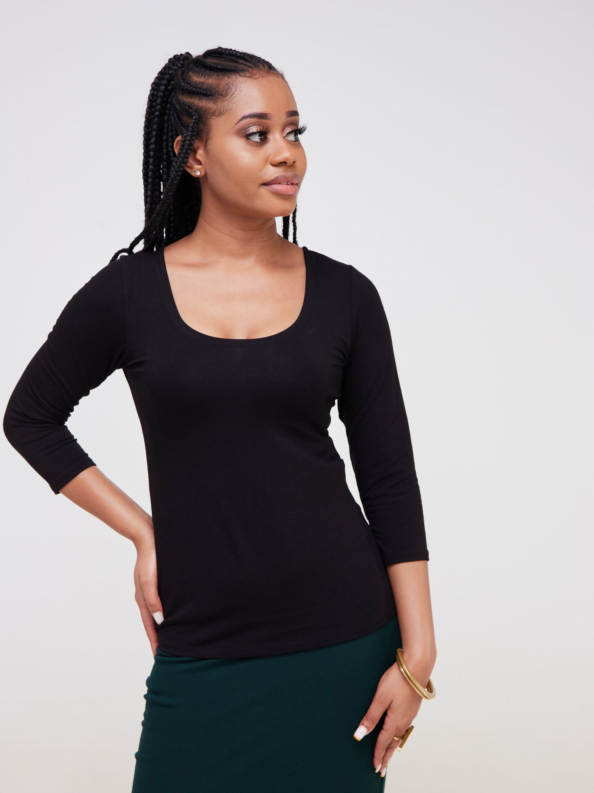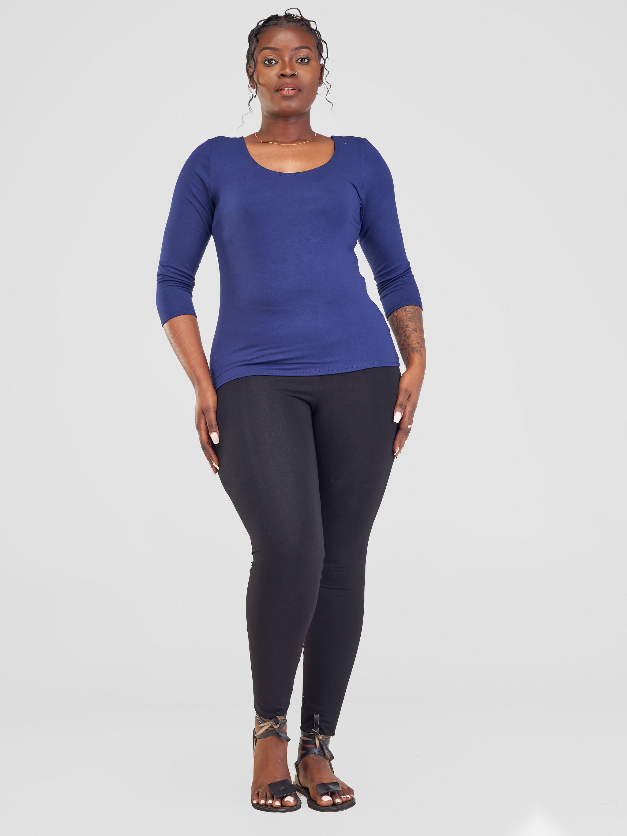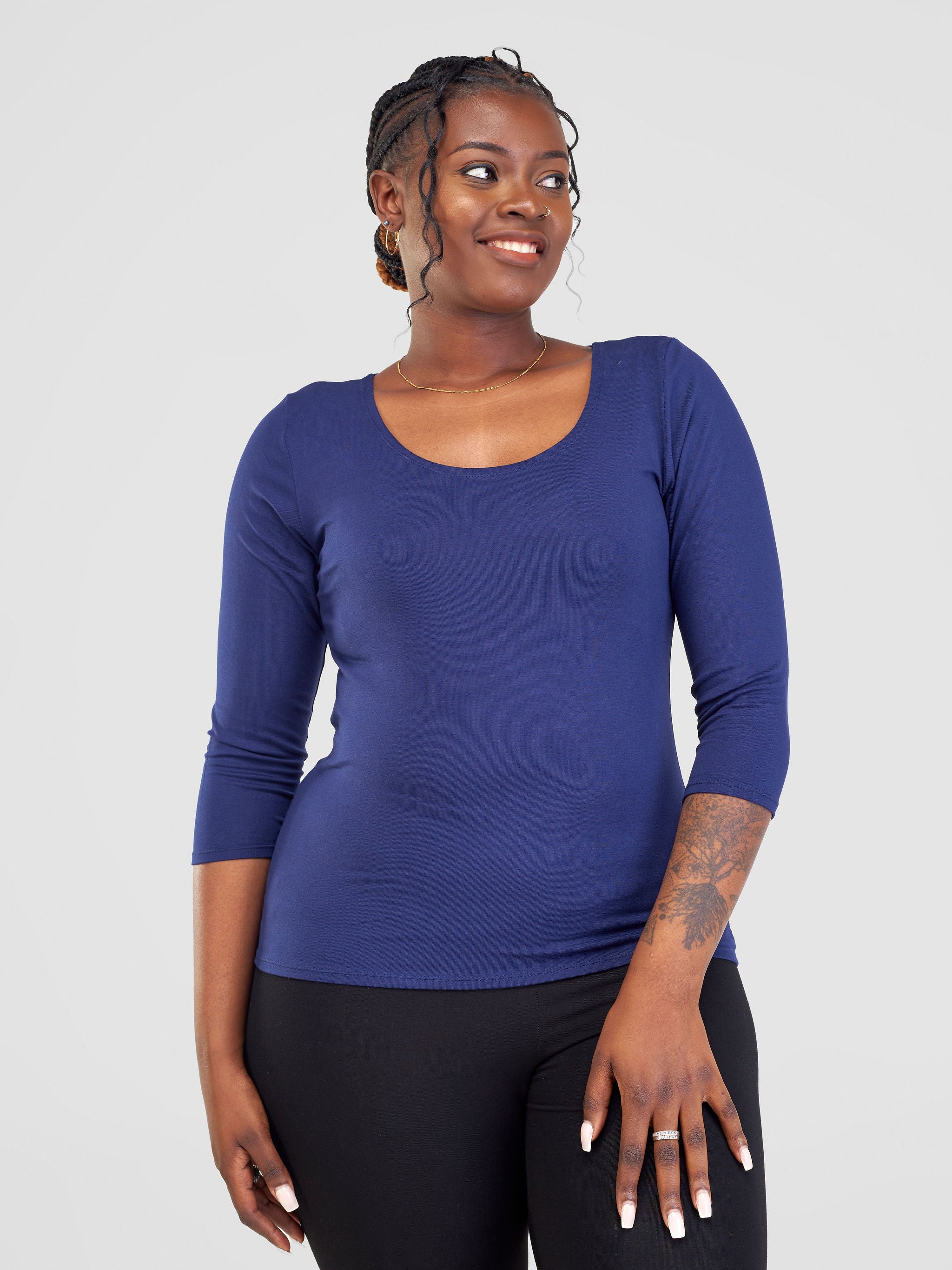Vivo Basic 3/4 Sleeve Top - Navy Blue