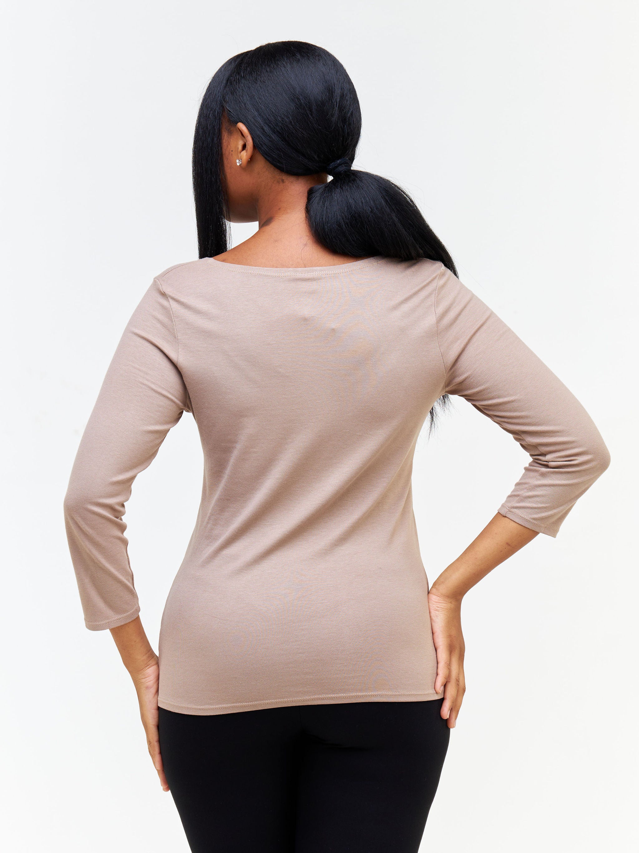 Vivo Basic 3/4 Sleeve Top - Taupe