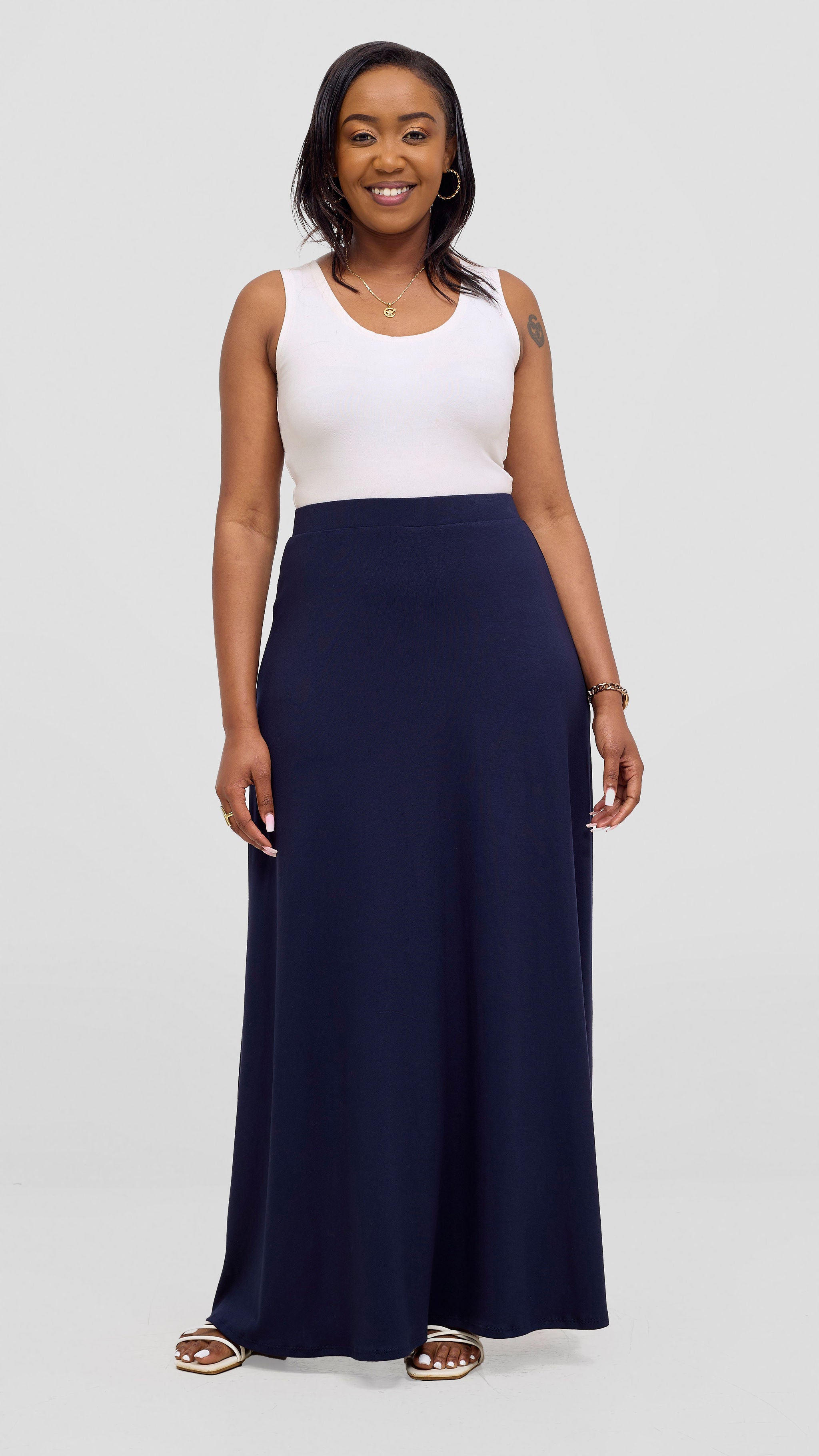Vivo Basic A-Line Maxi Dress - Navy Blue