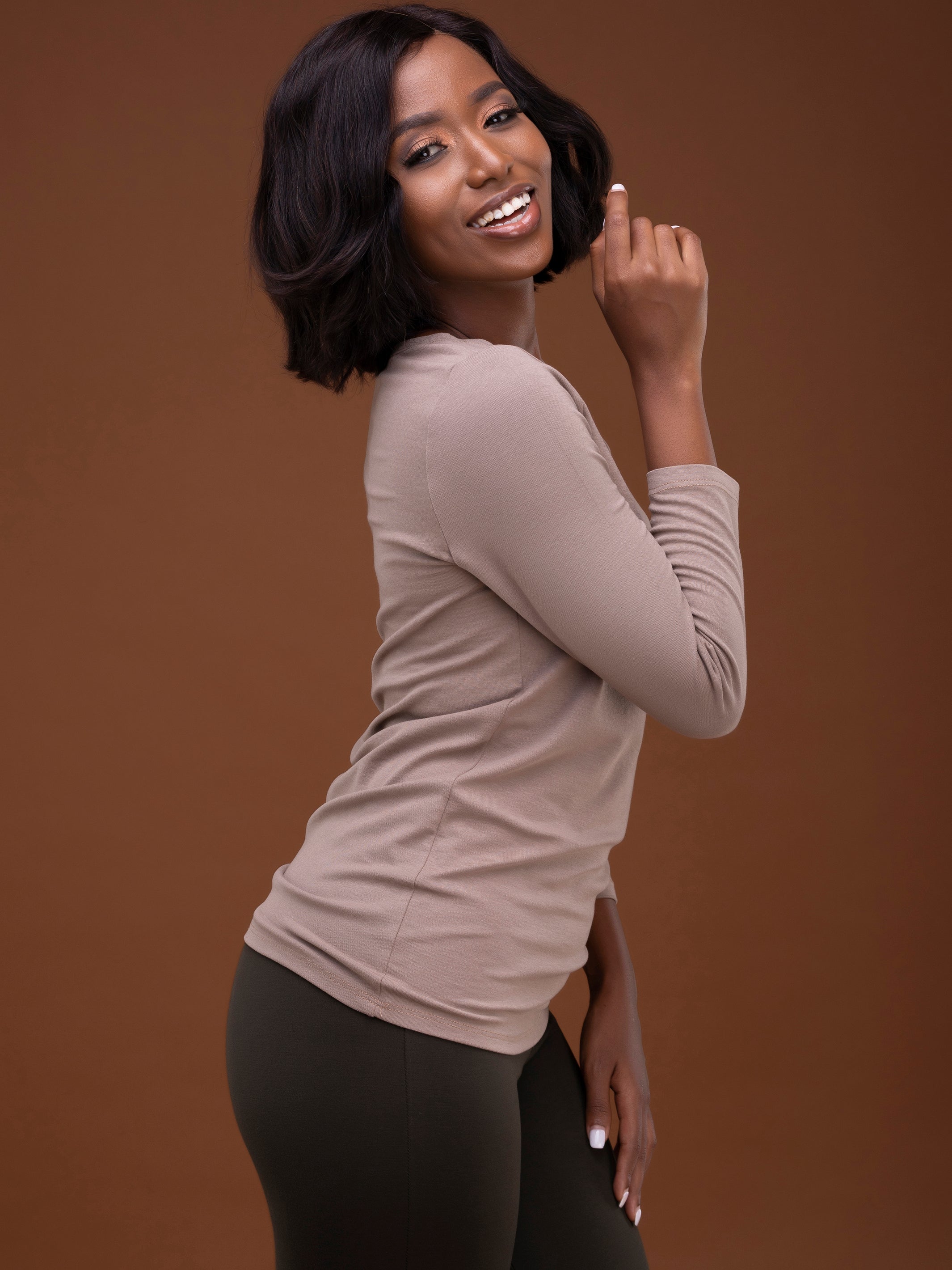 Vivo Basic 3/4 Sleeved Tulia Top - Taupe