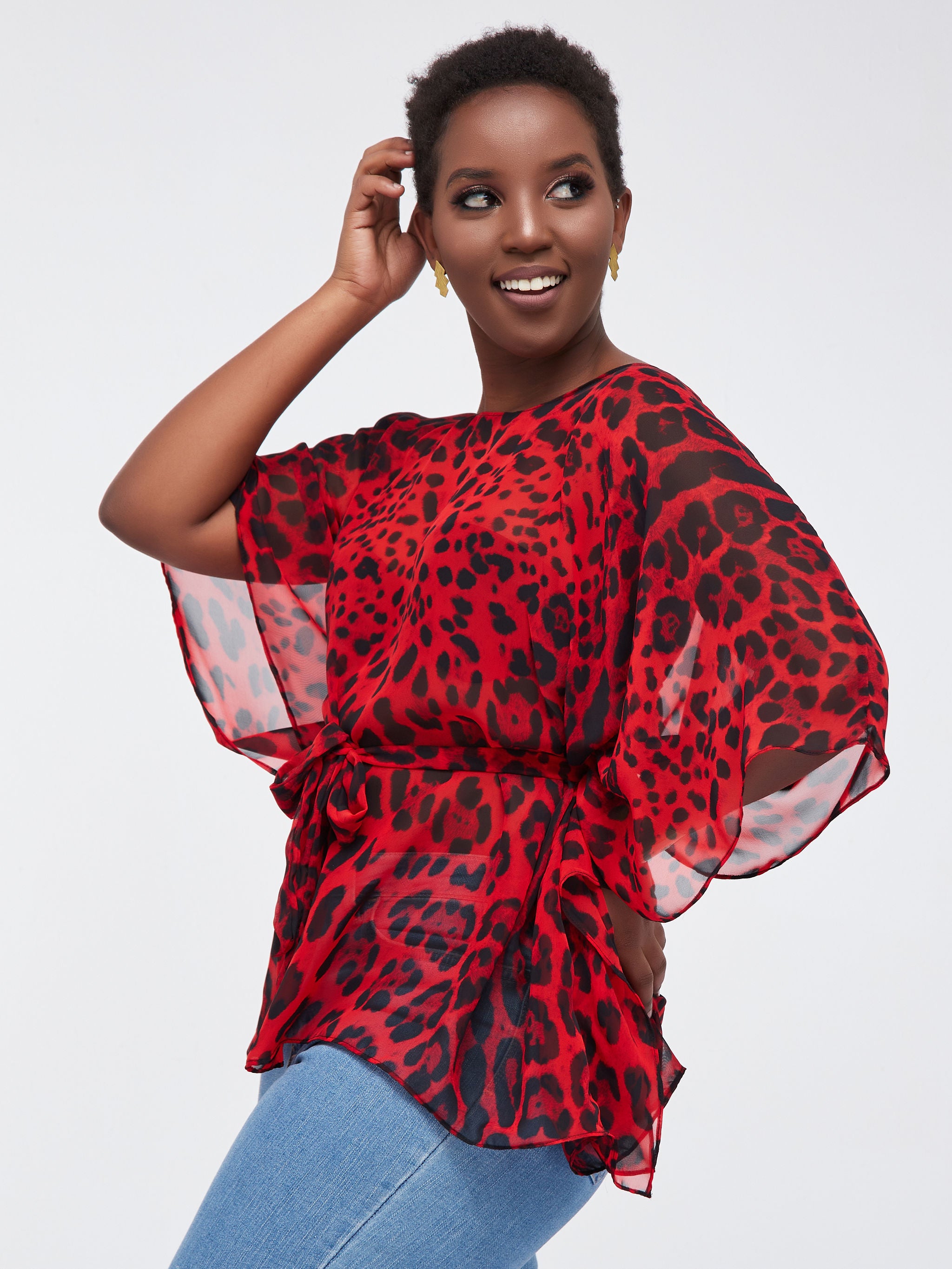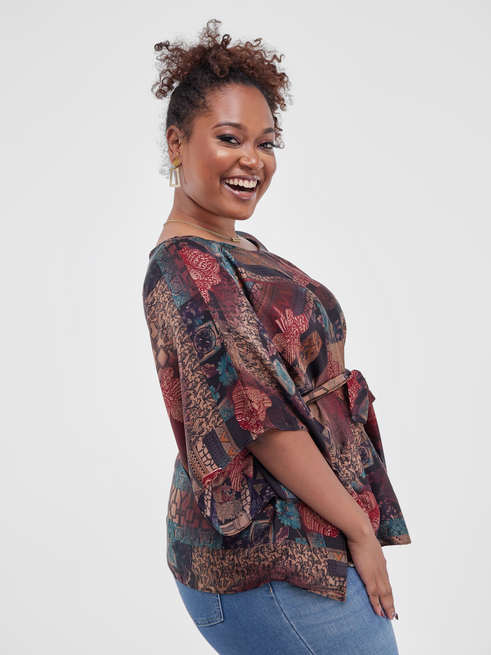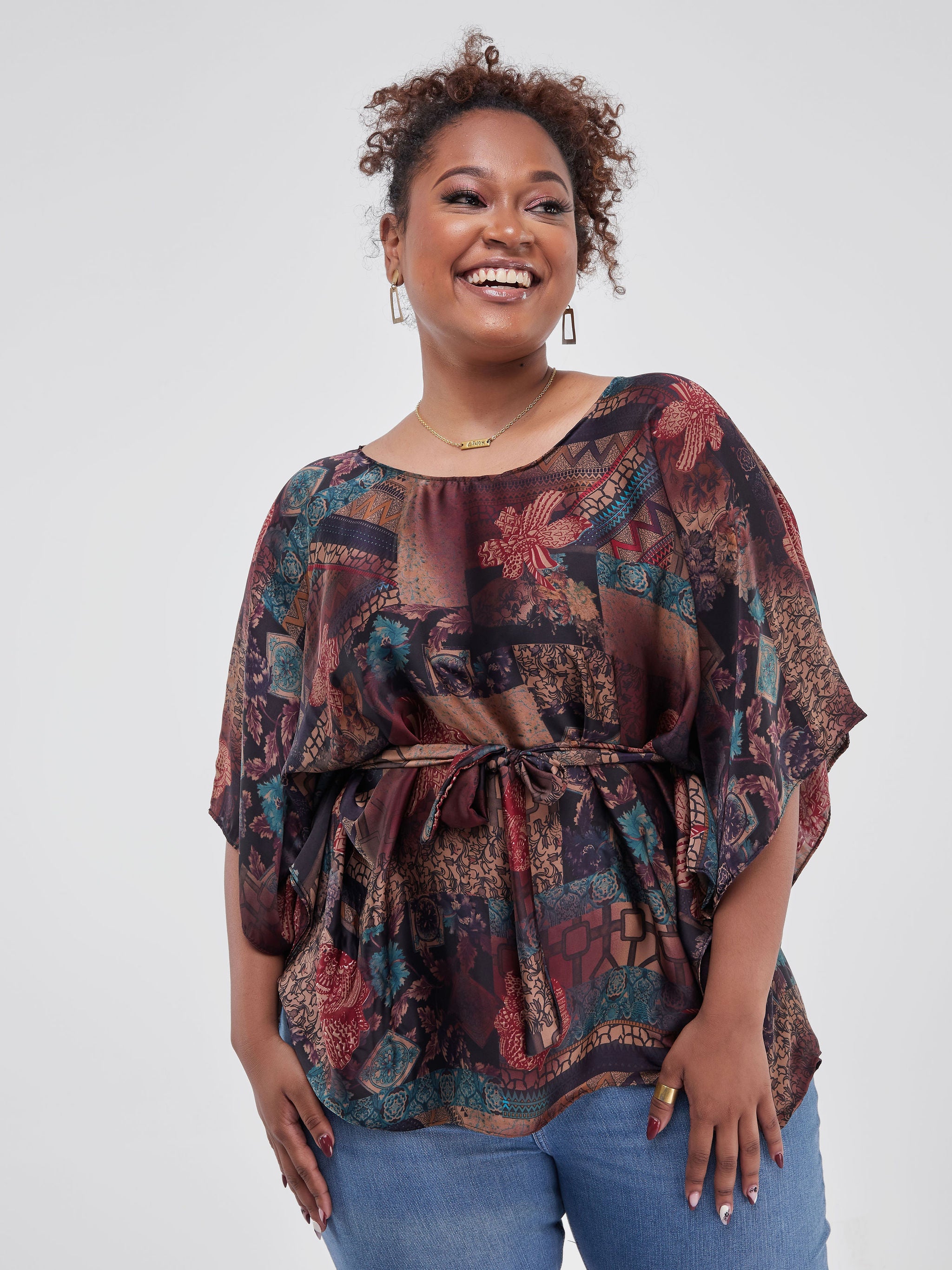 Safari Watamu Satin Top - Brown Print
