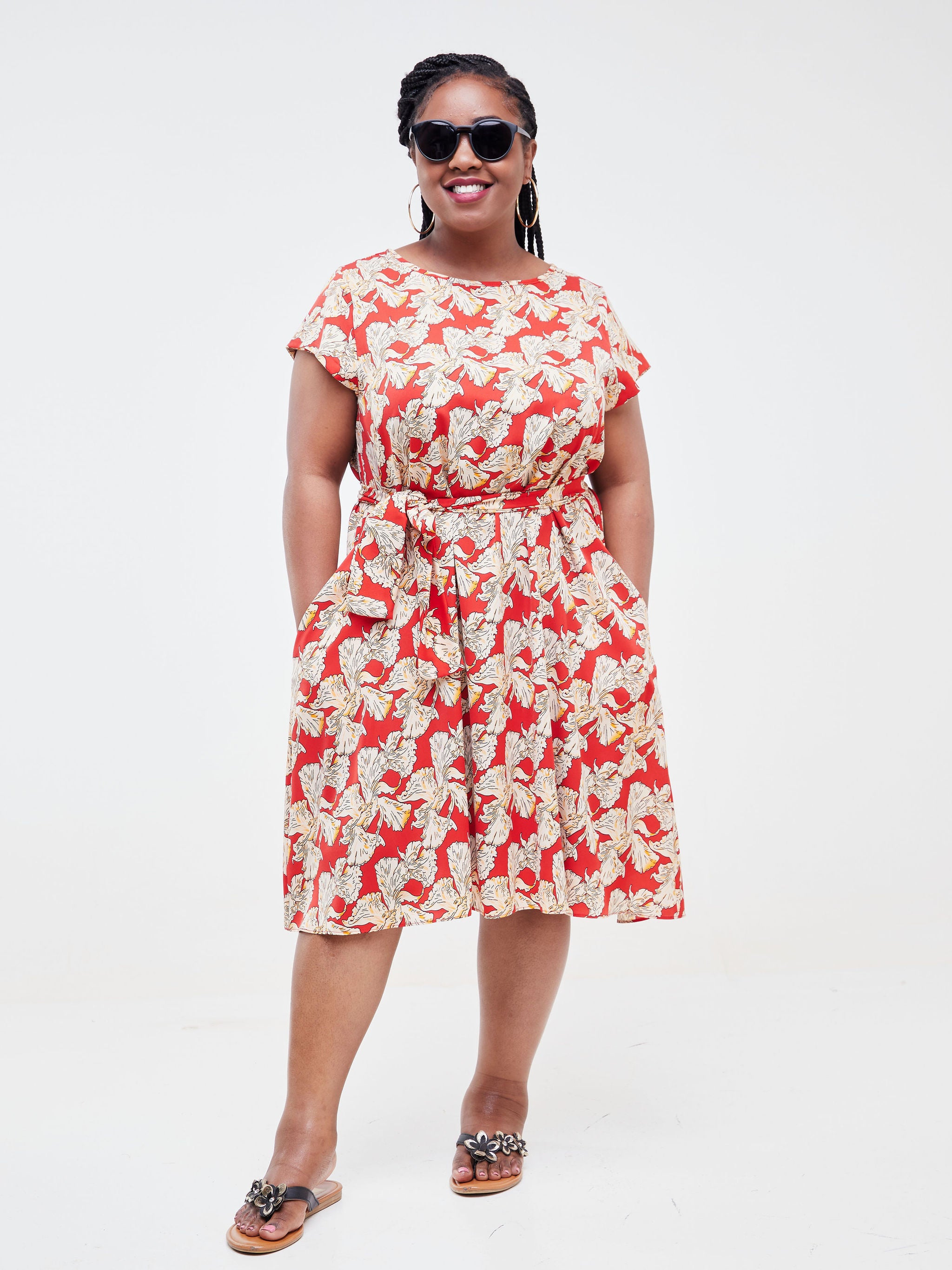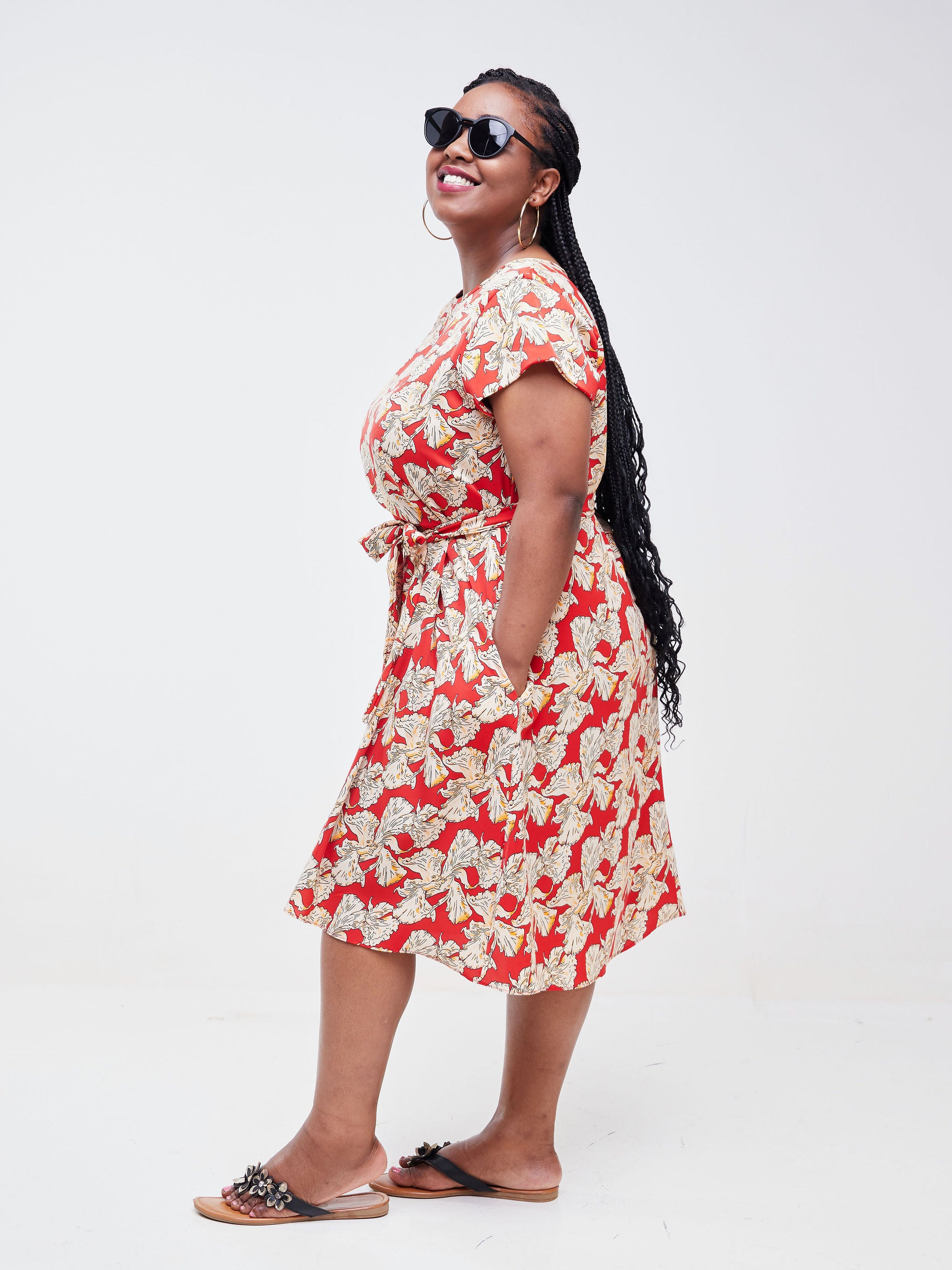 Vivo Basic Cap Sleeve Knee Length Tent Dress - Orange / Brown Abstract Print