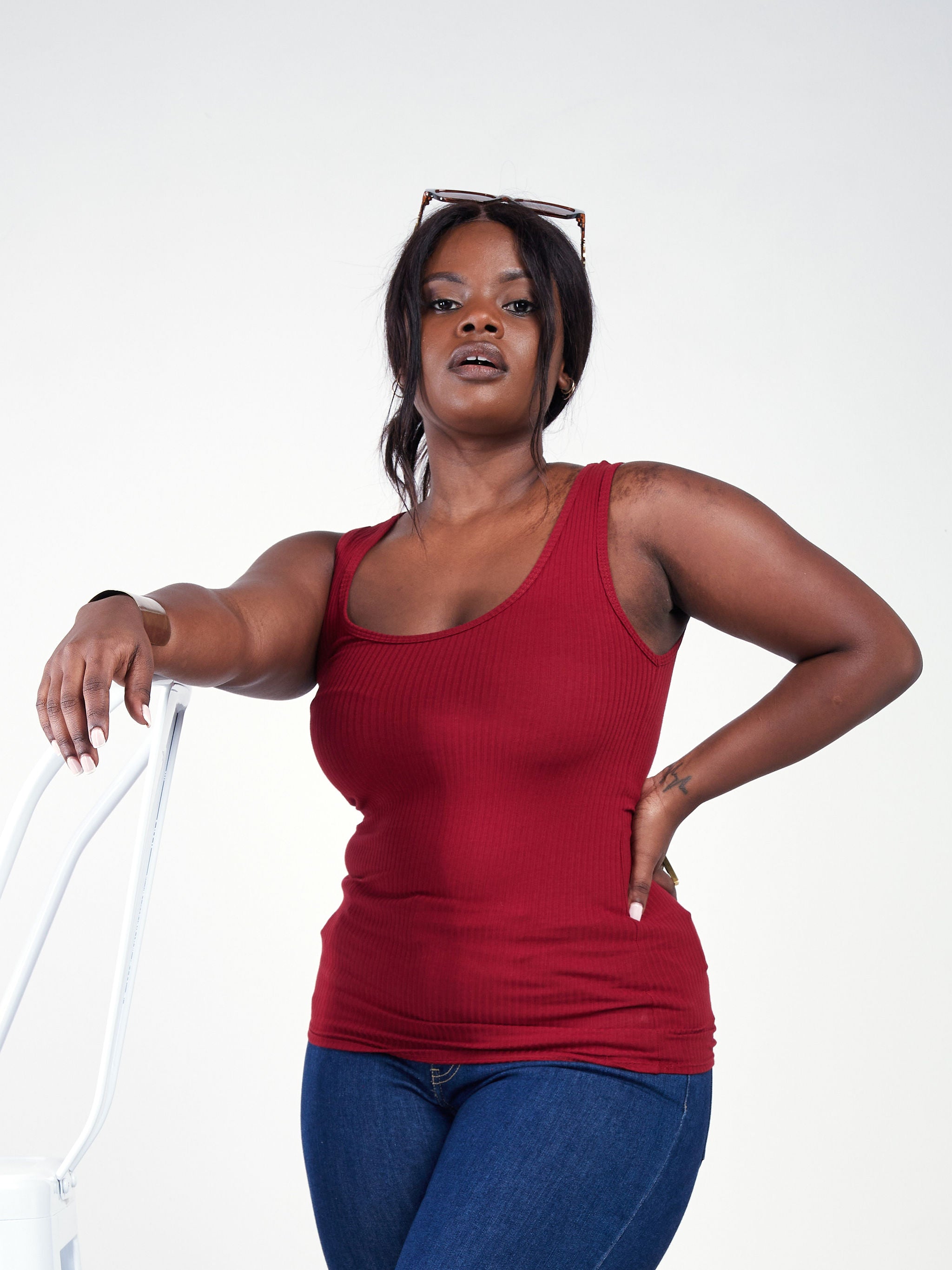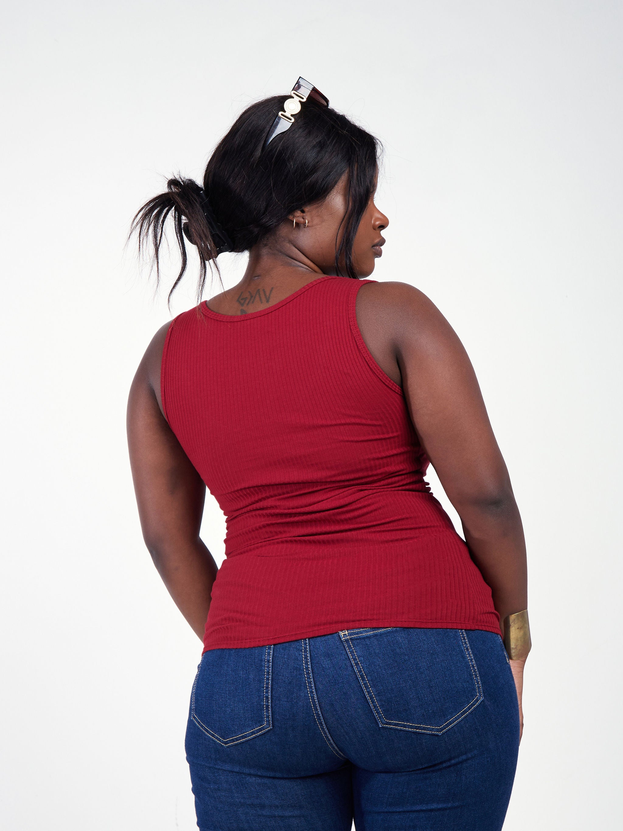 Safari Basic Ribbed Tank Top - Maroon
