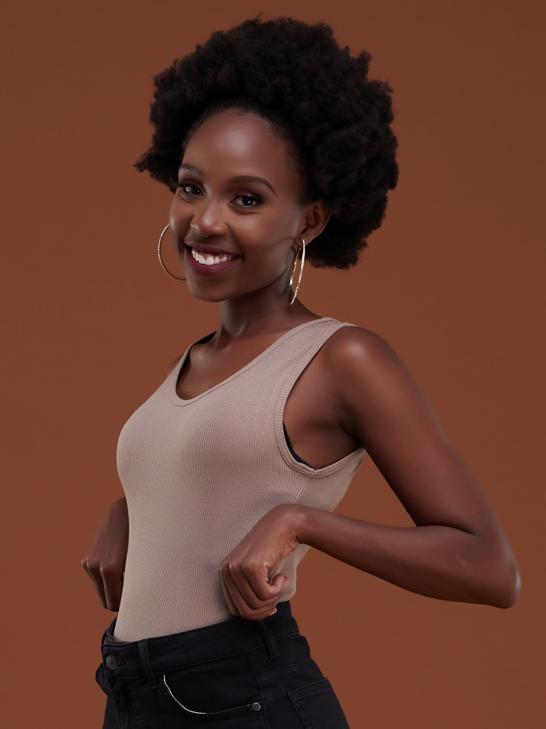 Safari Basic Ribbed Tank Top - Taupe