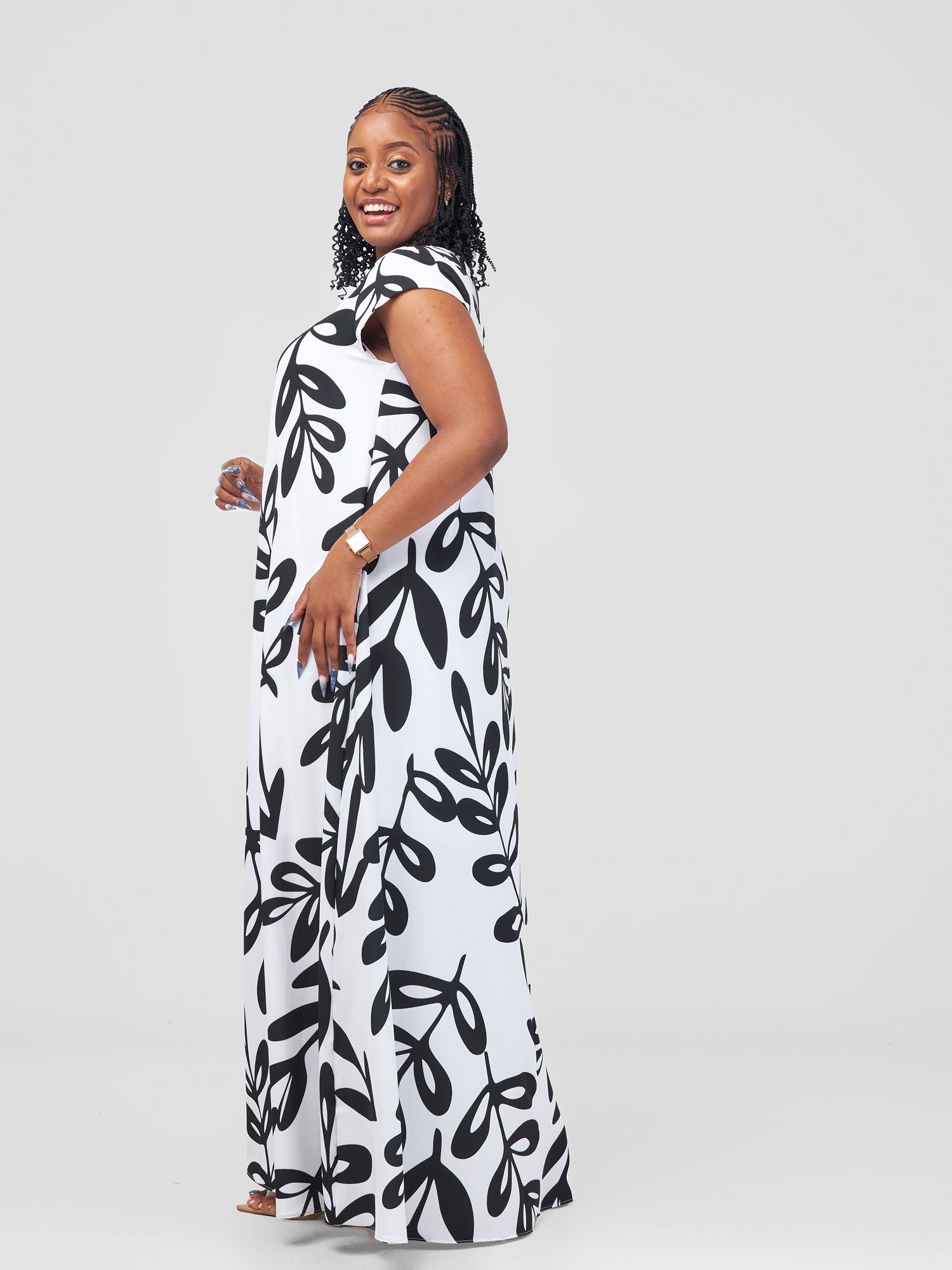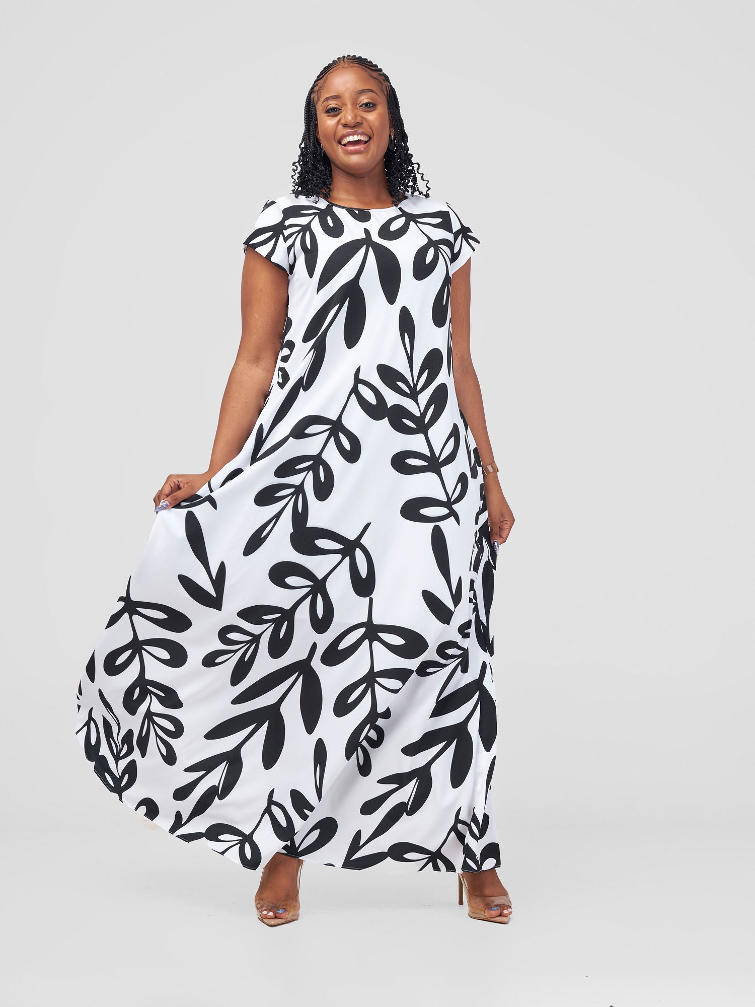 Vivo Basic Cap Sleeve Maxi Tent Dress - White Jilo Print