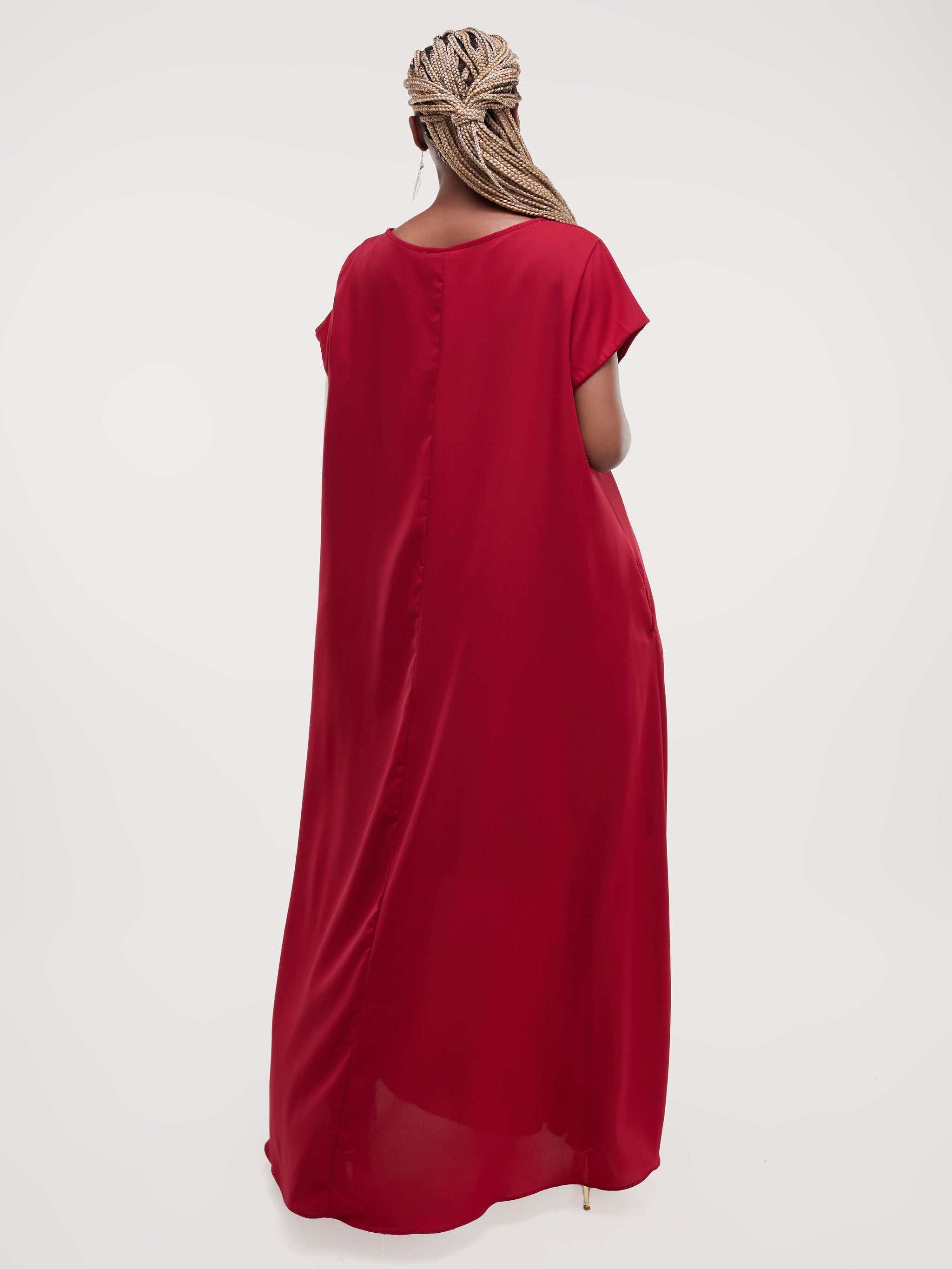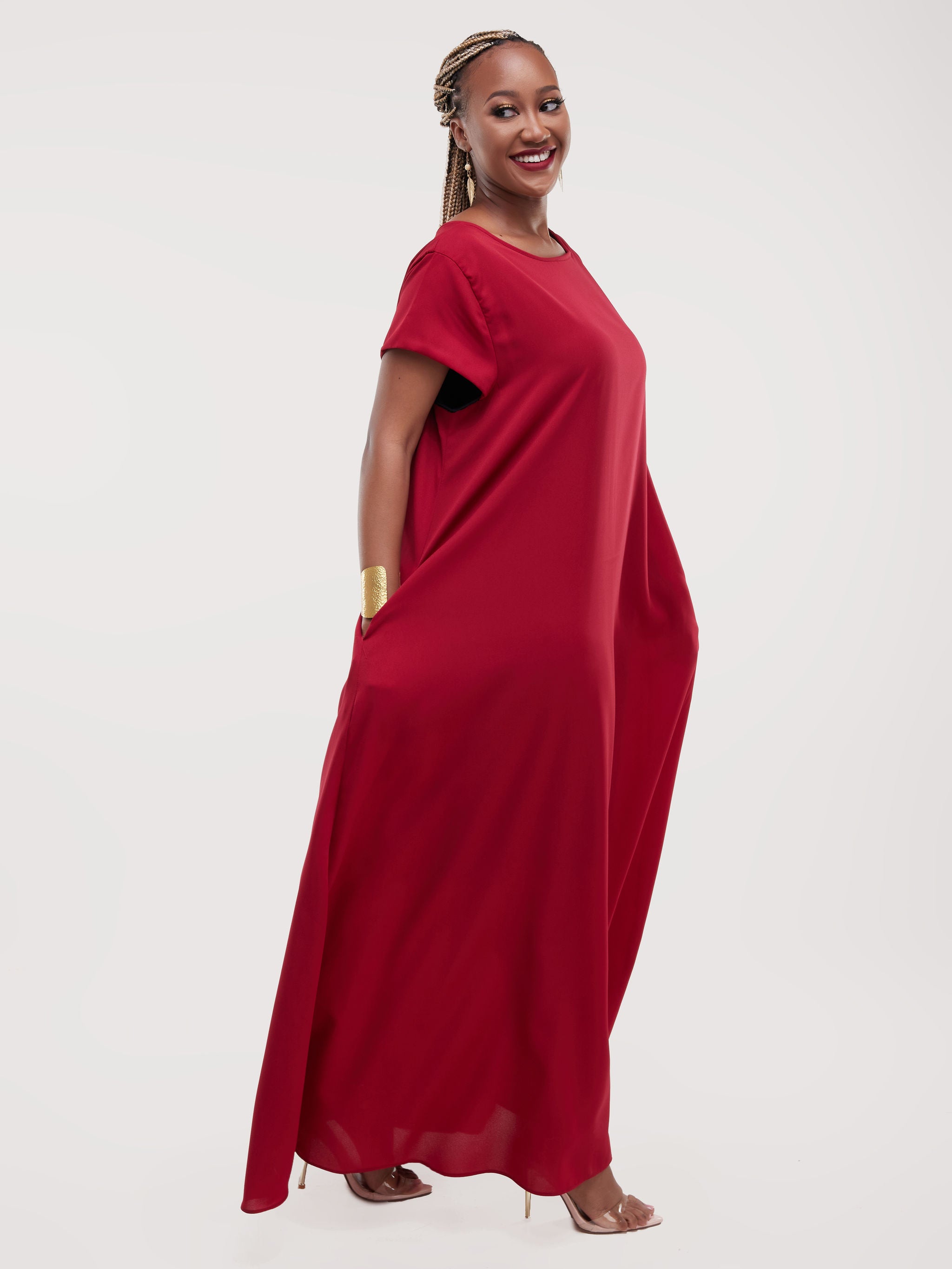 Vivo Basic Cap Sleeved Tent Maxi Dress - Maroon