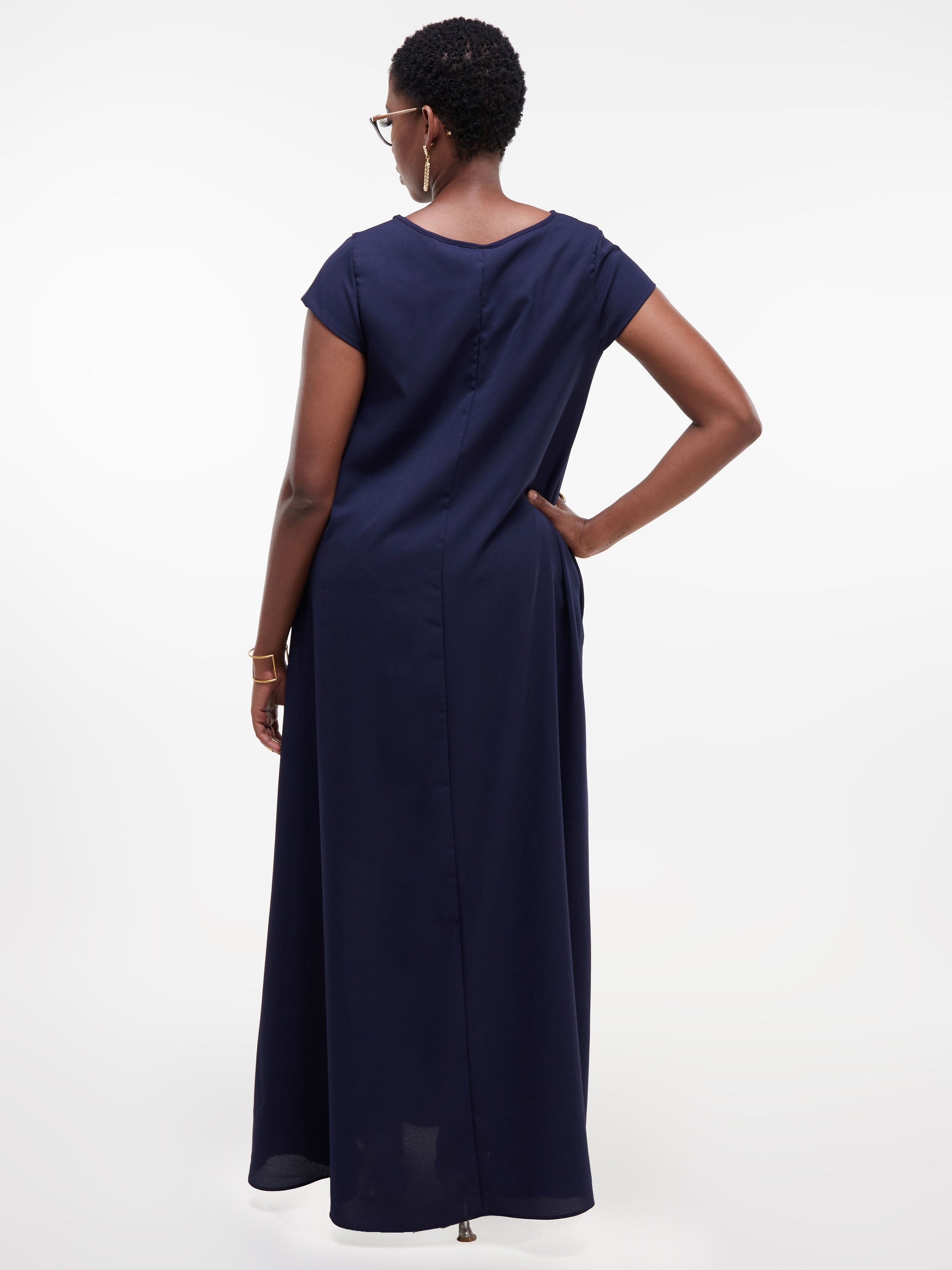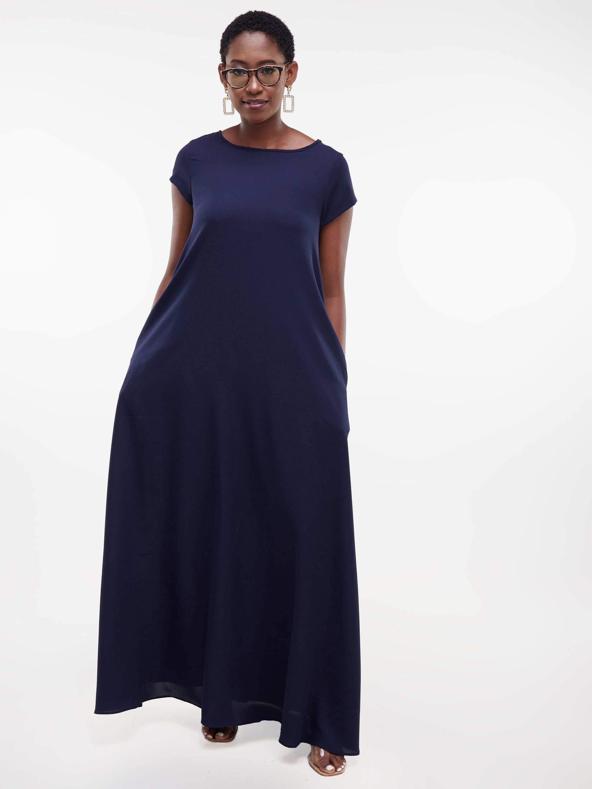 Vivo Basic Cap Sleeved Tent Maxi Dress - Navy Blue