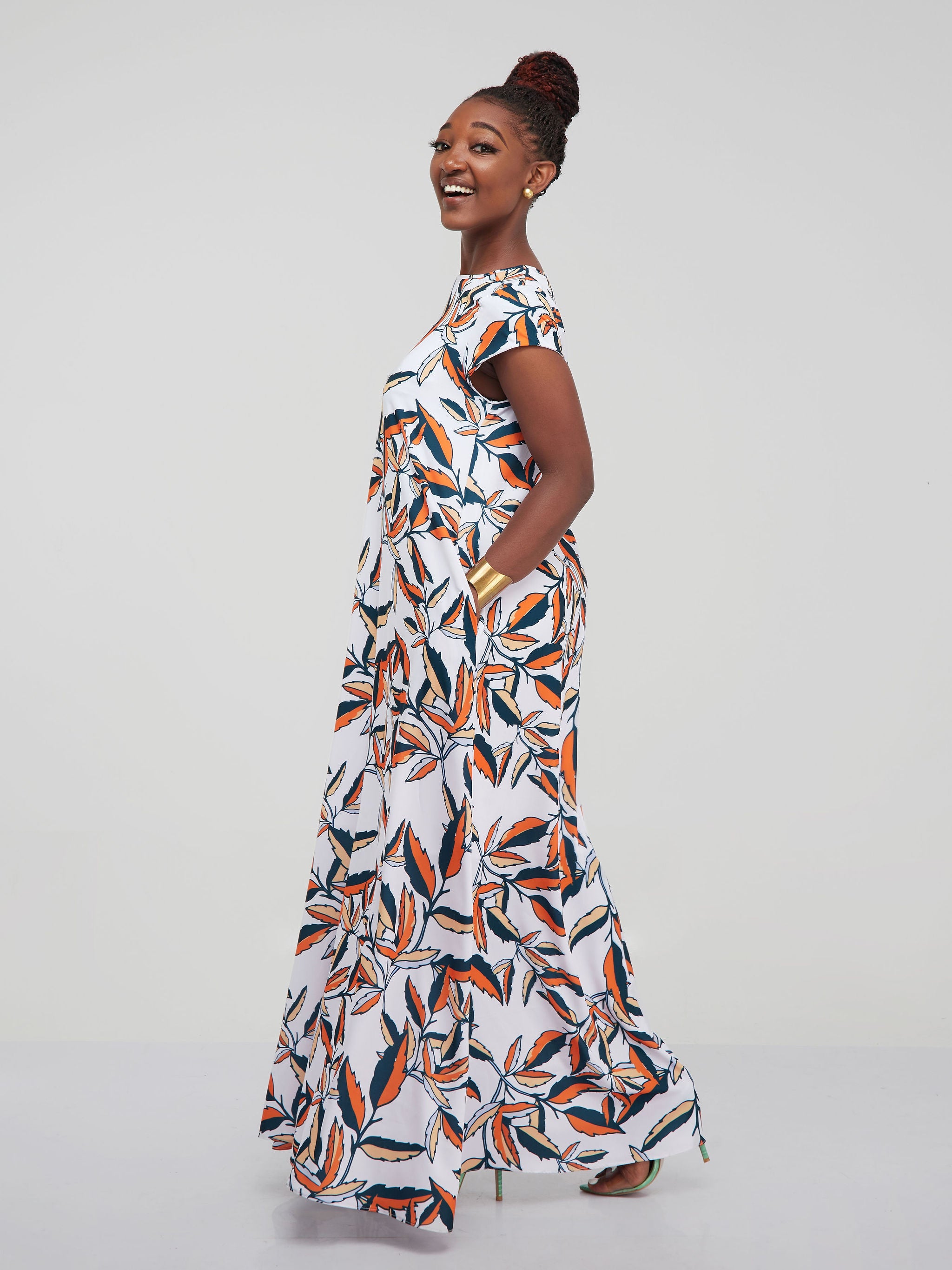 Vivo Basic Cap Sleeved Tent Maxi Dress - Orange Print