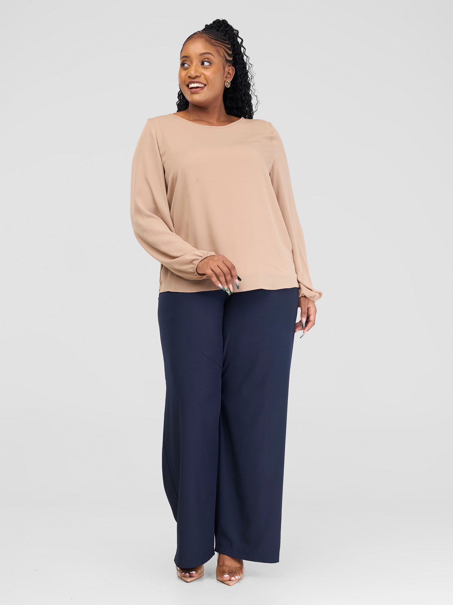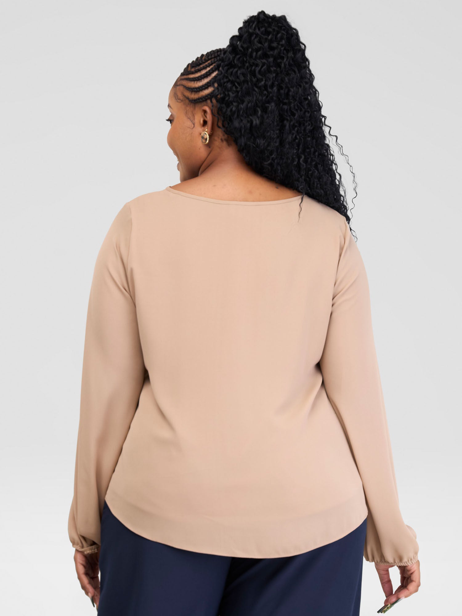 Vivo Basic Chiffon Bishop Sleeve Top (Double Layered) - Taupe