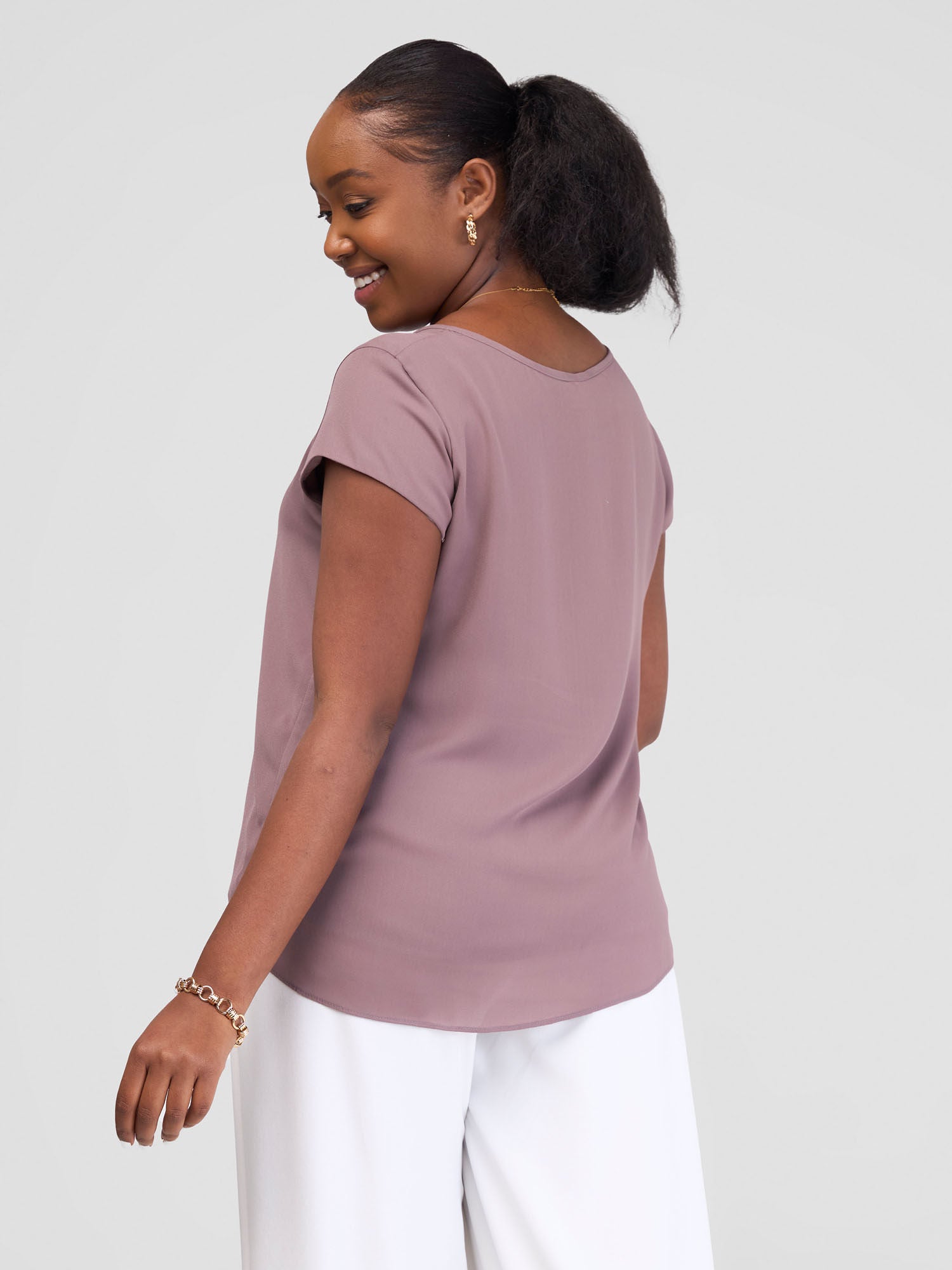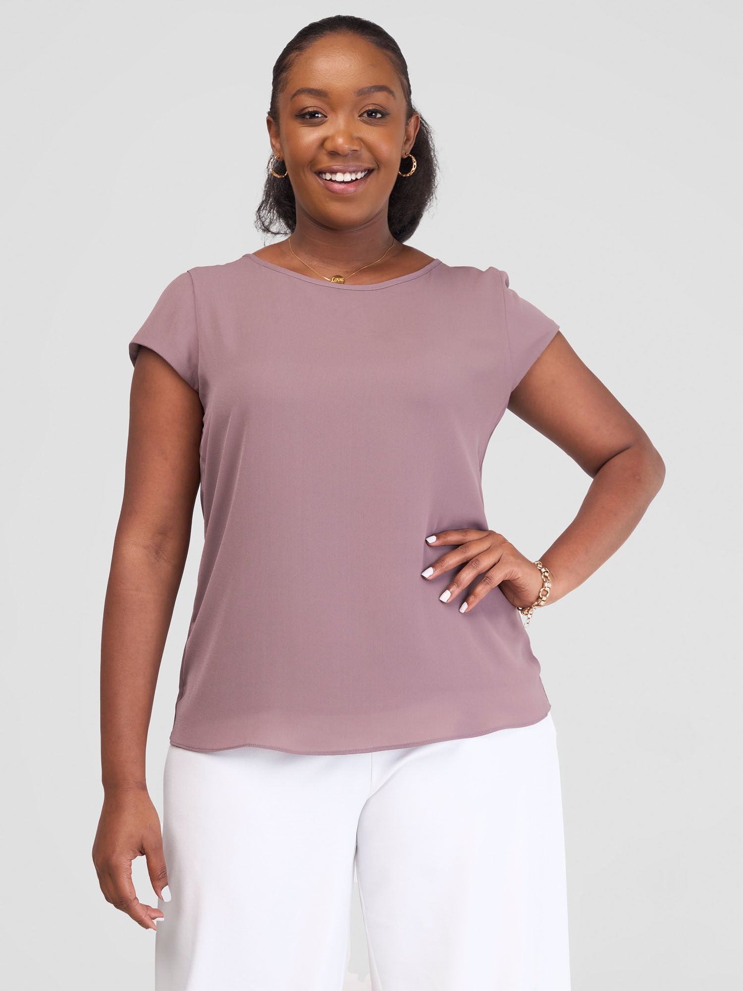 Vivo Basic Chiffon Cap Sleeve Top (Double Layered) - Dark Berry