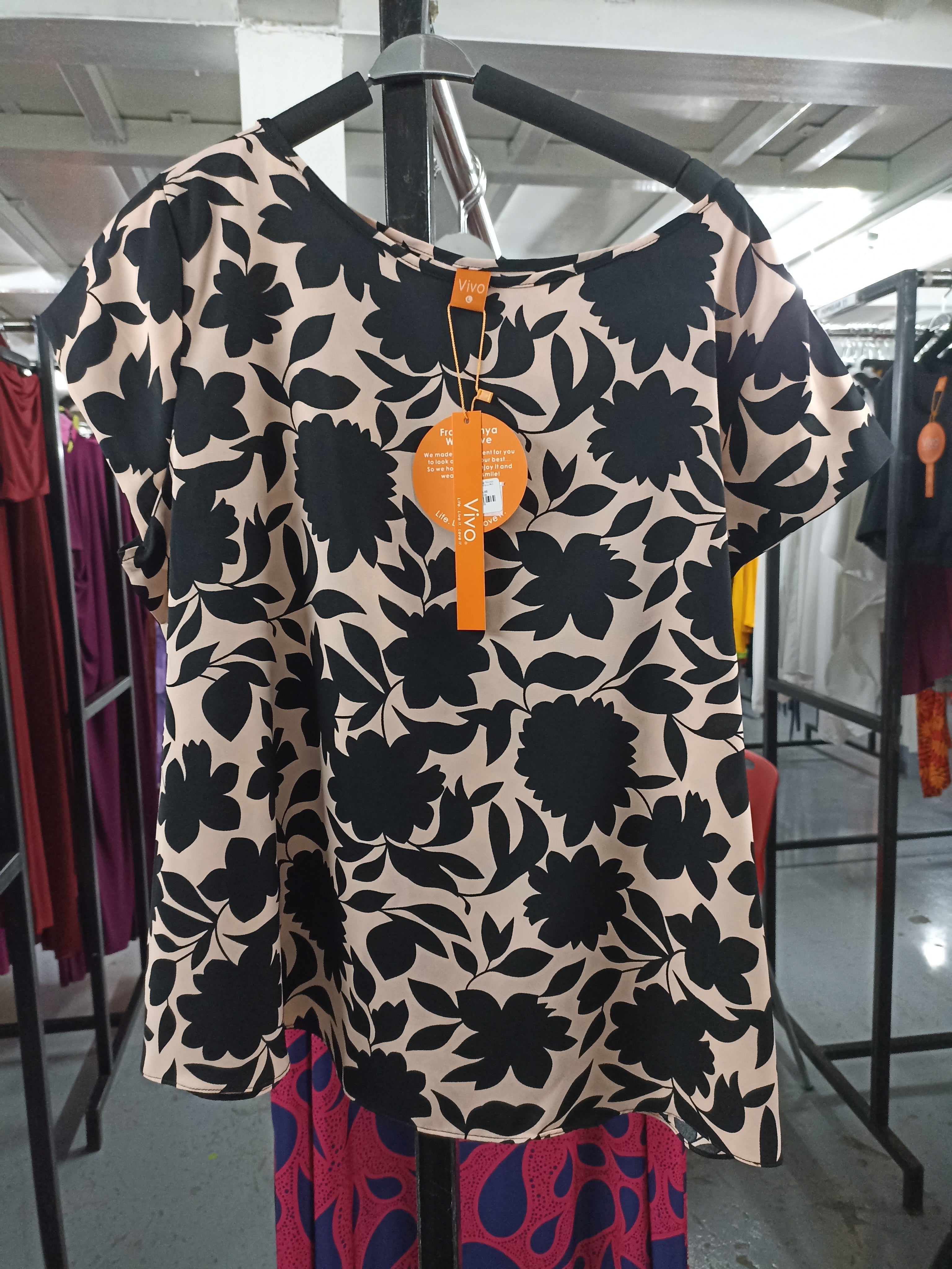 Vivo Basic Crepe Cap Sleeved Top - Peach / Black Floral Print
