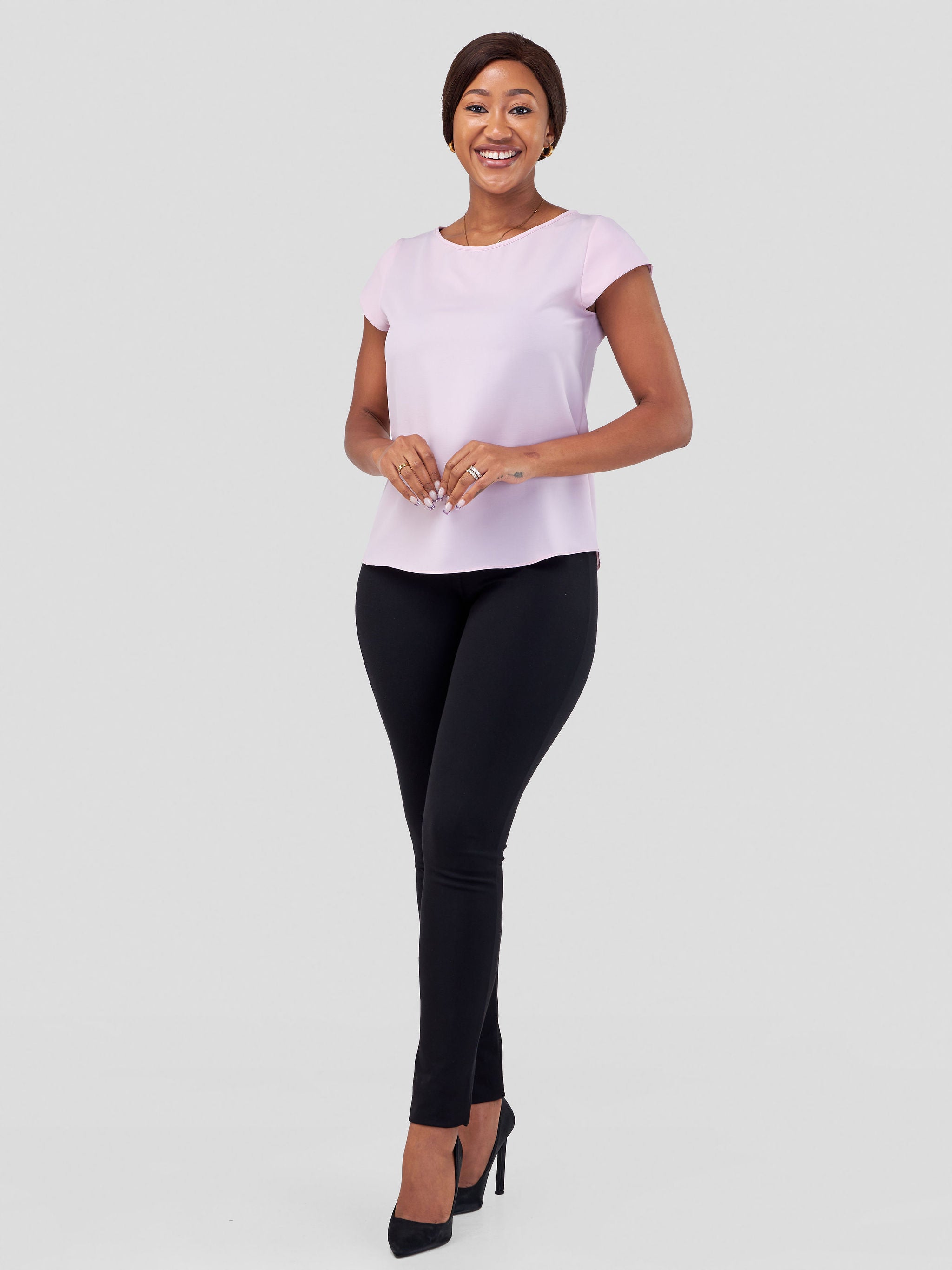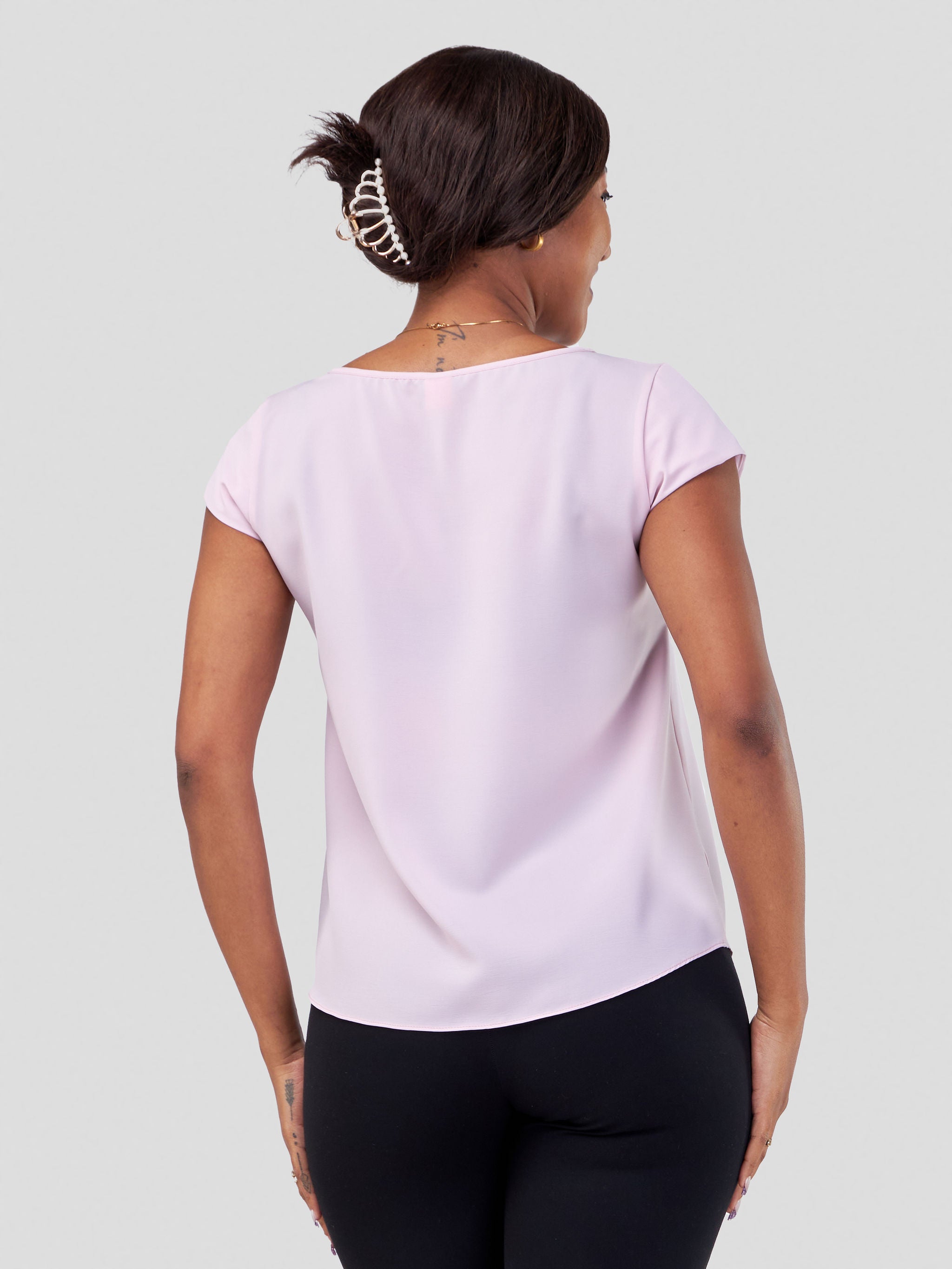 Vivo Basic Crepe Cap Sleeved Top - Pink