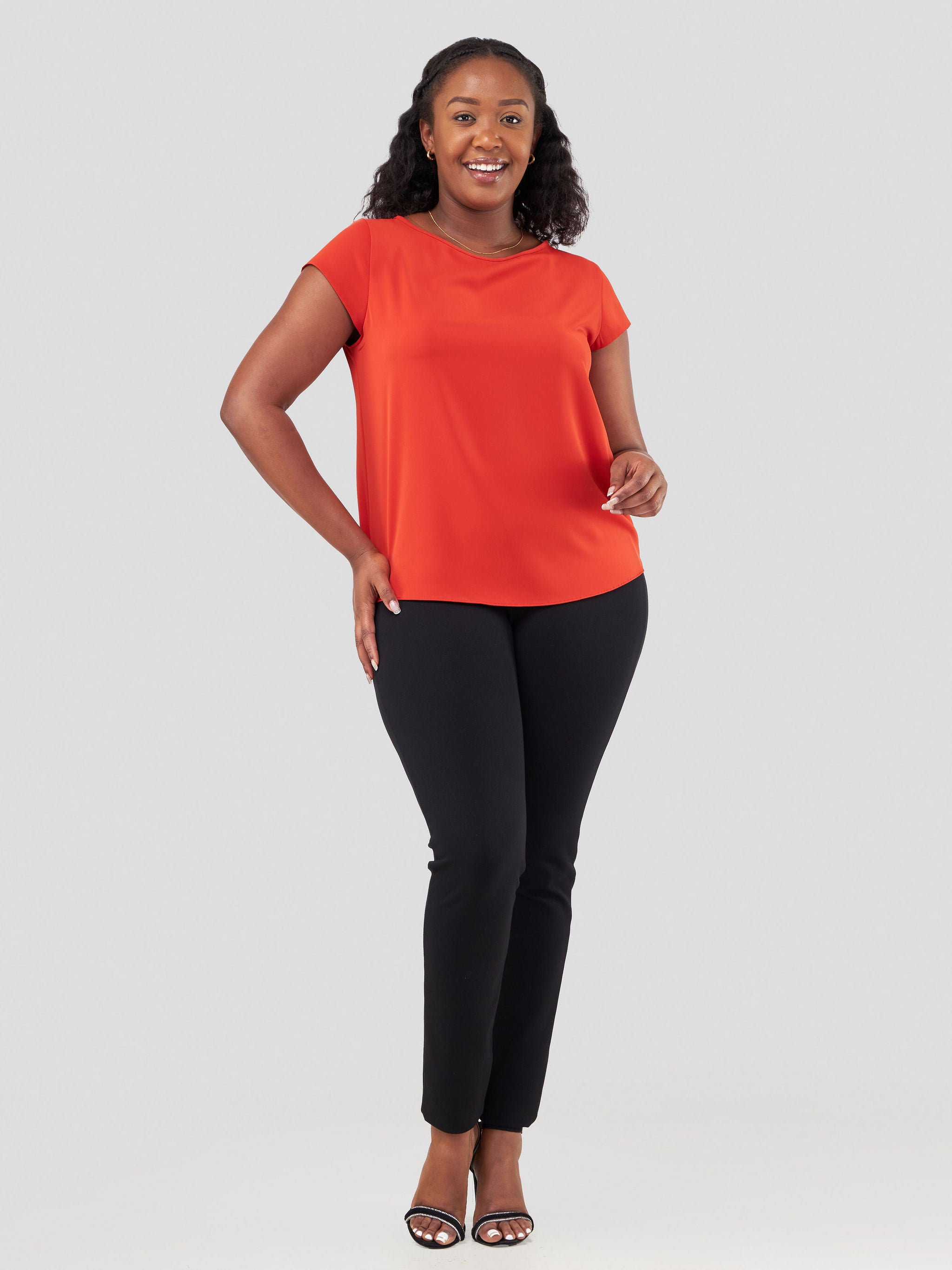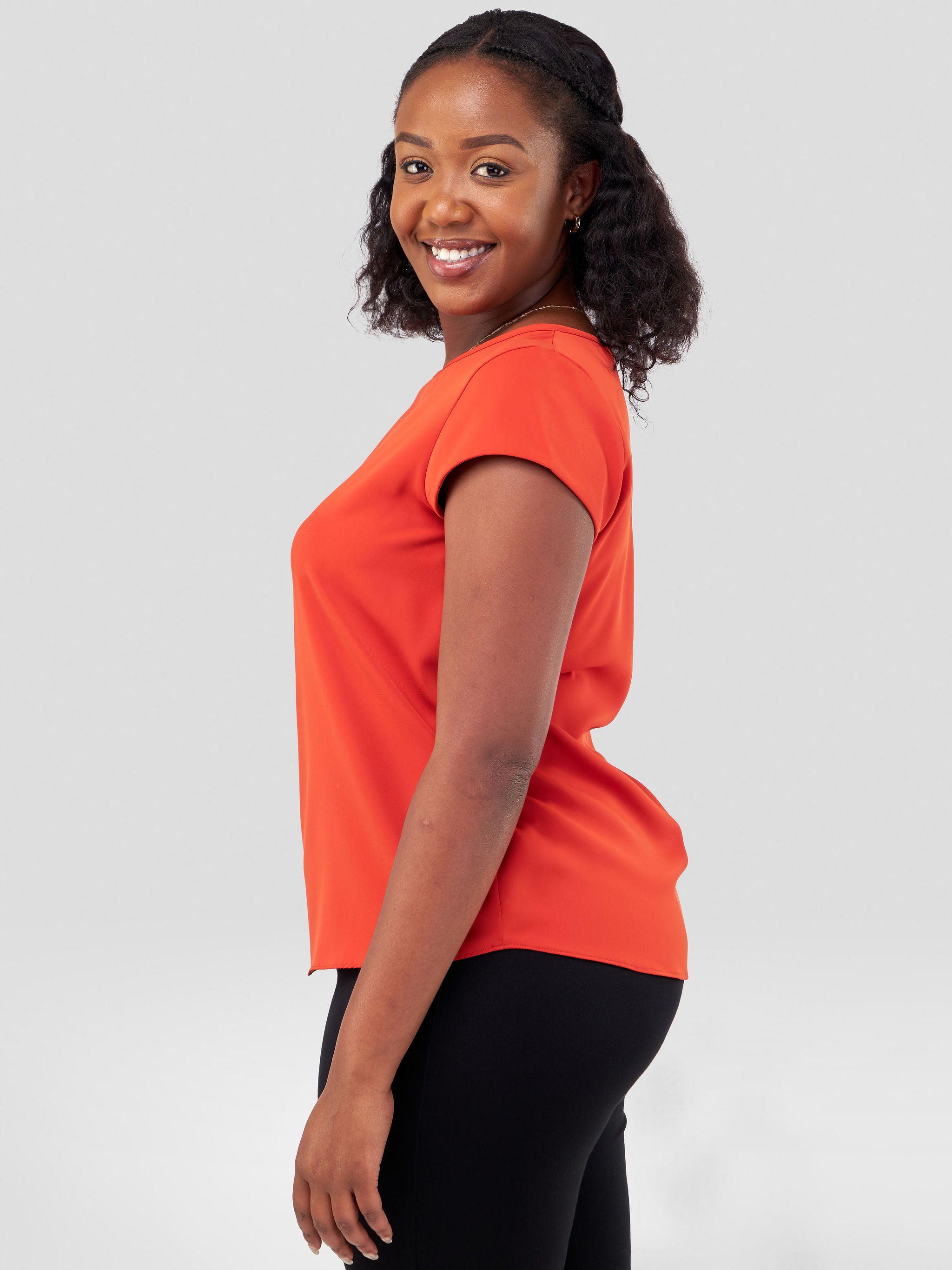 Vivo Basic Crepe Cap Sleeved Top - Orange