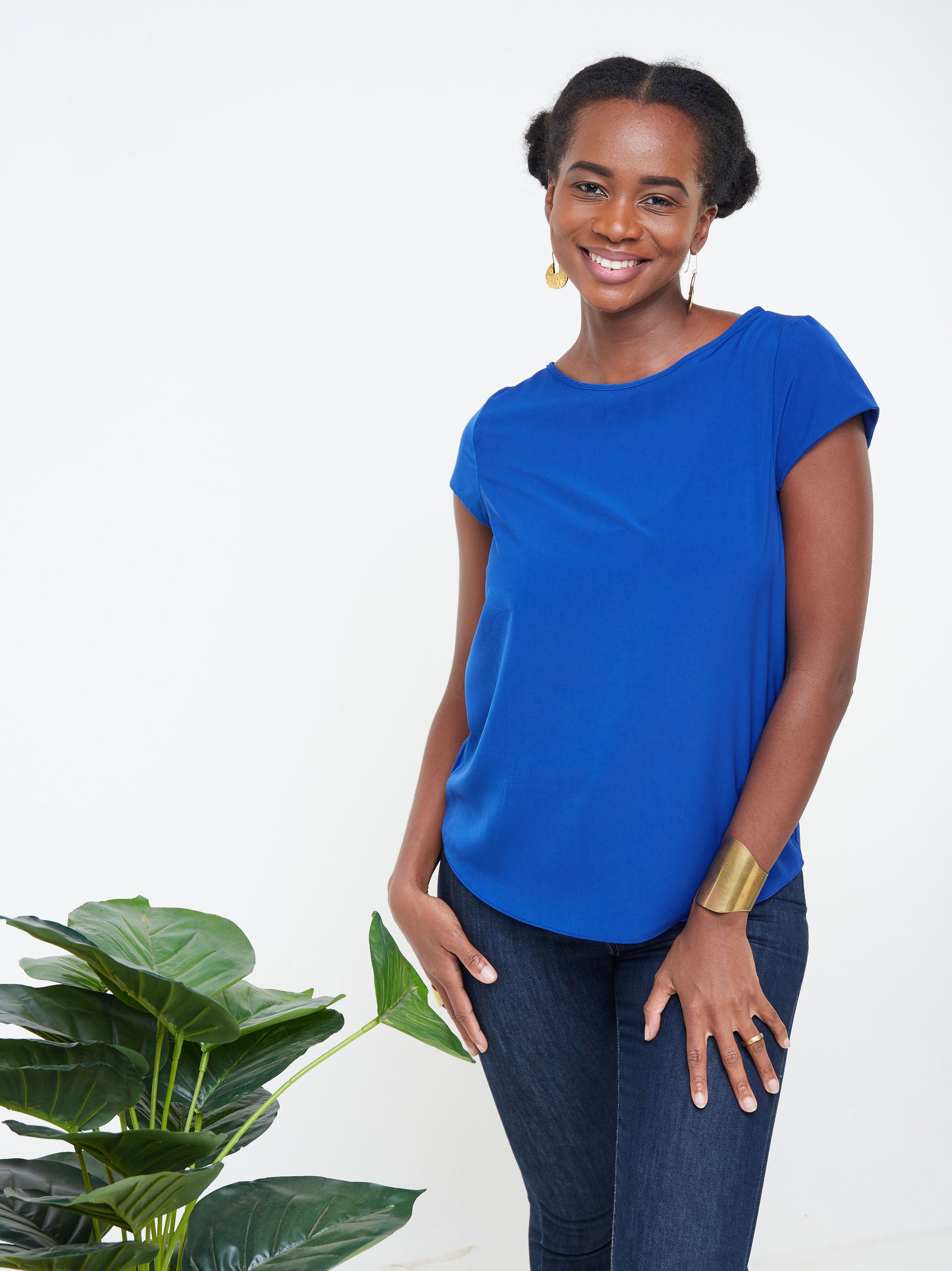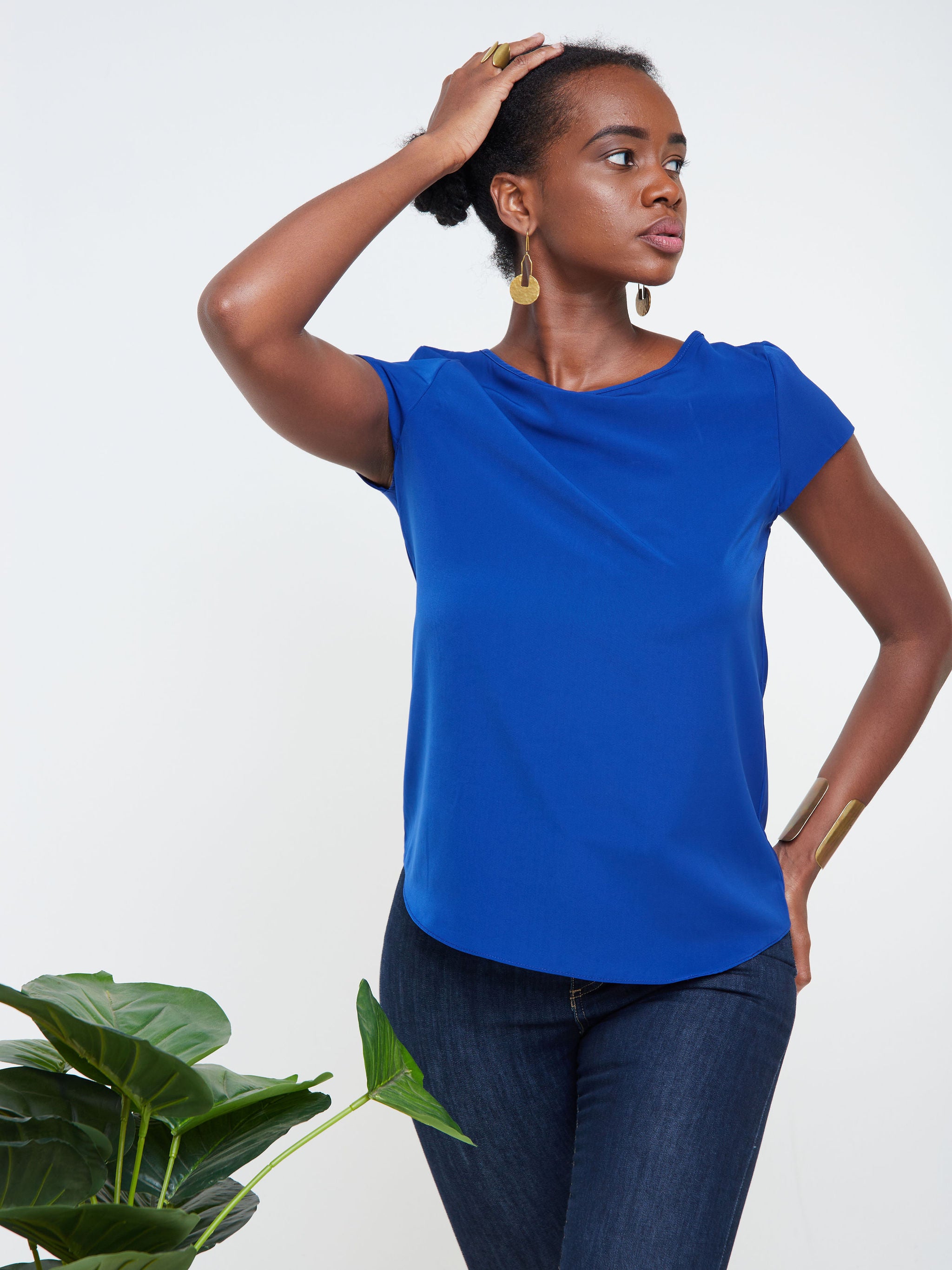 Vivo Basic Crepe Cap Sleeved Top - Royal Blue