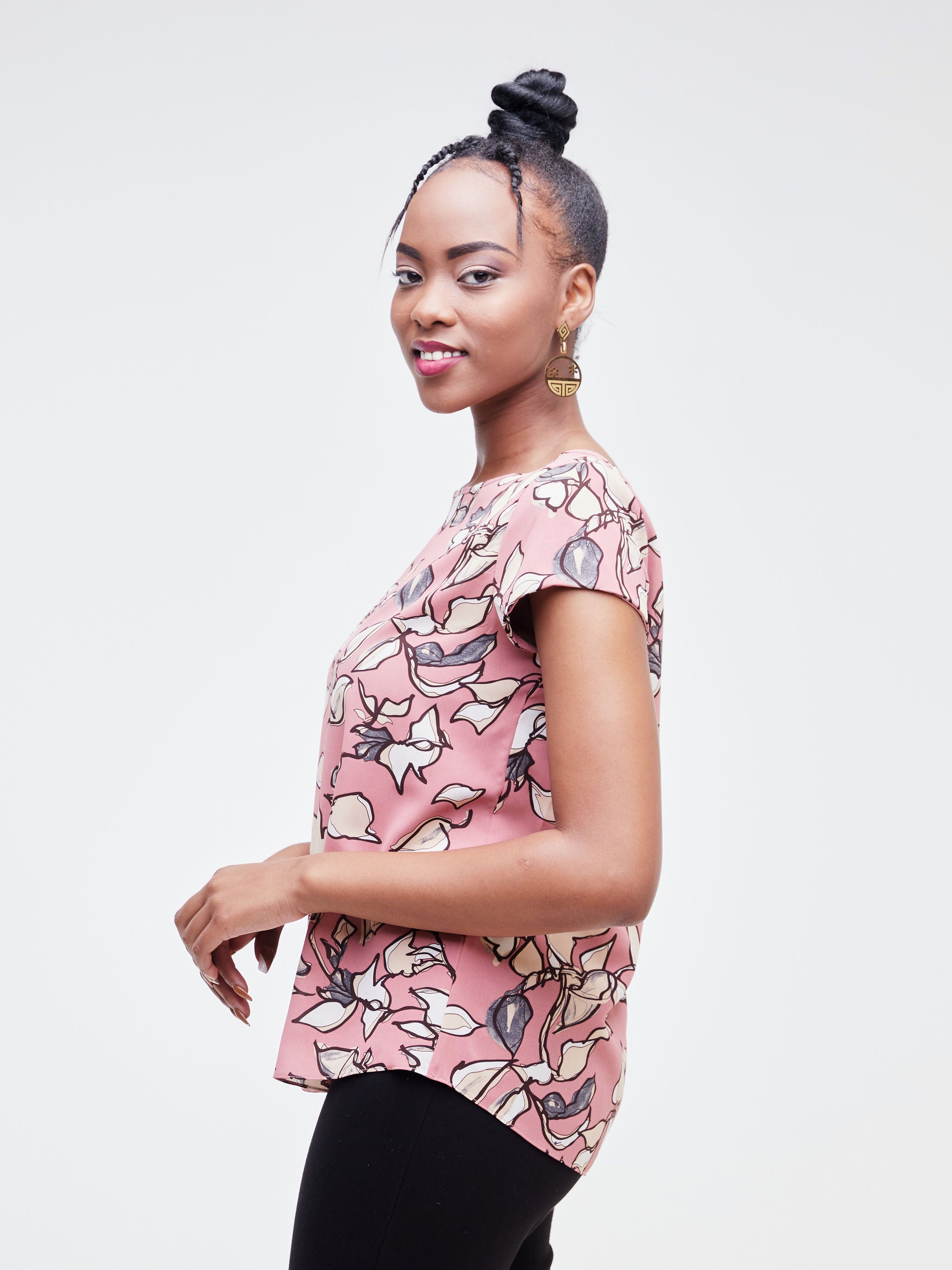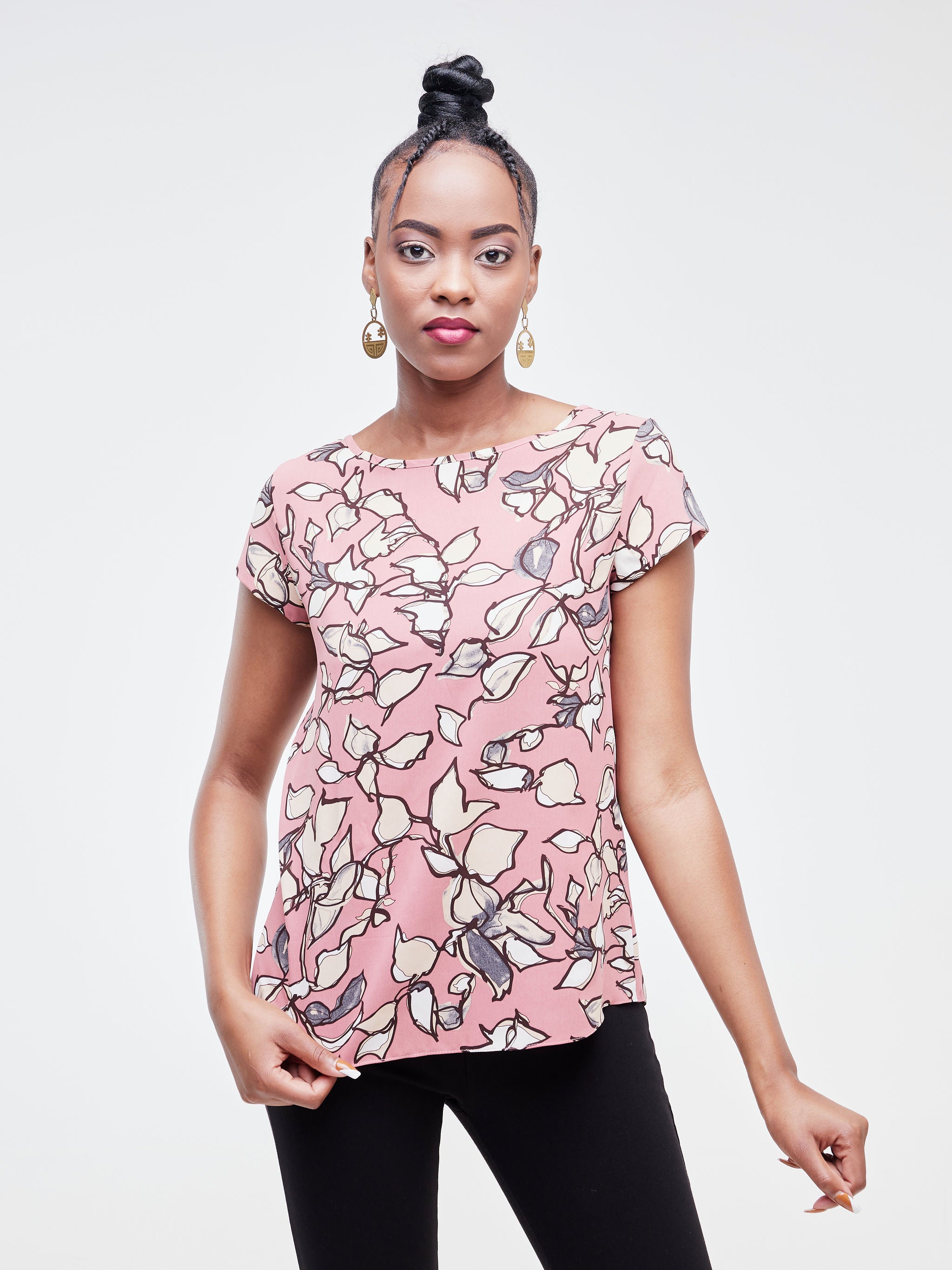 Vivo Basic Crepe Cap Sleeved Top - Pink / Taupe Floral Print