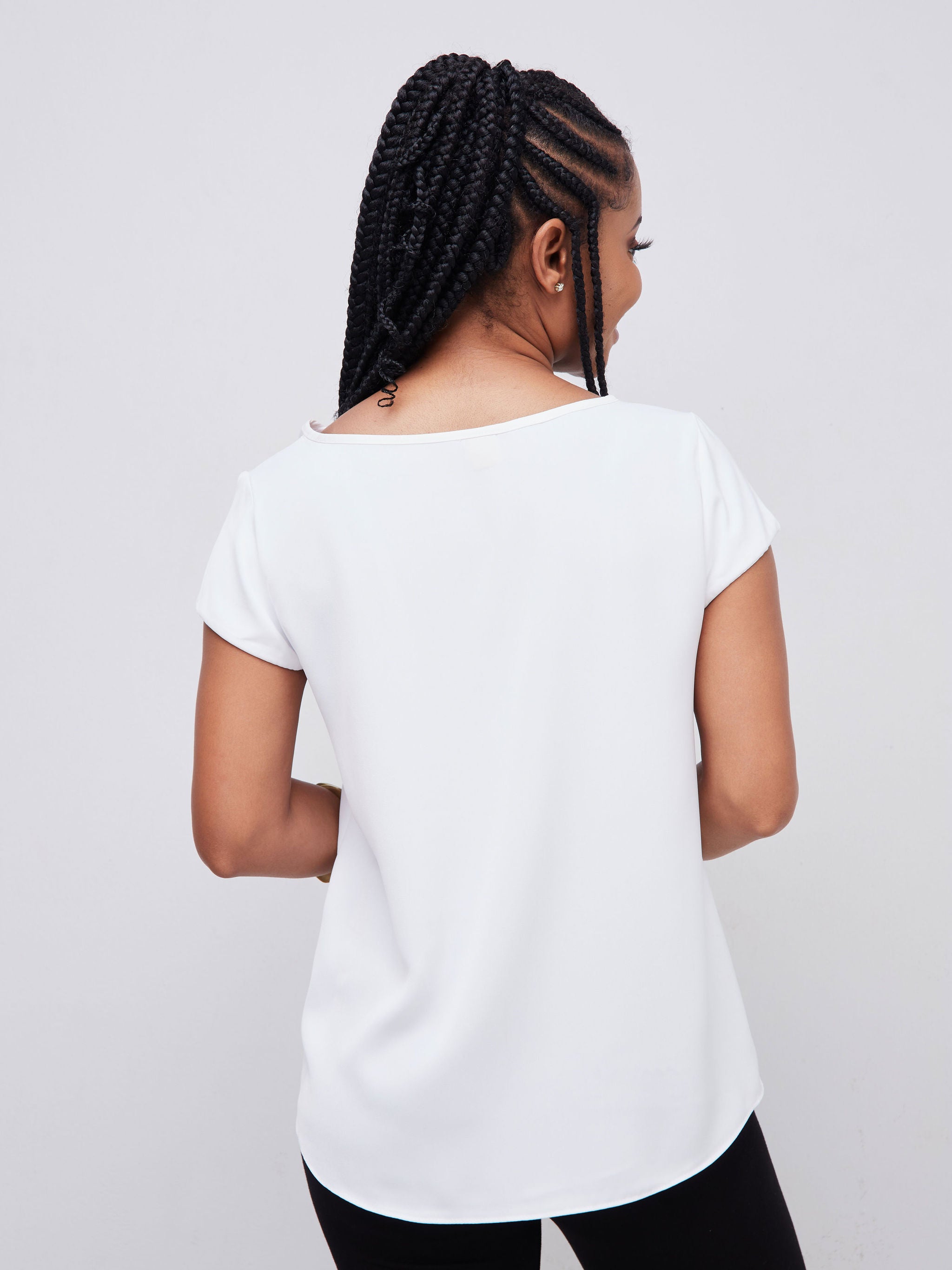 Vivo Basic Crepe Cap Sleeved Top - White / Pink Abasi Print