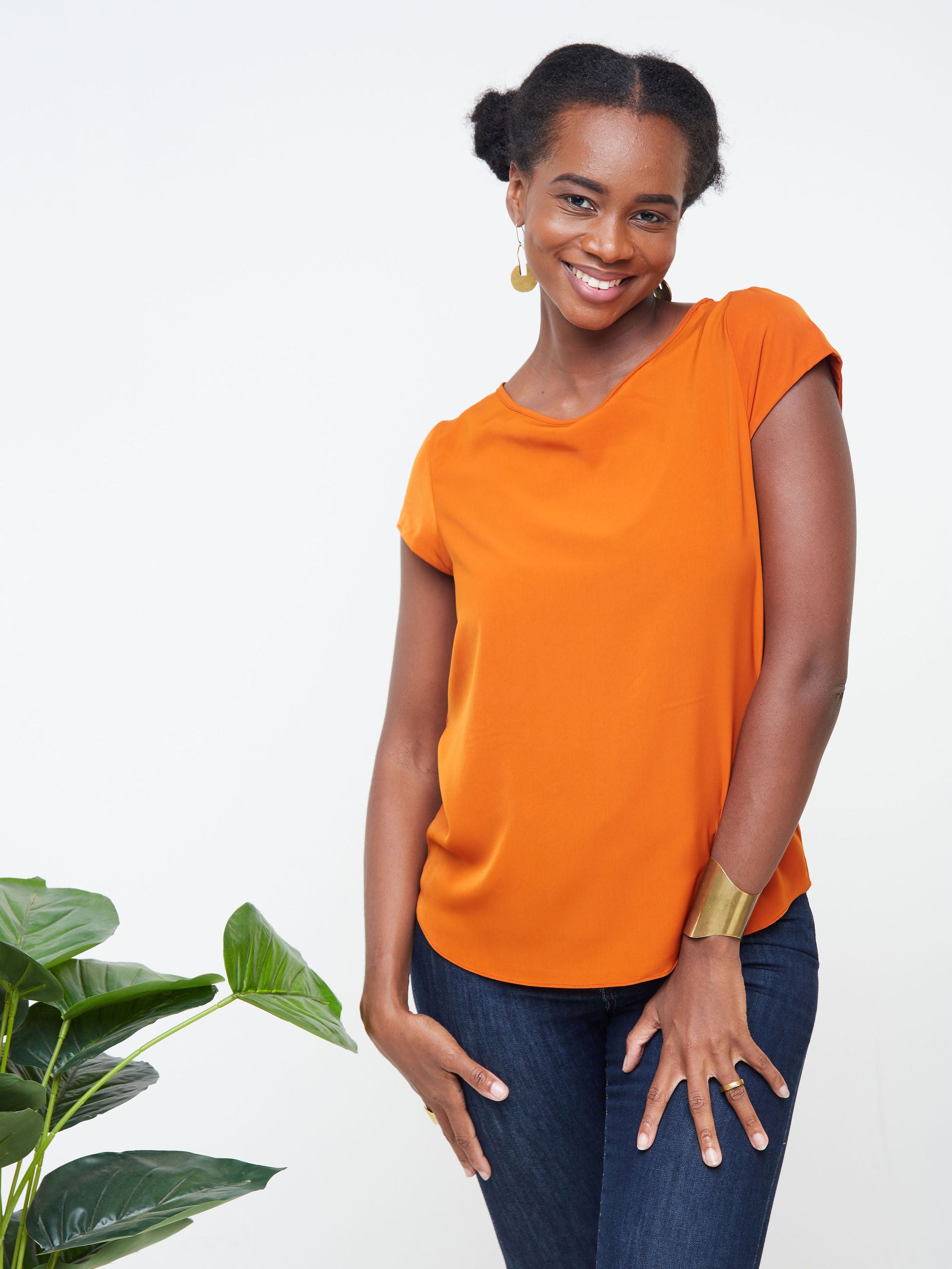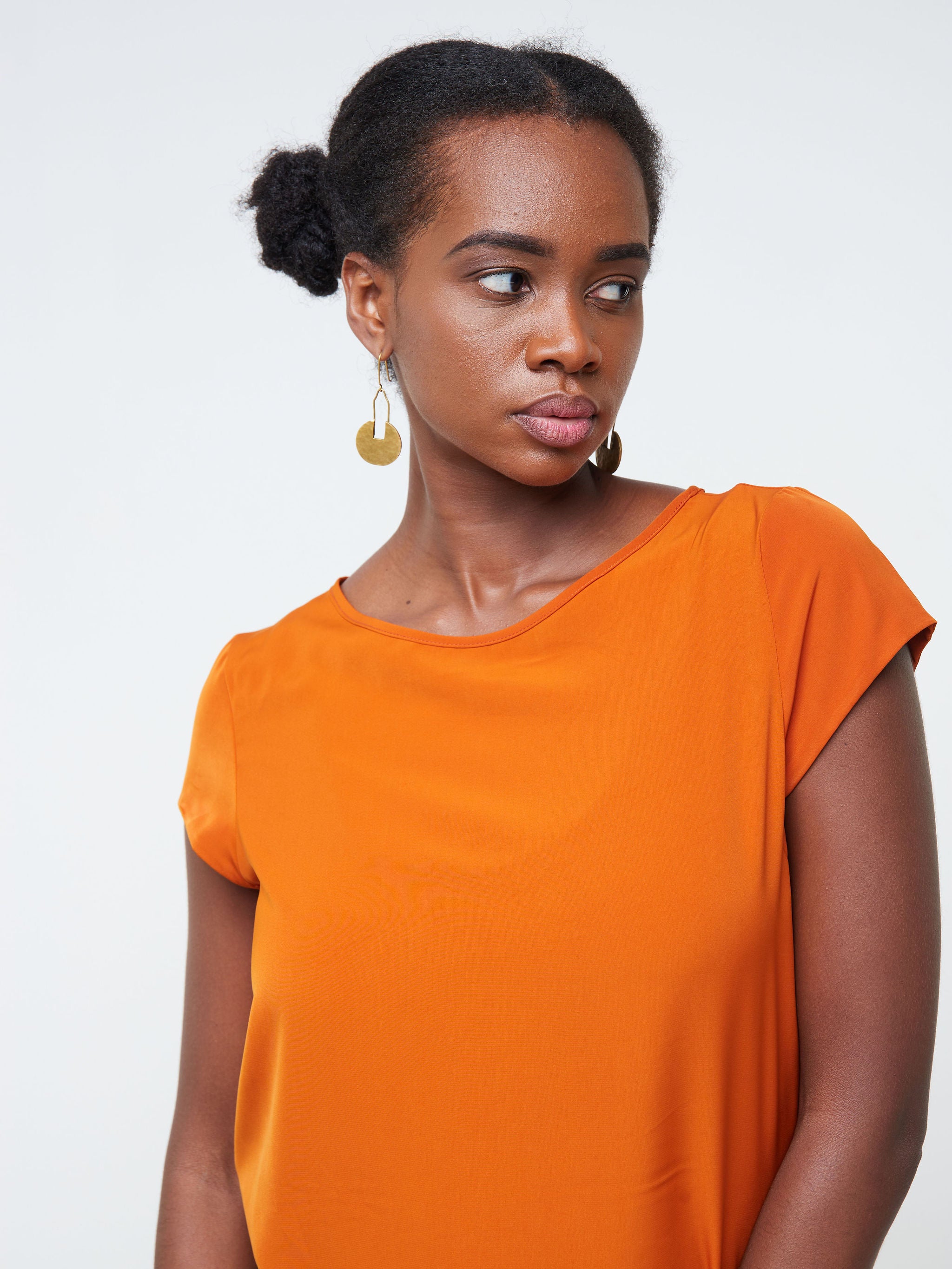 Vivo Basic Crepe Cap Sleeved Top - Rust
