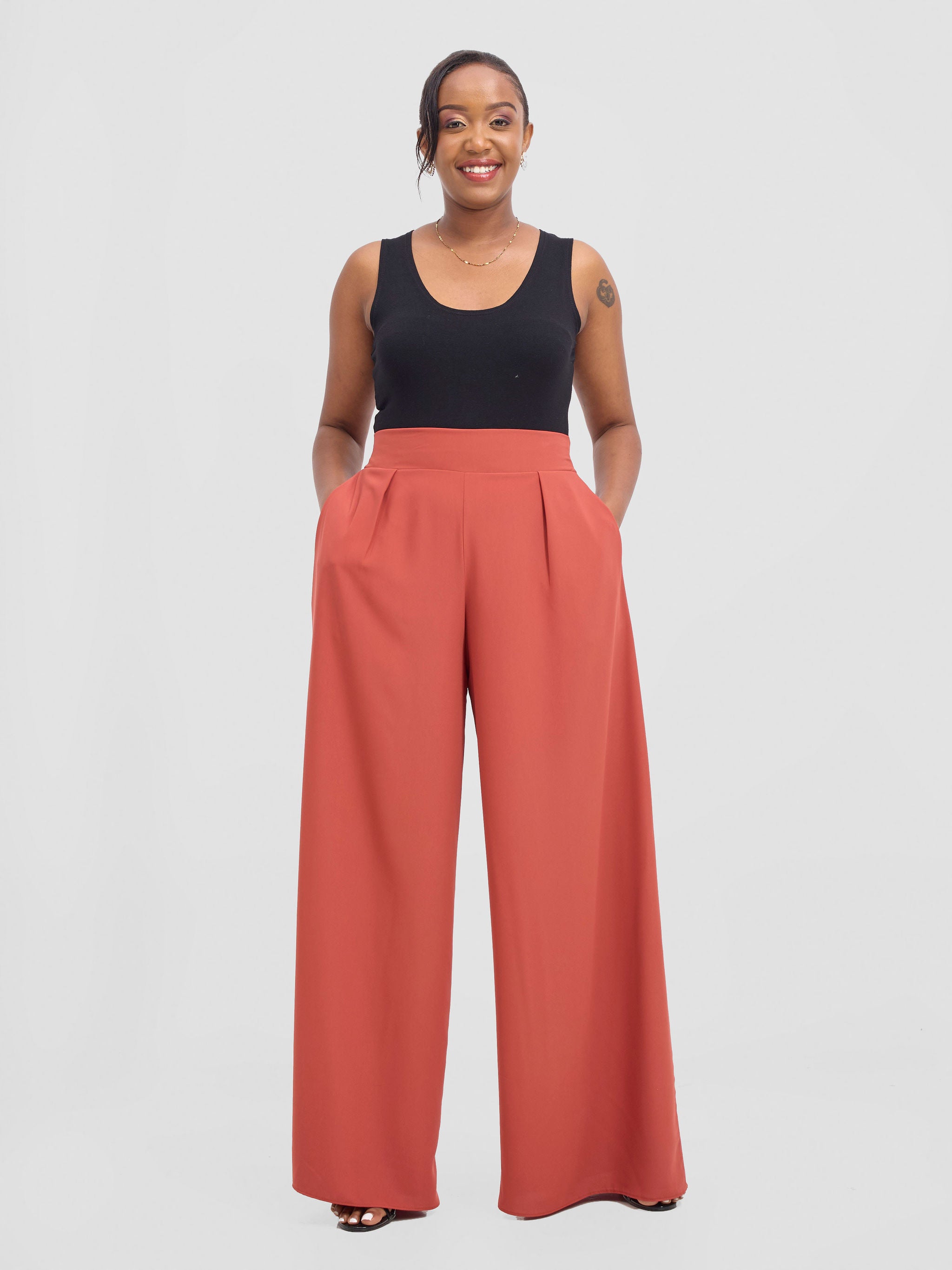 Vivo Basic Crepe Pants - Rust