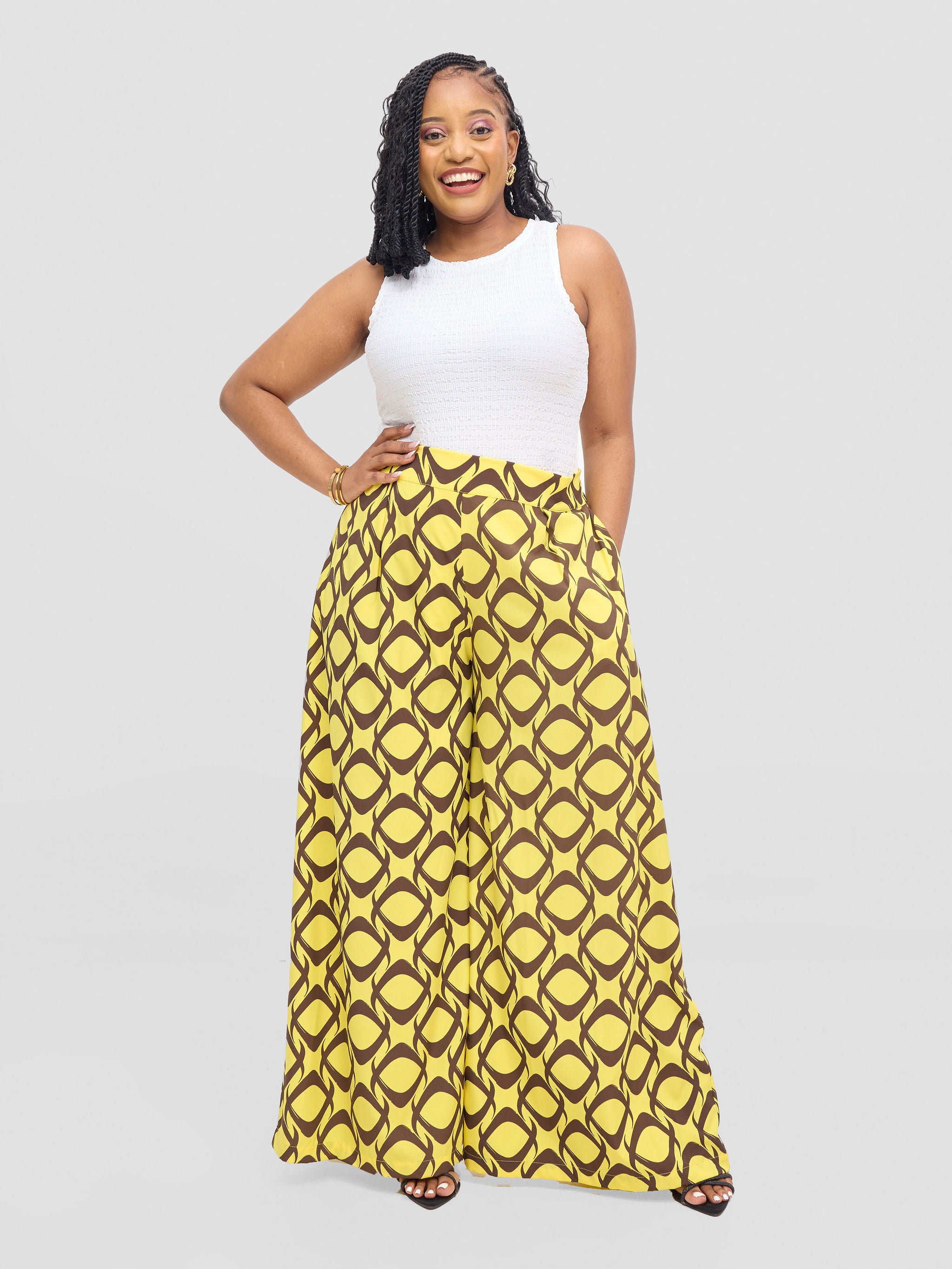 Vivo Basic Crepe Pants - Yellow / Chocolate Tiki Print
