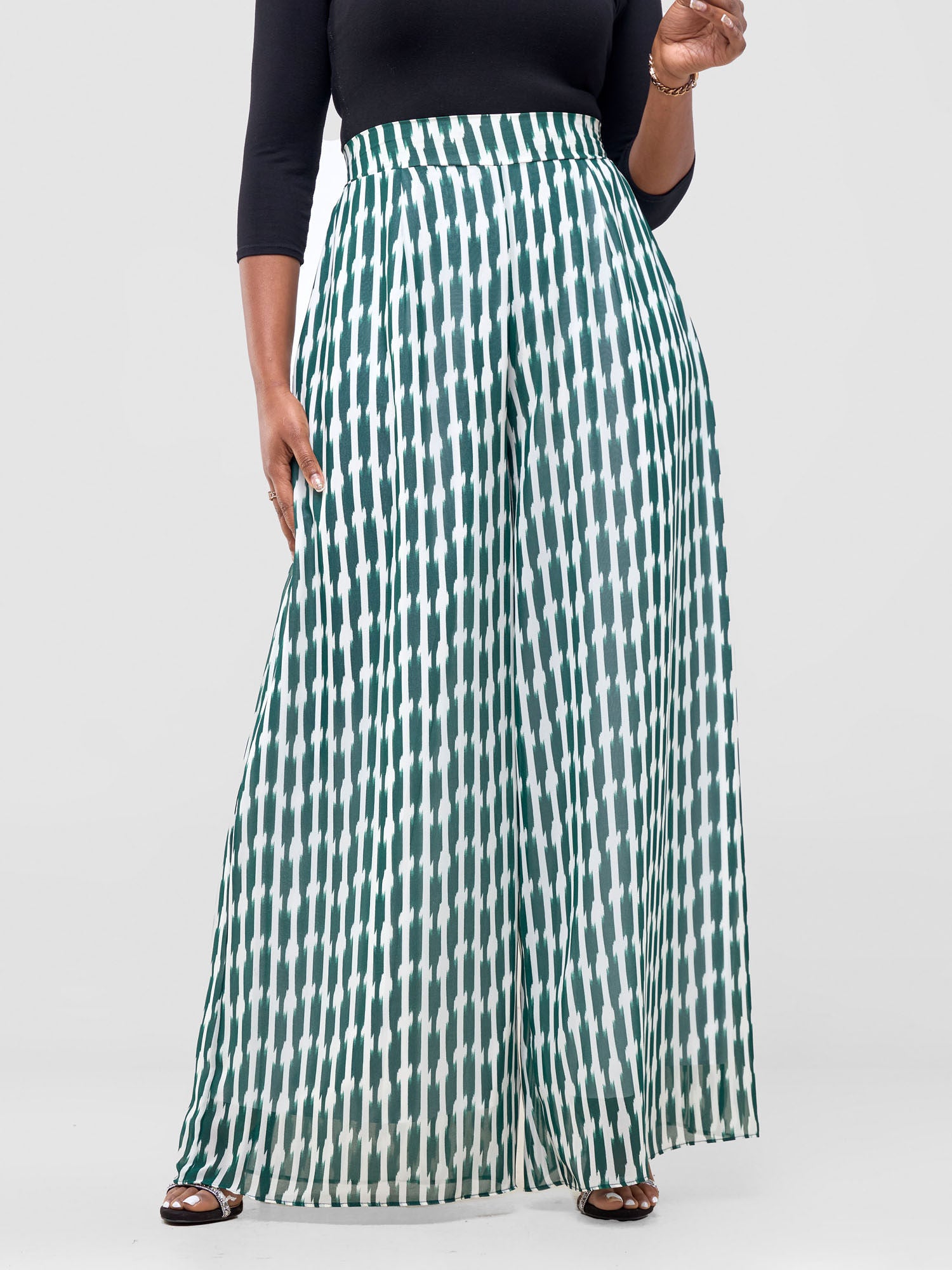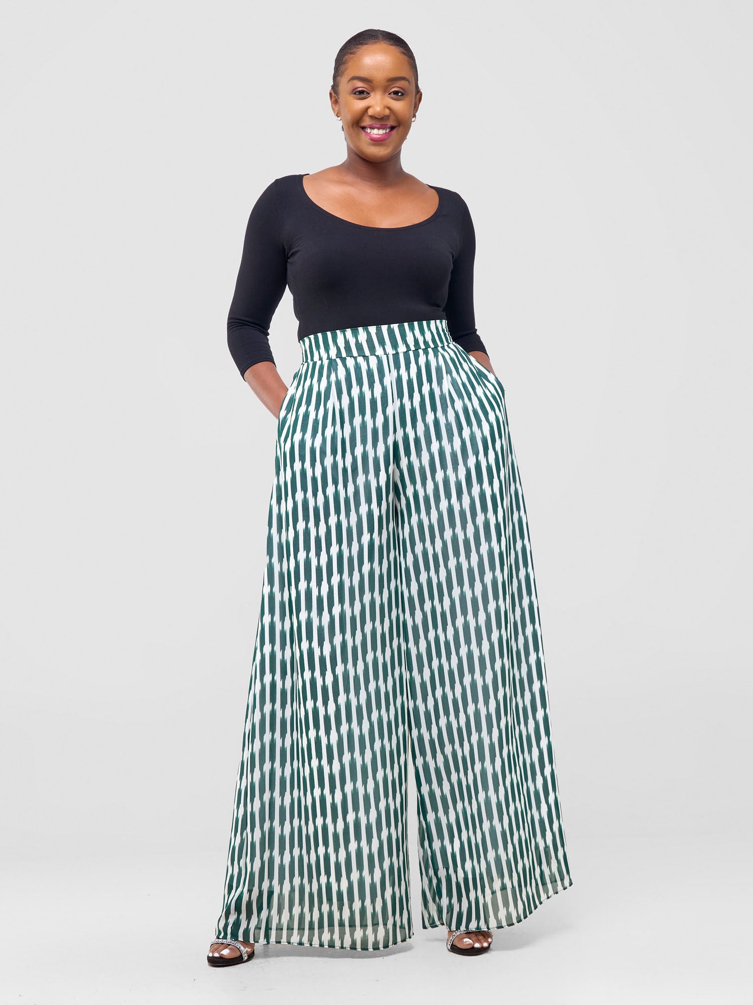 Vivo Basic Crepe Pants With Lining - Green / White Print