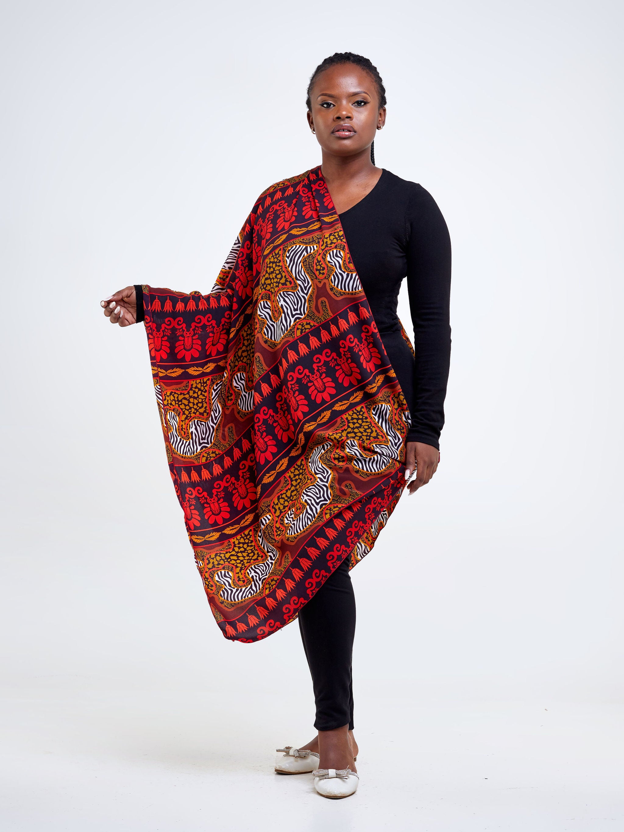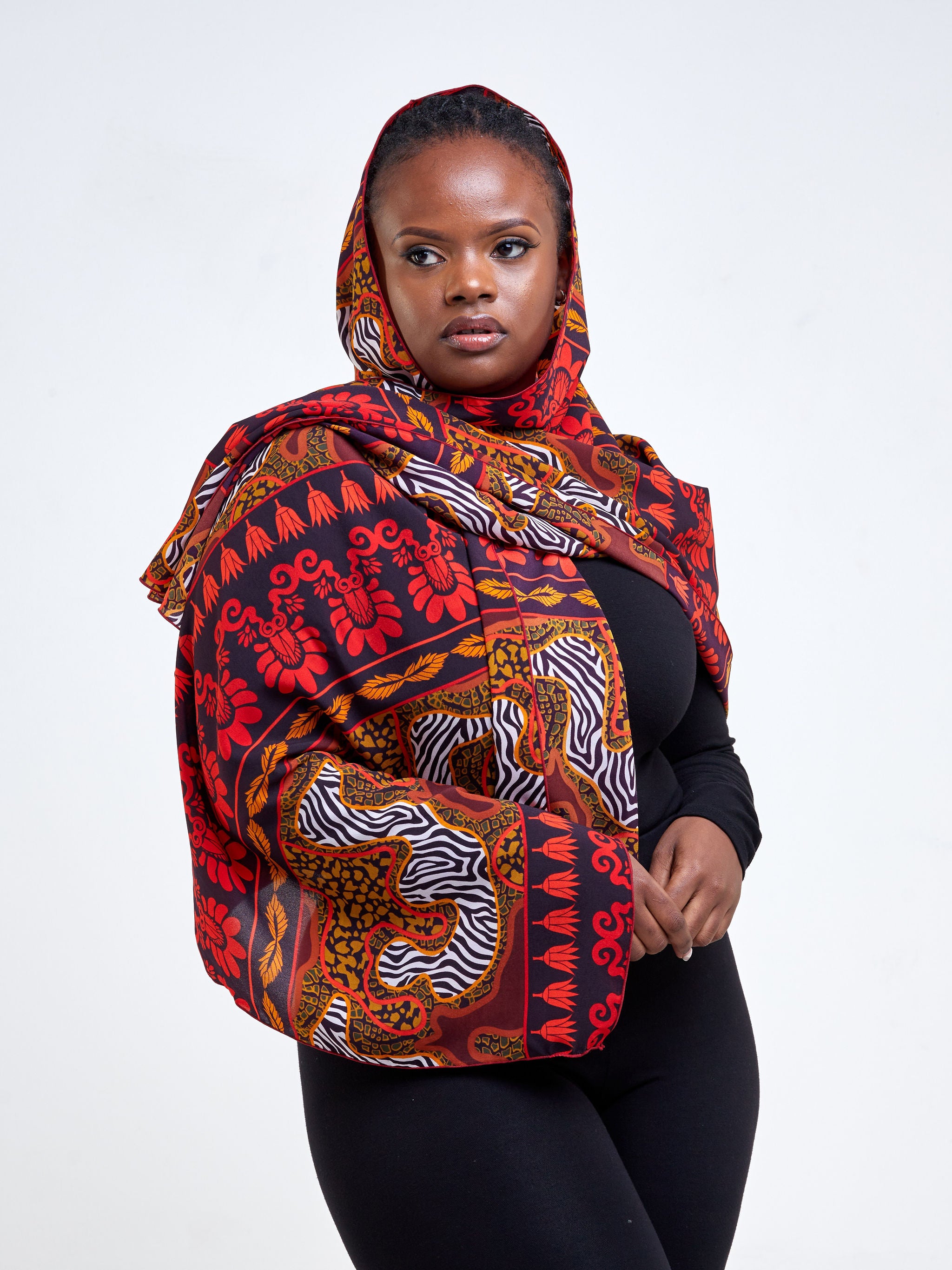Vivo Basic Crepe Scarf - Black / Red Abstract Print