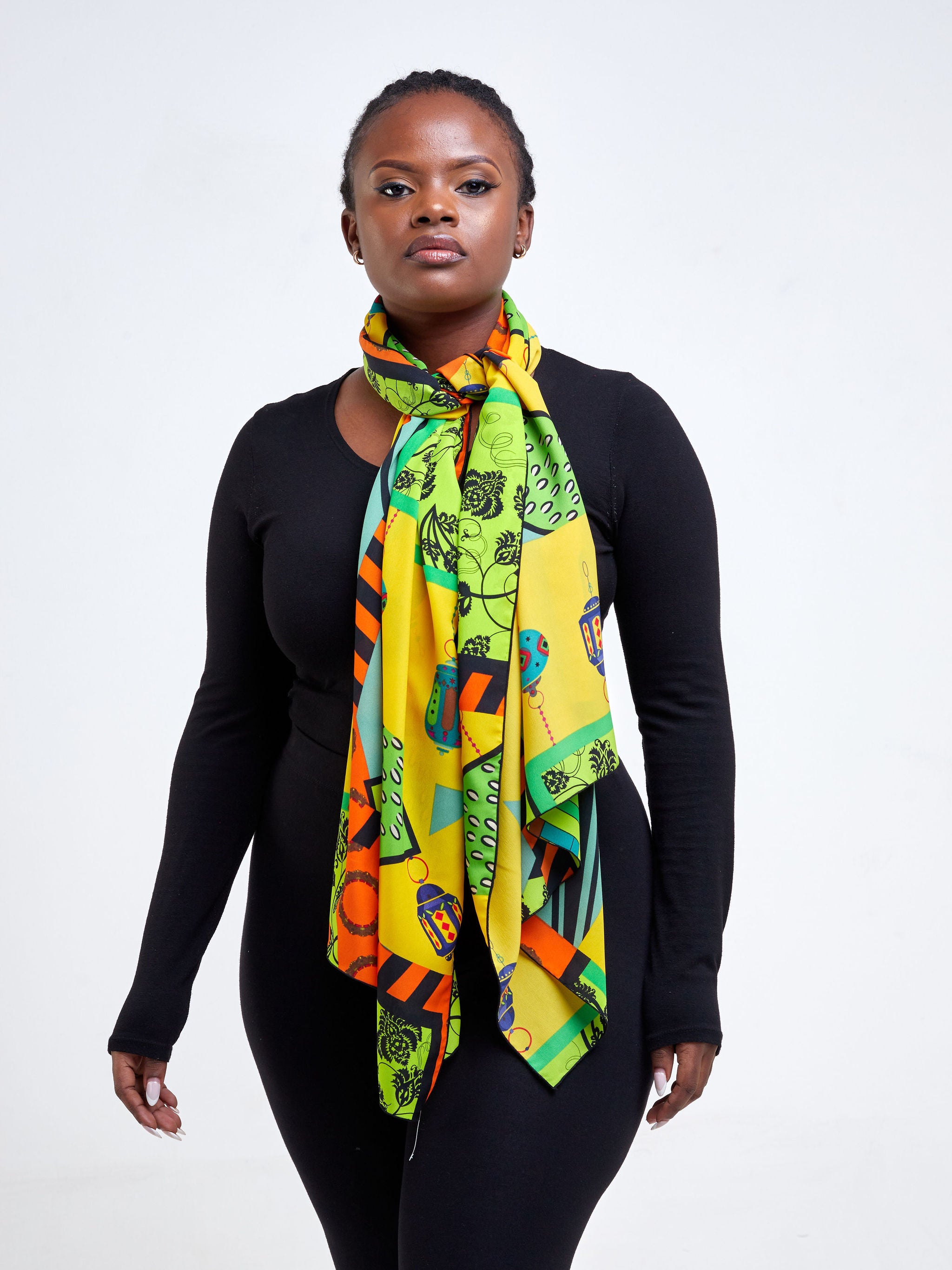 Vivo Basic Crepe Scarf - Black / Green Abstract Print