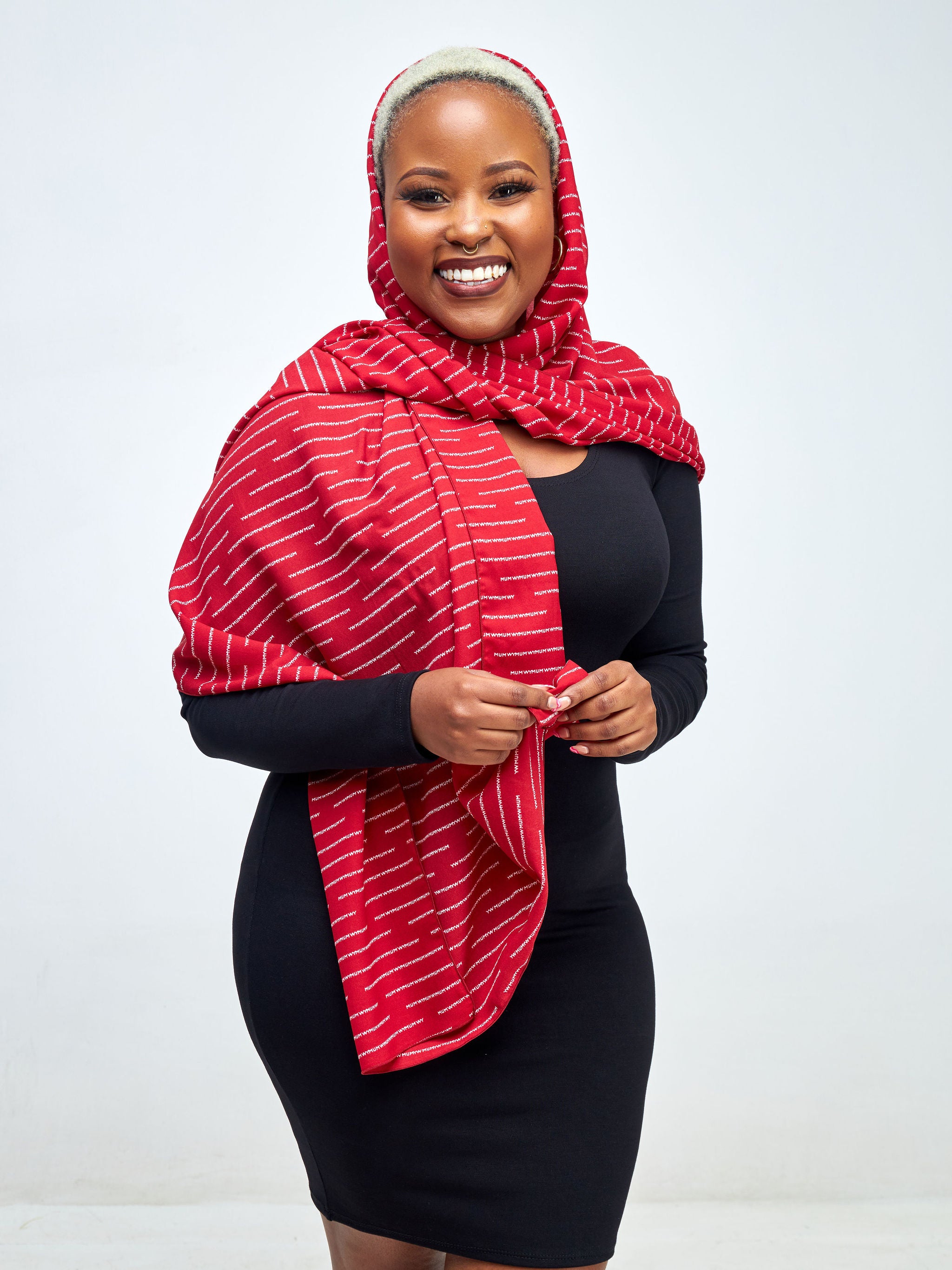 Vivo Basic Crepe Scarf - Red / White Linear Abstract Print