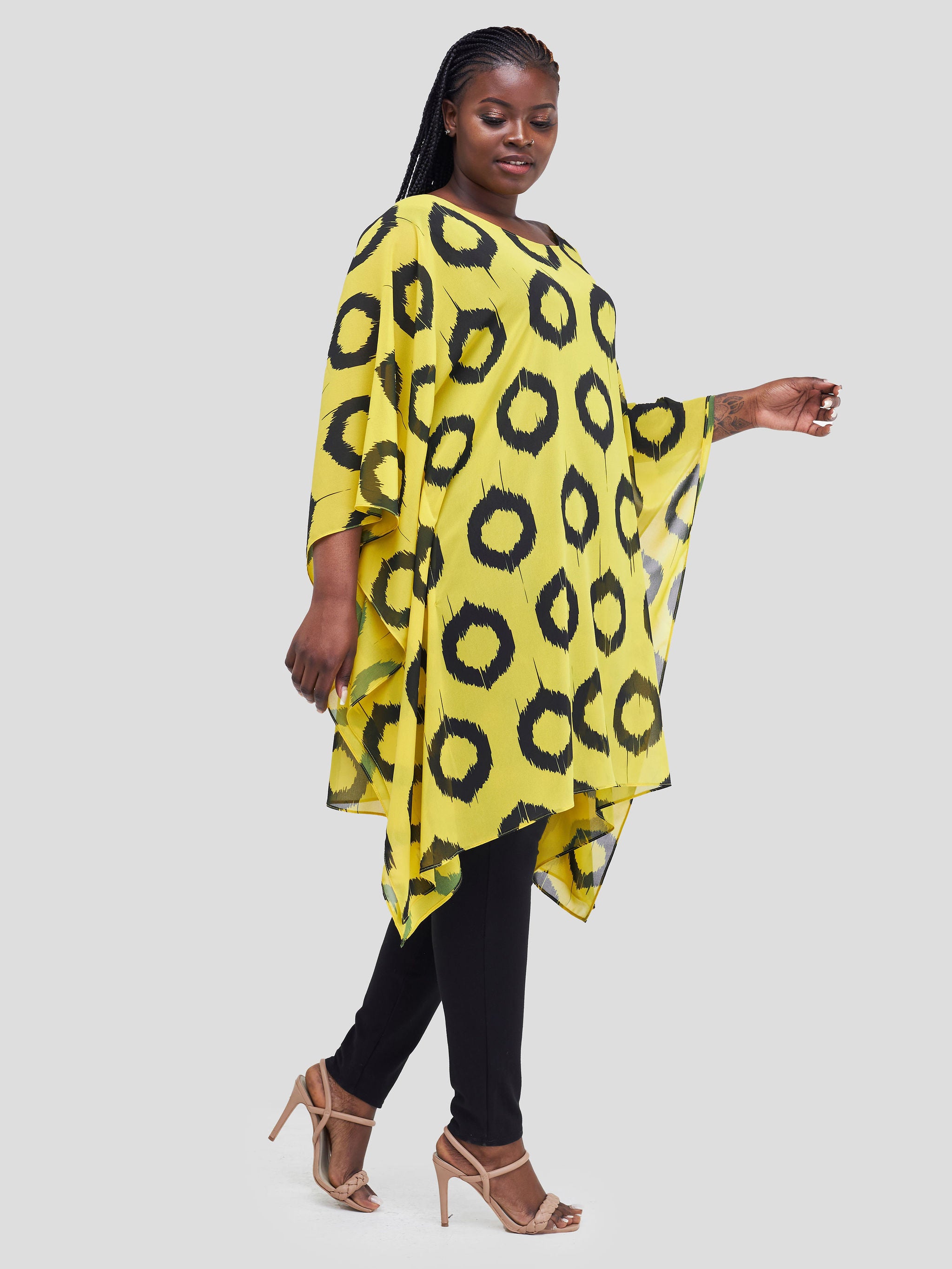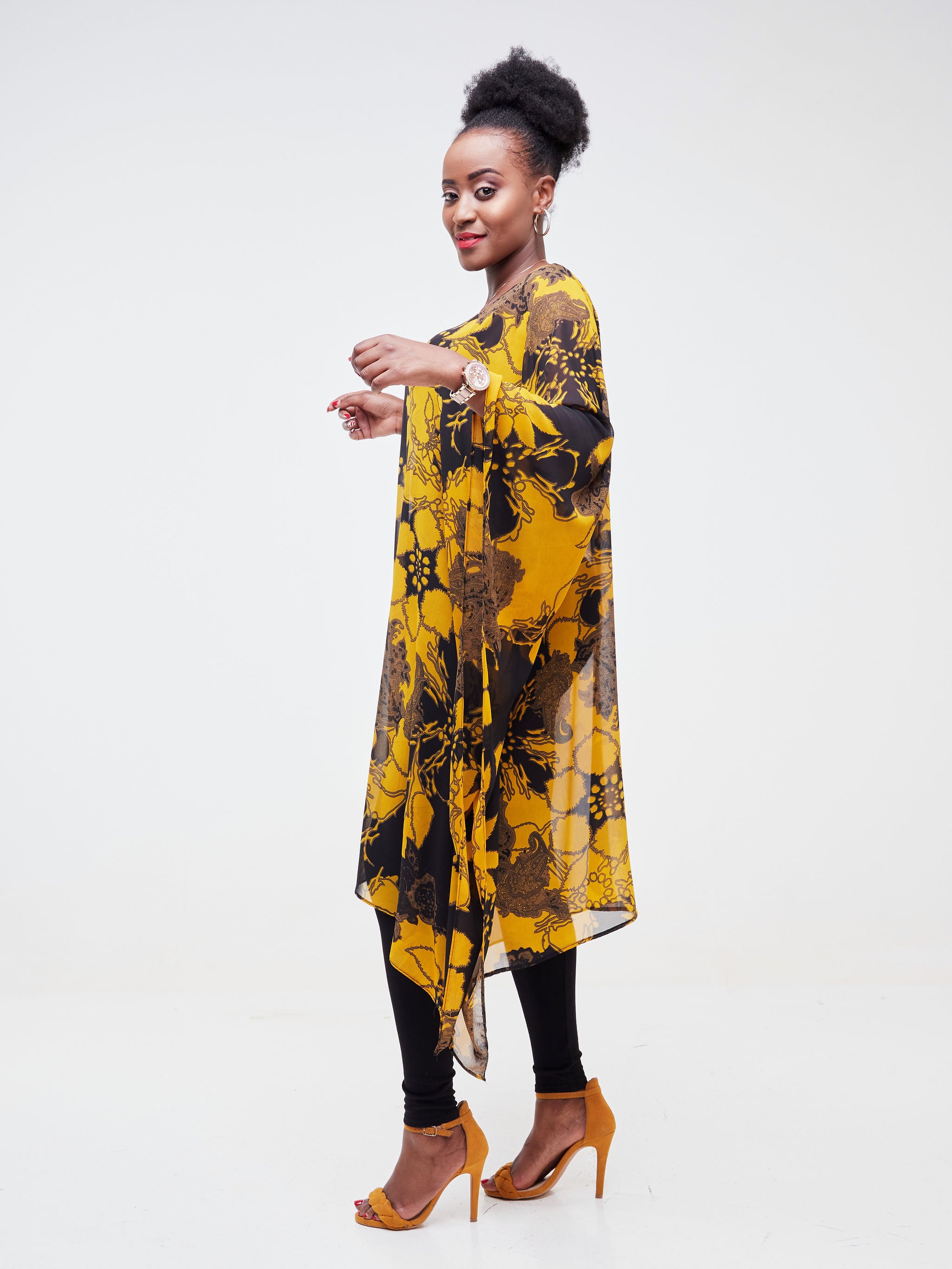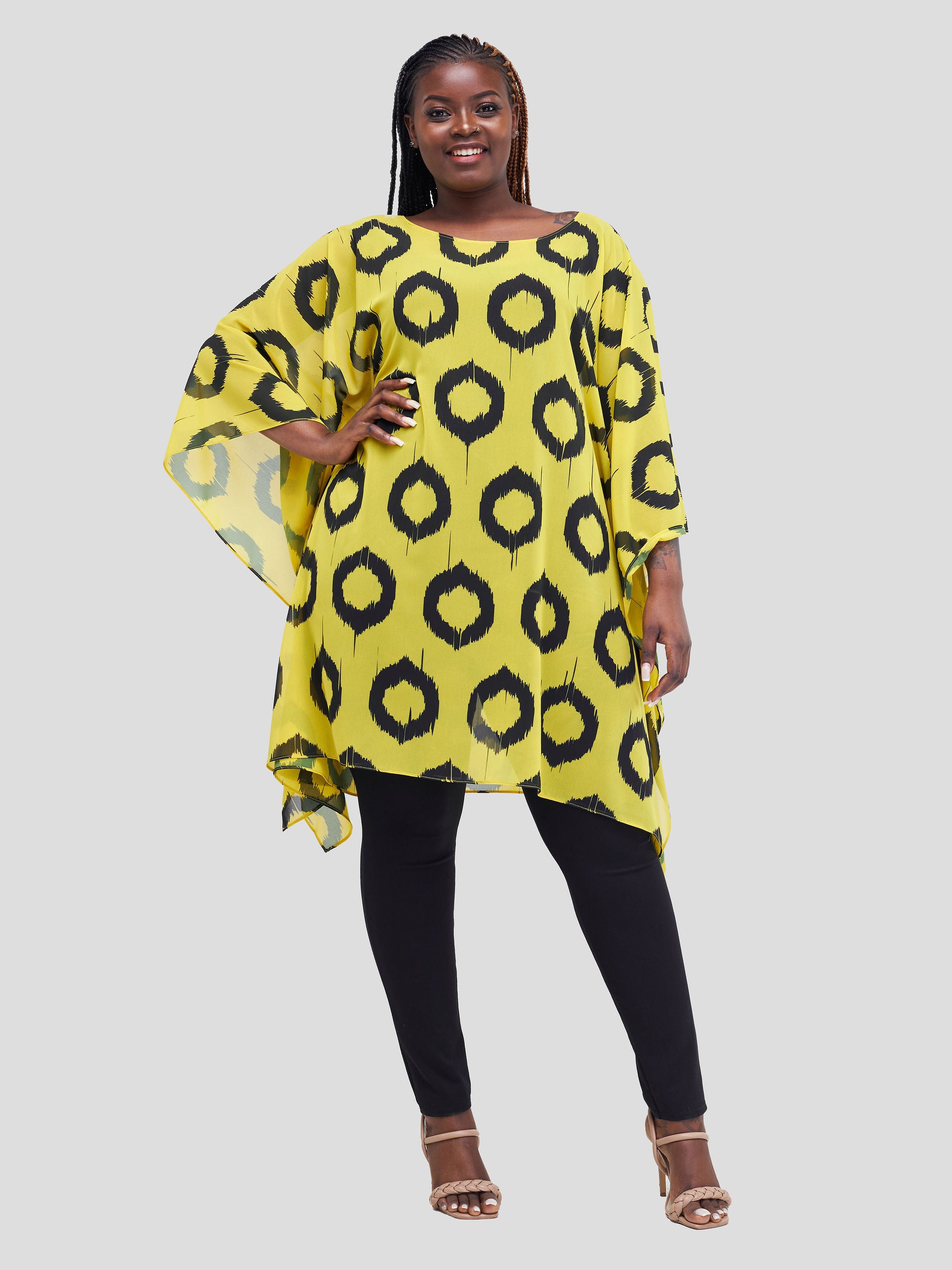 Vivo Basic Destiny Chiffon Top - Mustard / Black Circular Abstract Print