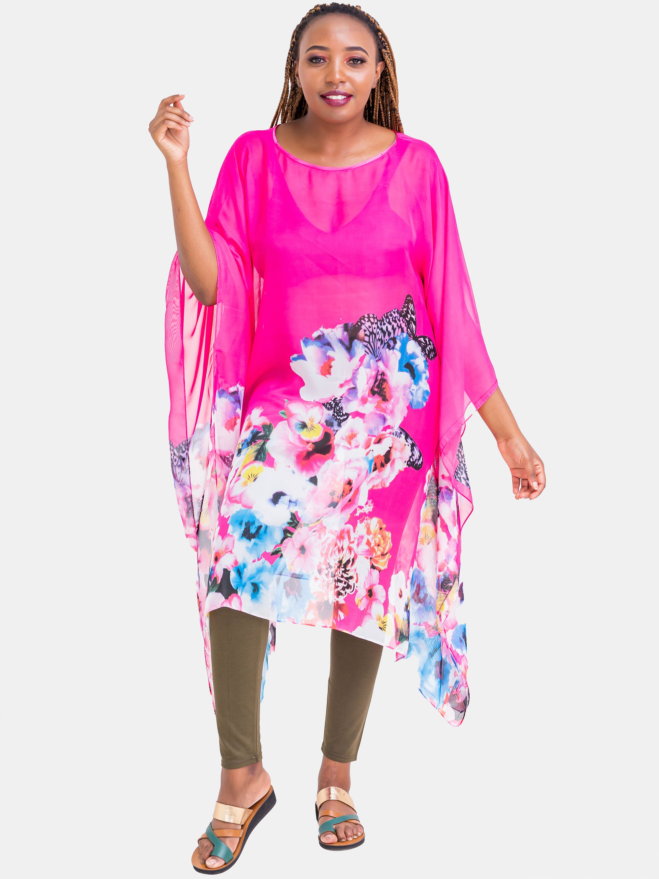 Vivo Basic Destiny Chiffon Top - Pink Print