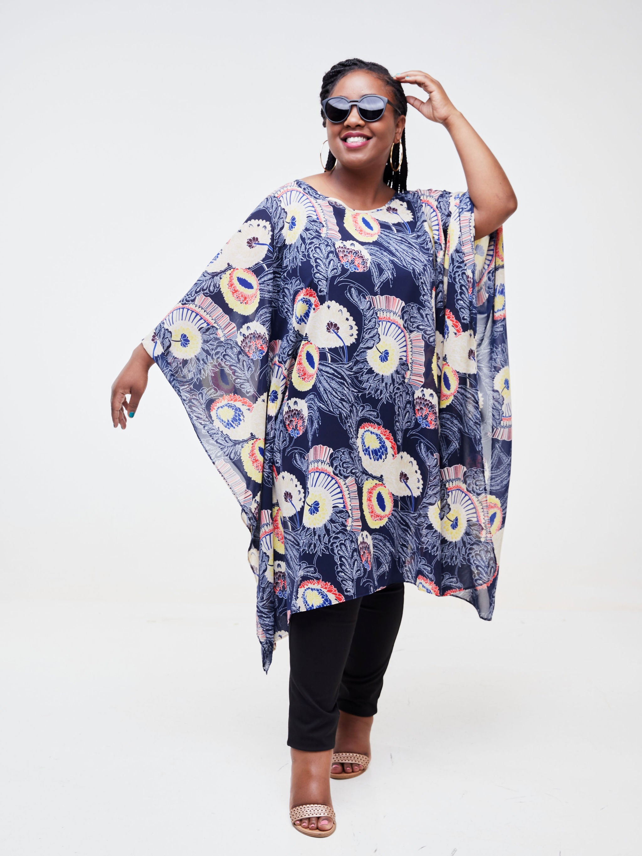 Vivo Basic Destiny Chiffon Top - Navy Skin Print