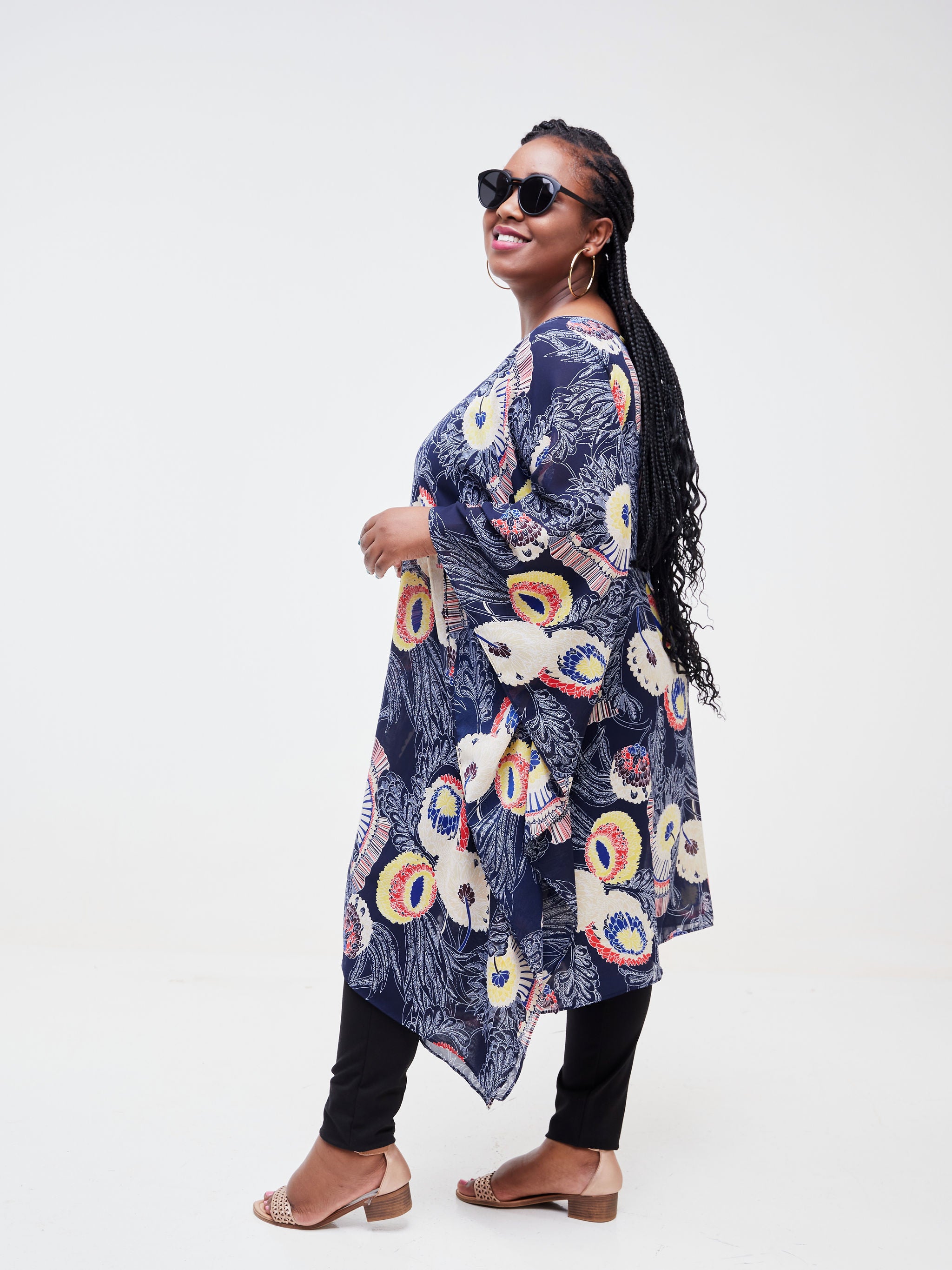 Vivo Basic Destiny Chiffon Top - Navy/White Print