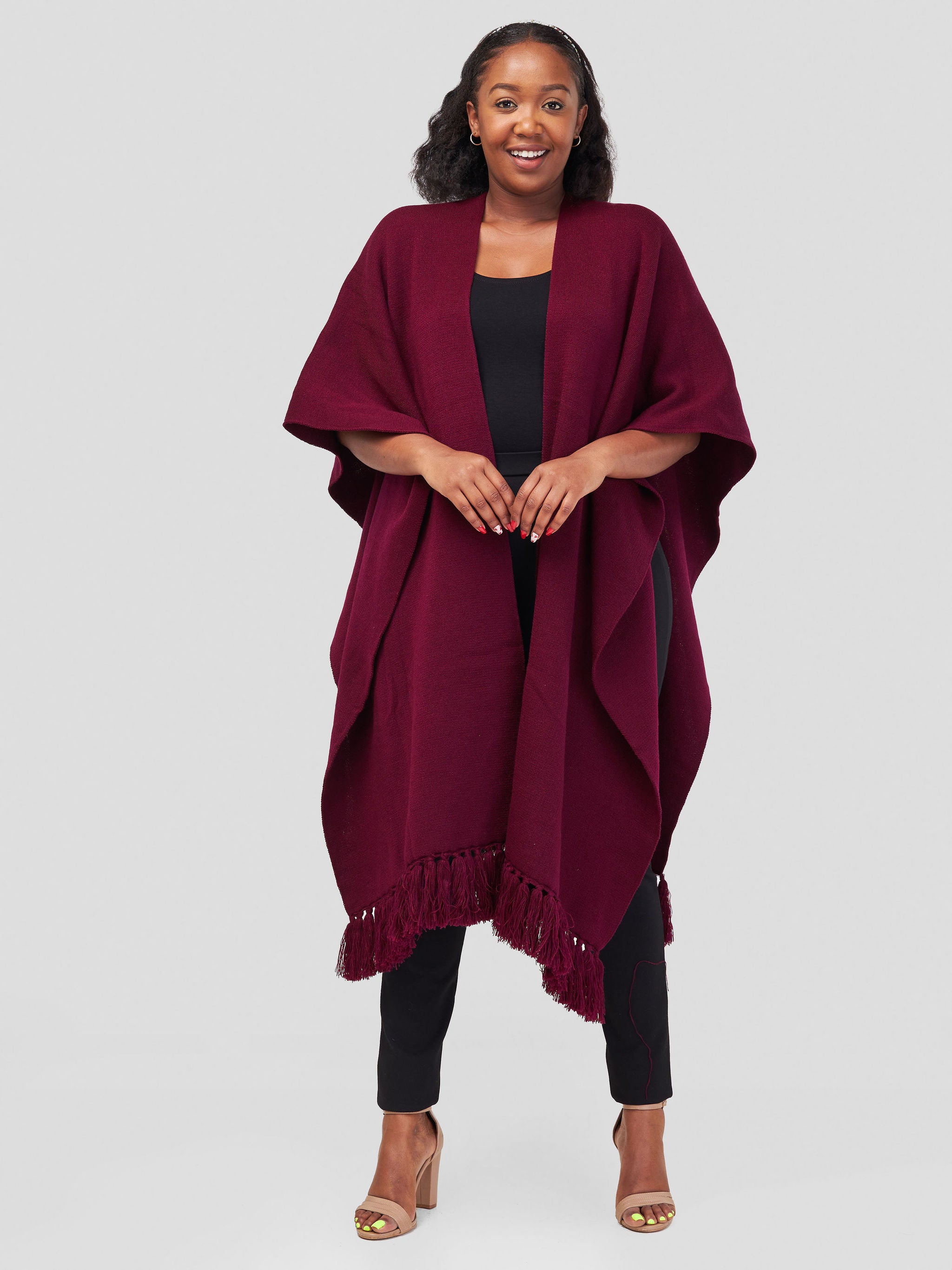 Vivo Basic Double Layered Wrap Poncho - Burgundy