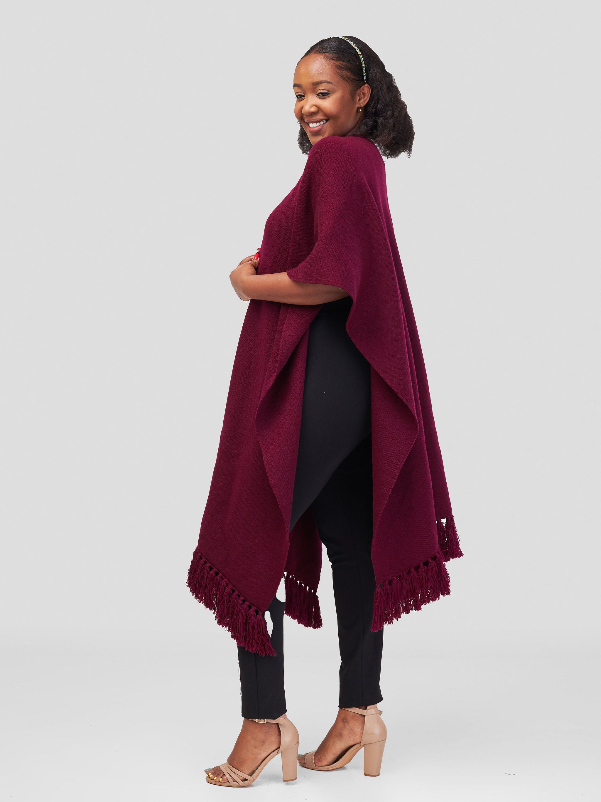 Vivo Basic Double Layered Wrap Poncho (Without Fringe) - Dark Red