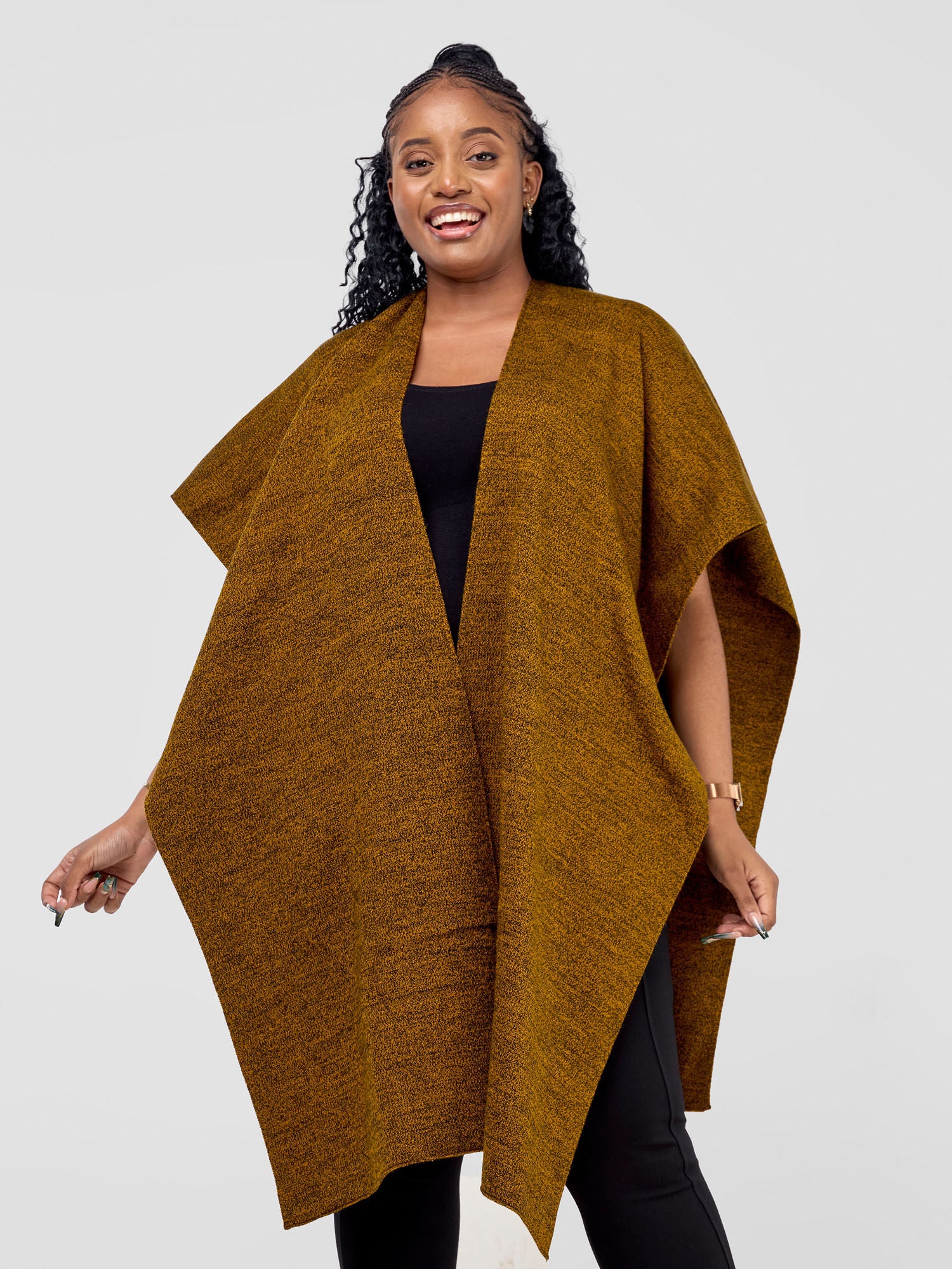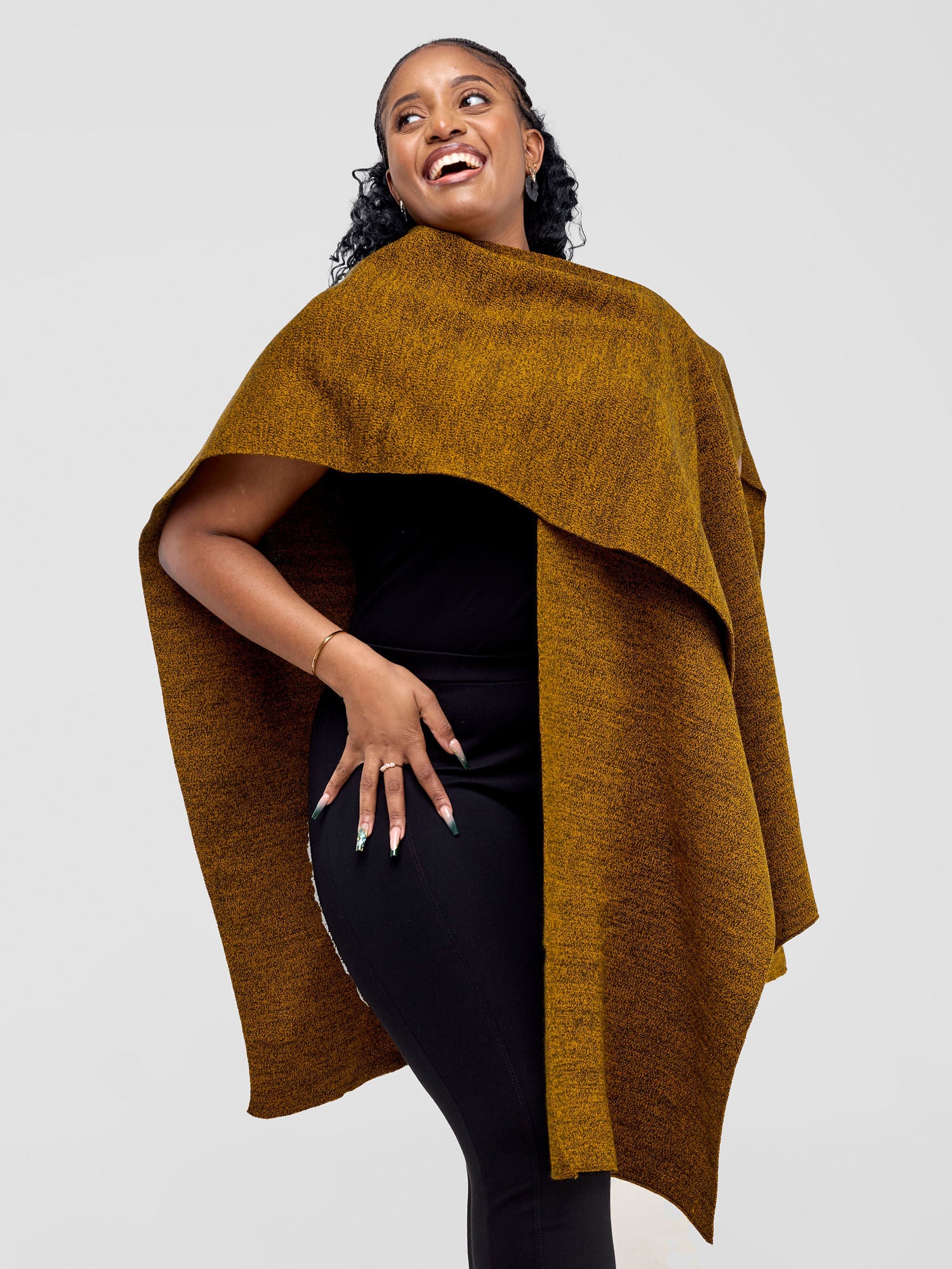 Vivo Basic Double Layered Wrap Poncho (Without Fringe) - Mustard / Black