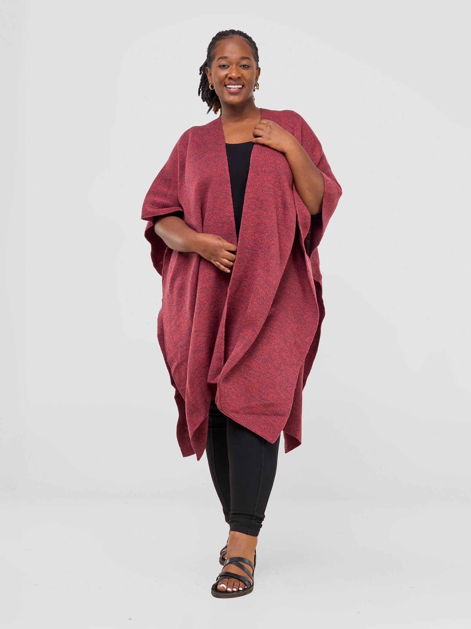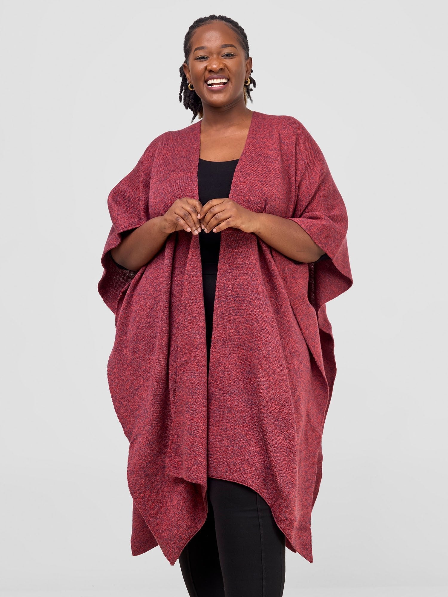 Vivo Basic Double Layered Wrap Poncho - Cherry