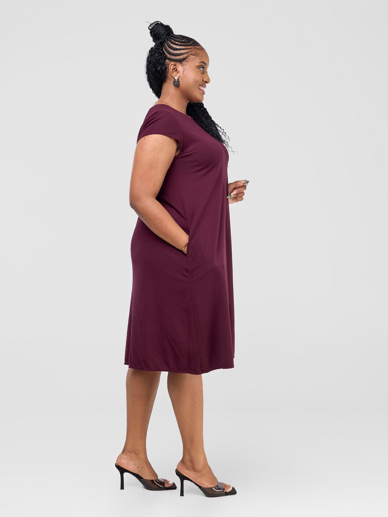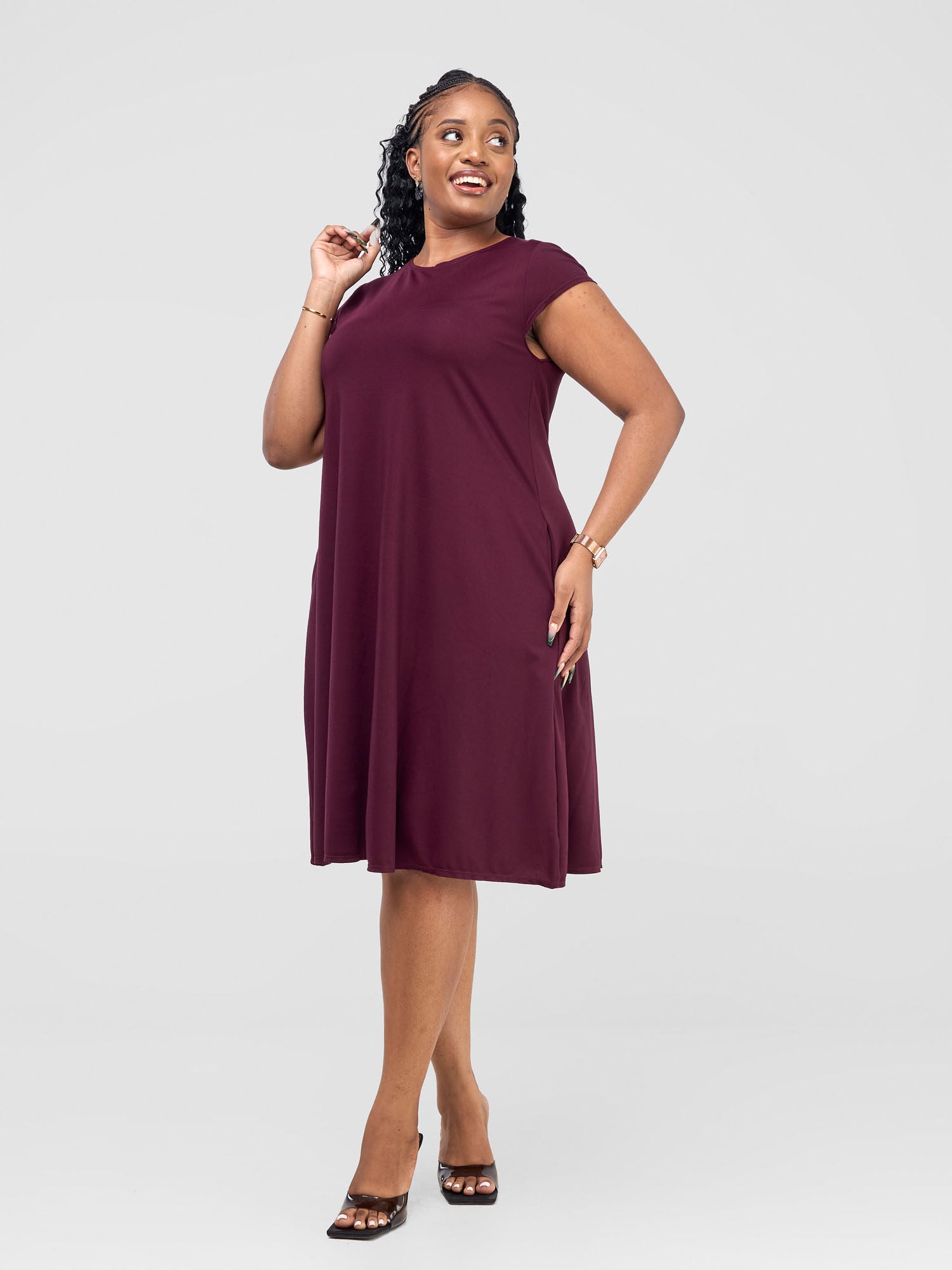 Vivo Basic Kena Tent Knee Length Dress - Burgundy