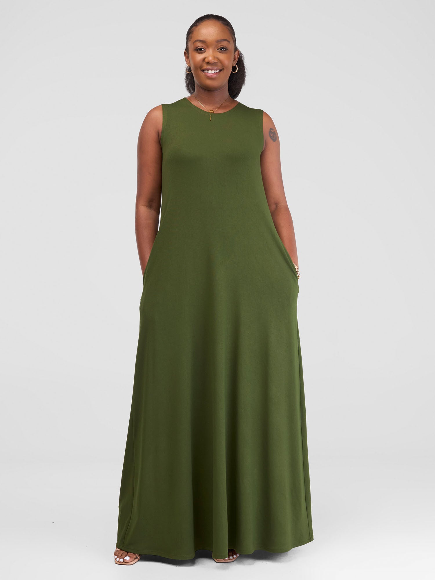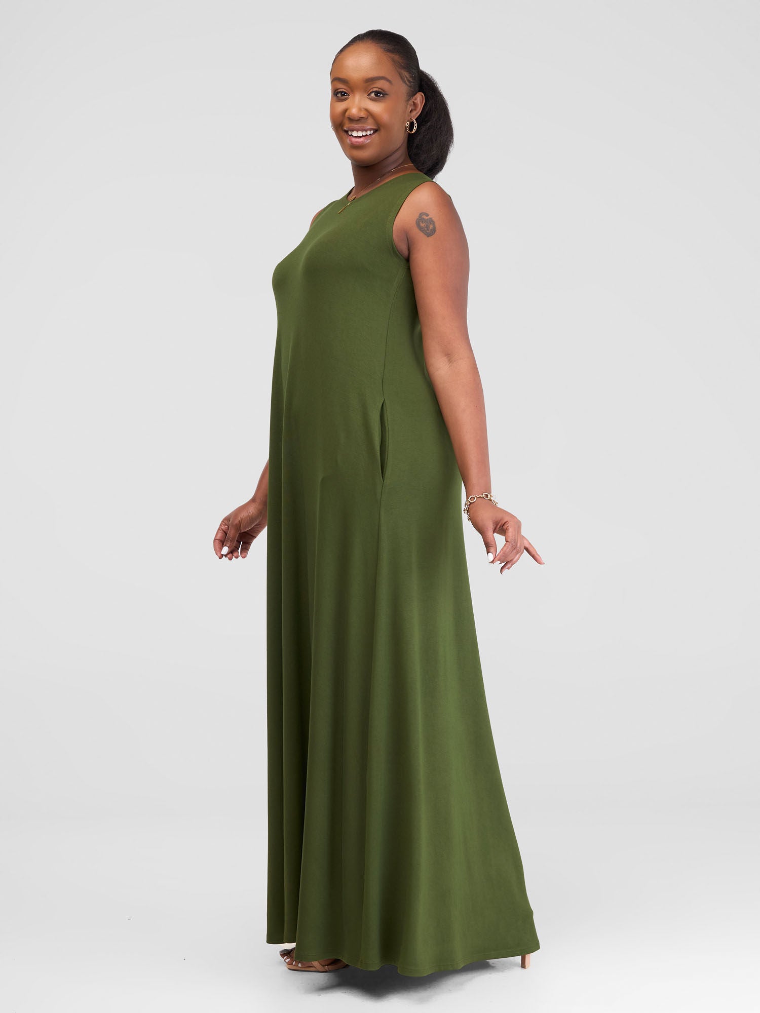 Vivo Basic Julia Back Pleat Maxi Dress - Hunters Green