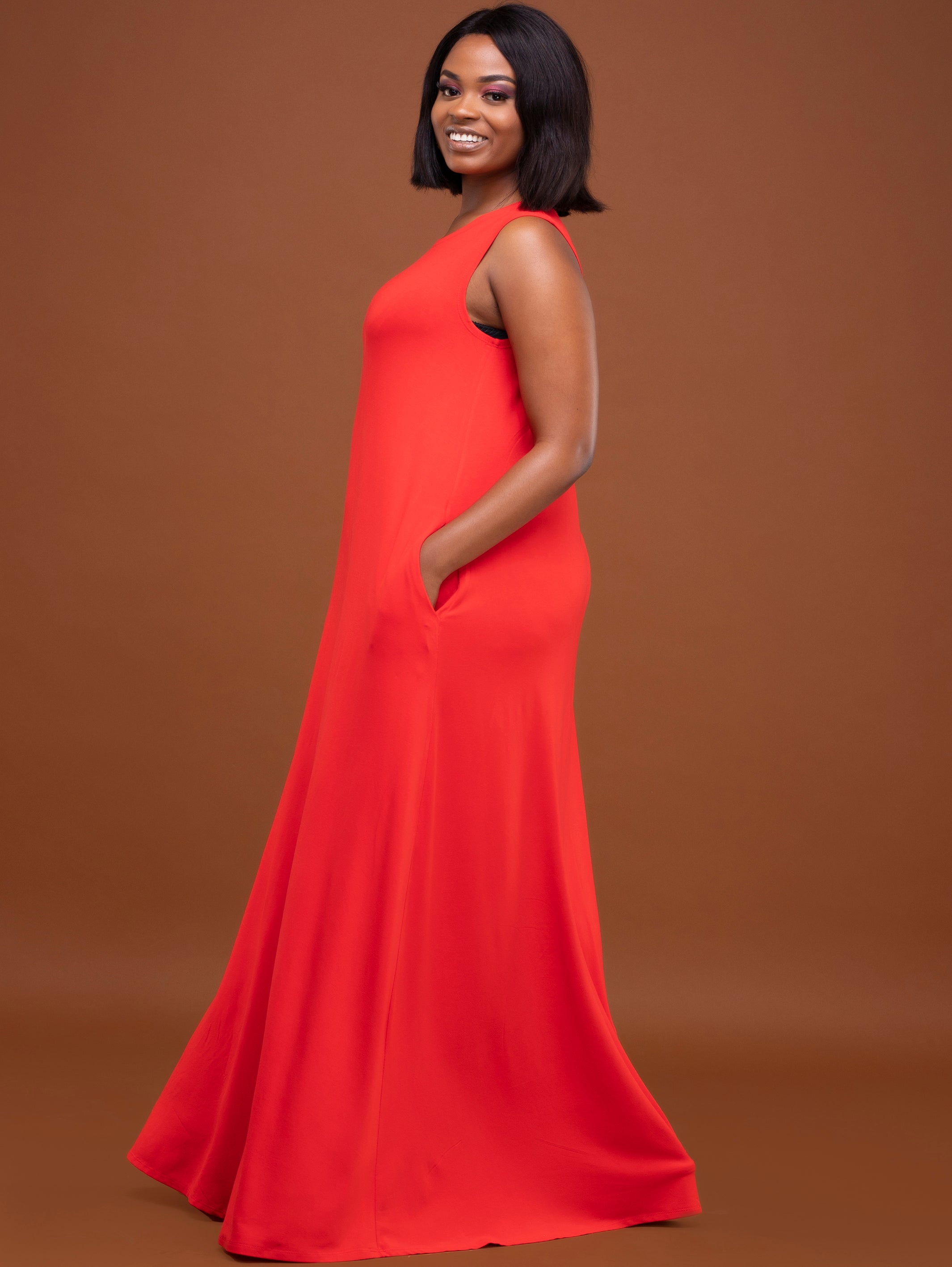 Vivo Basic Julia Back Pleat Maxi Dress - Red