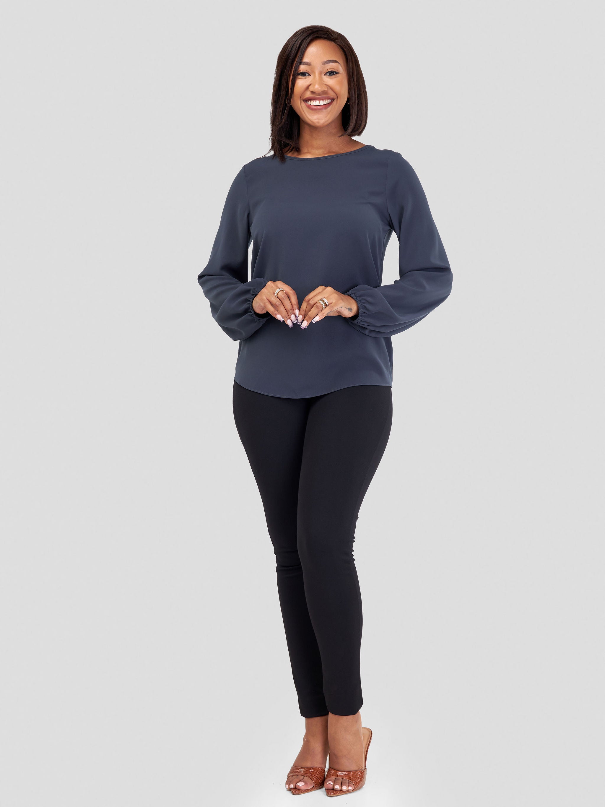 Vivo Basic Long Sleeved Bishop Top - Dark Grey