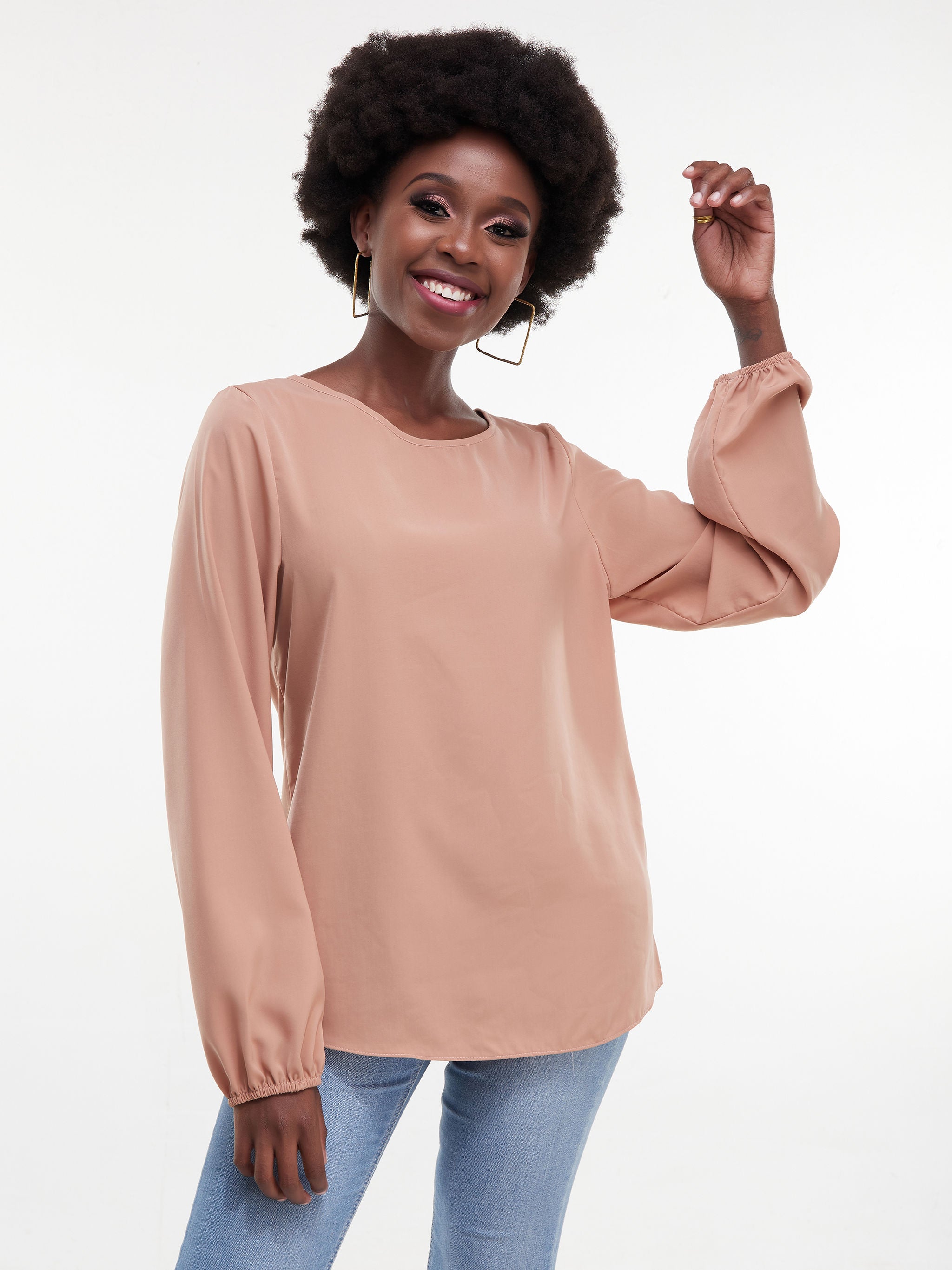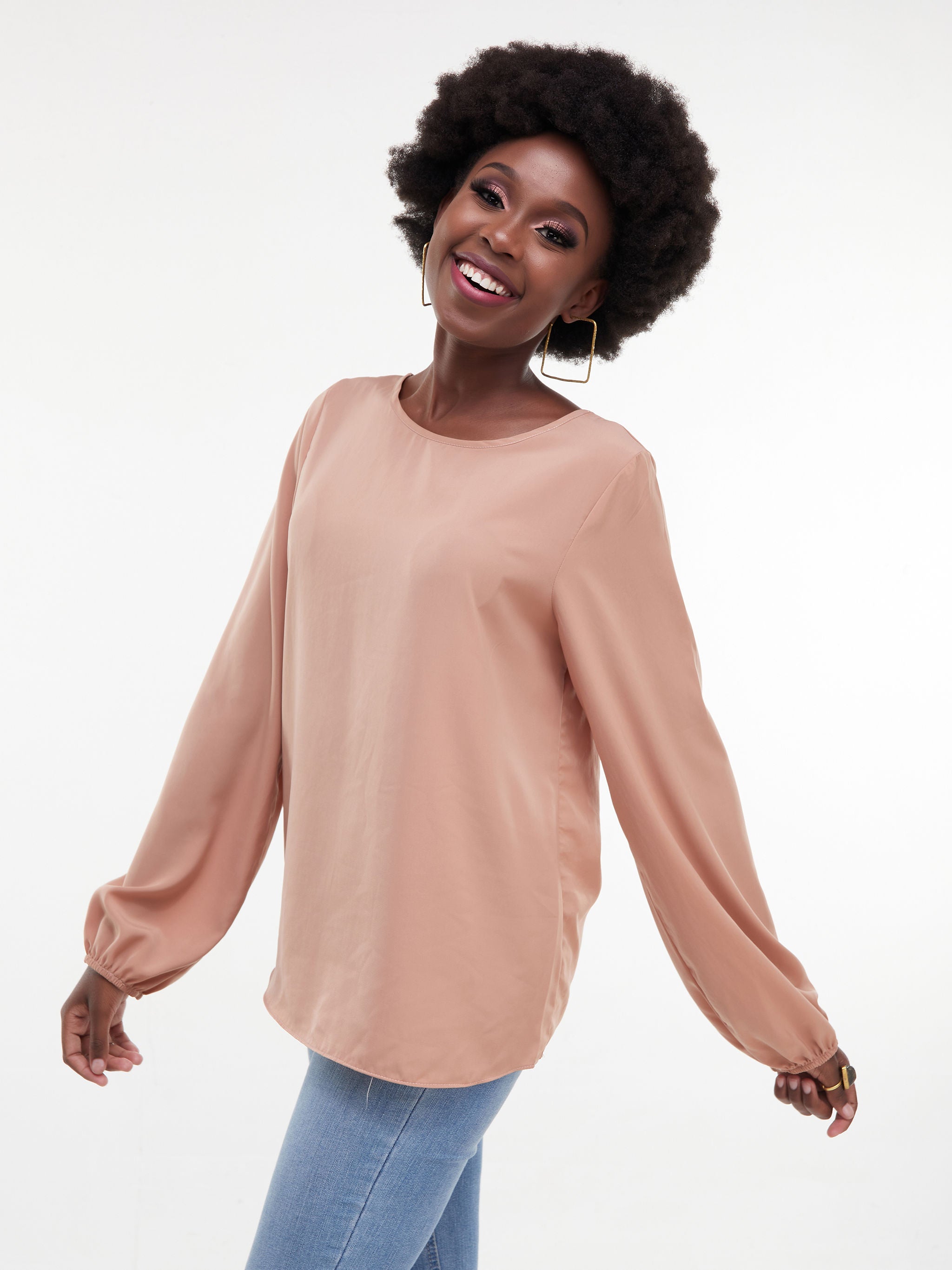 Vivo Basic Long Sleeved Bishop Top - Chocolate Brown